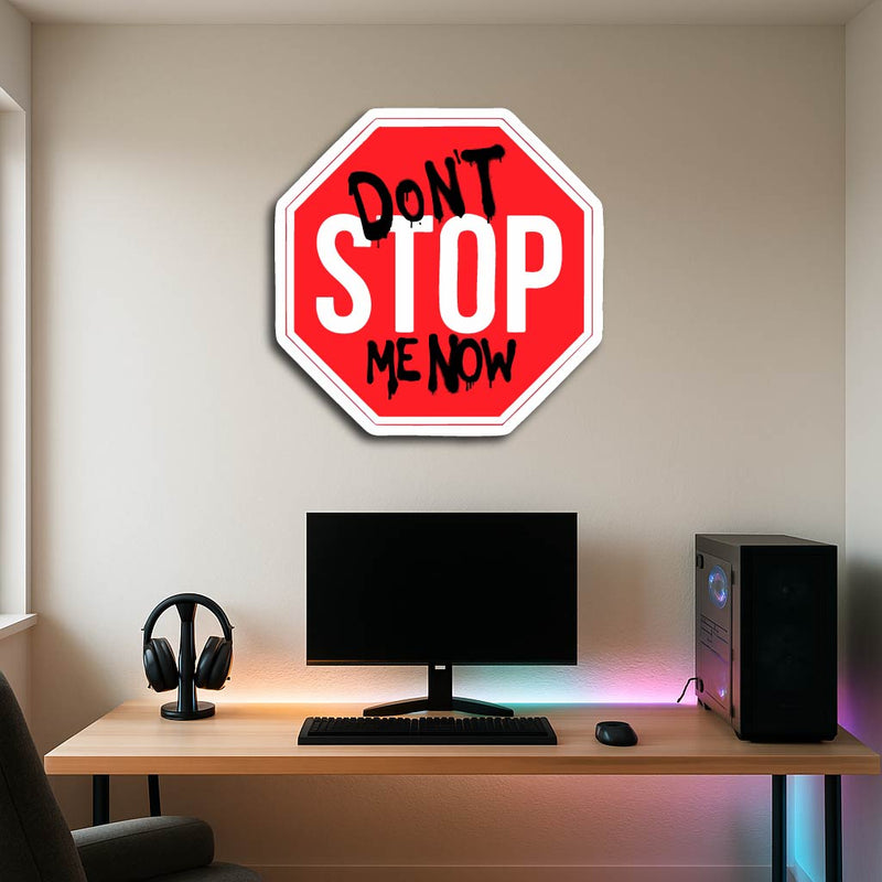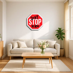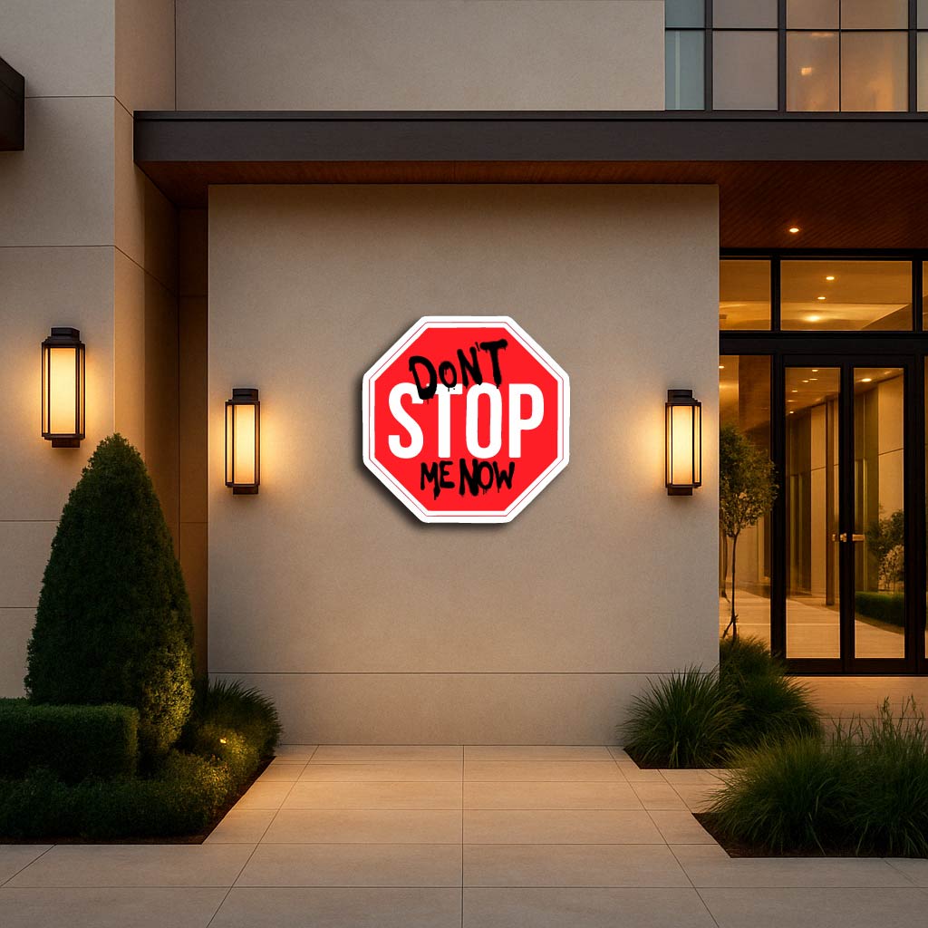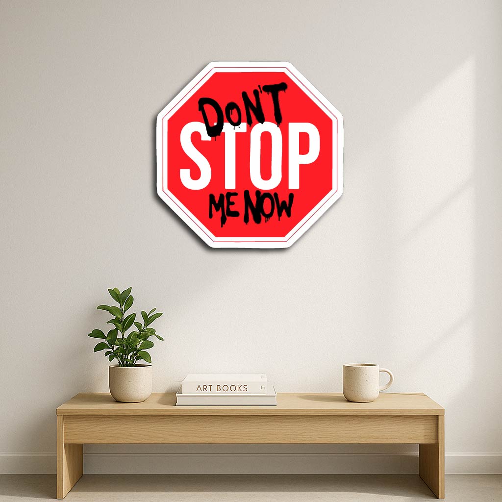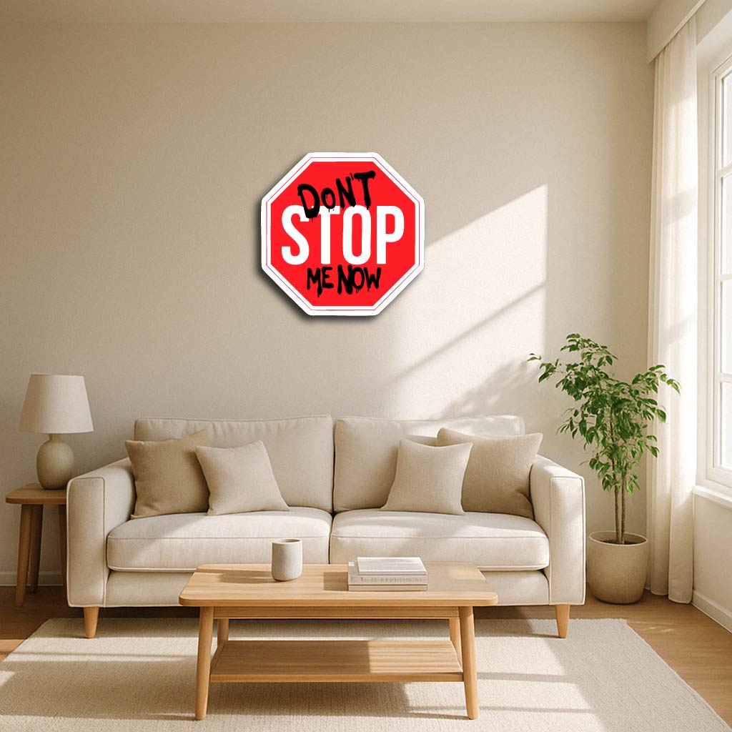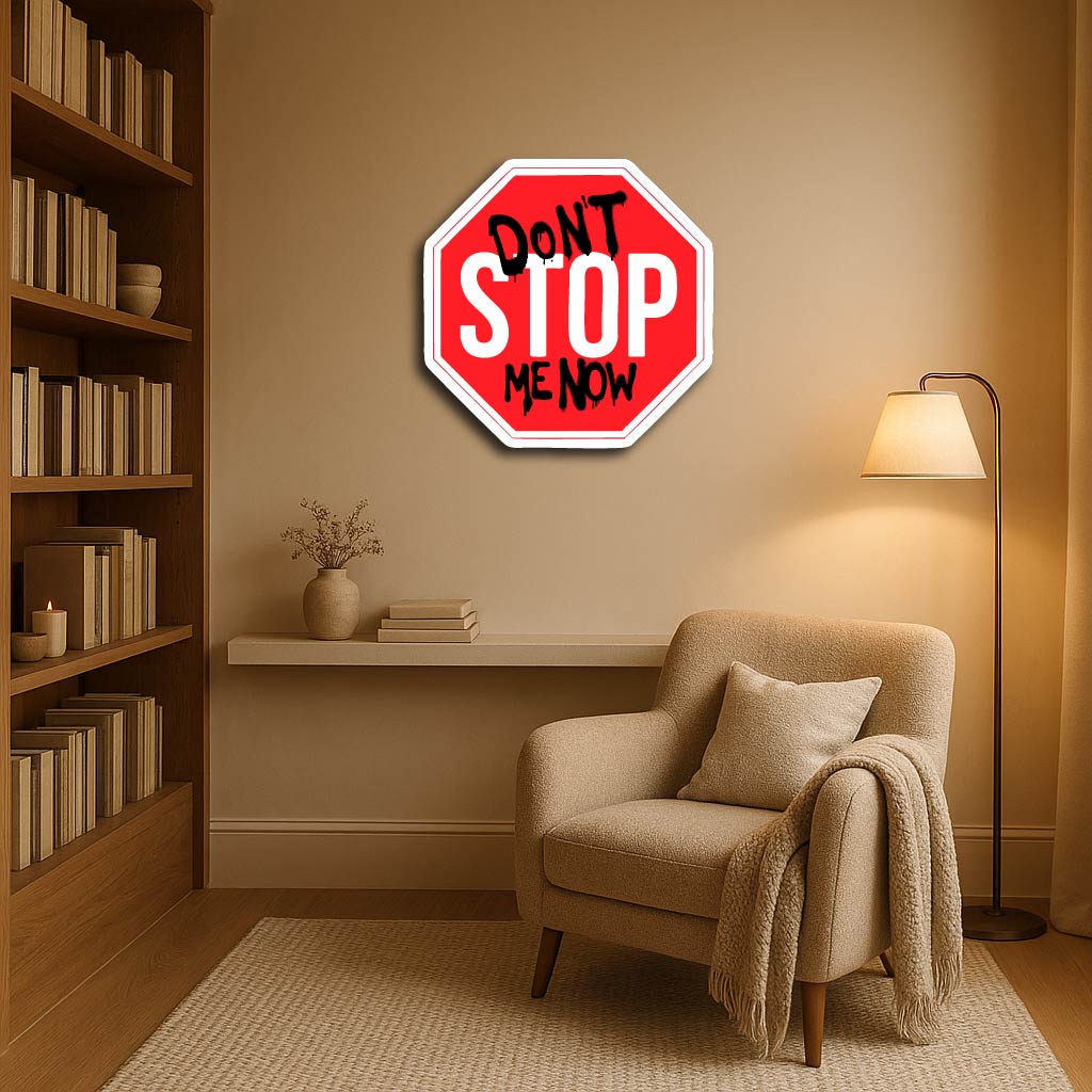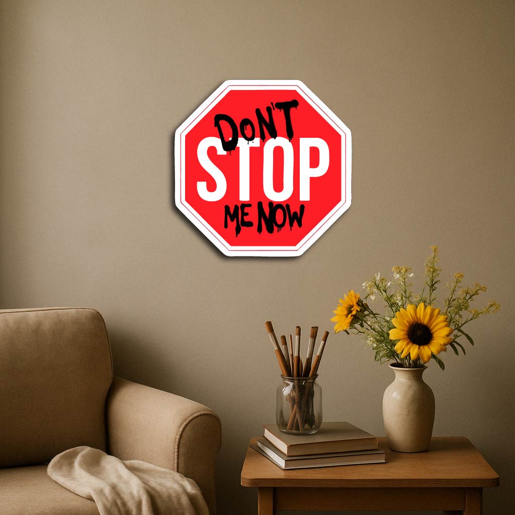 Don’t Stop Me Now Metal Wall Sign – Bold Motivational Stop Sign Décor