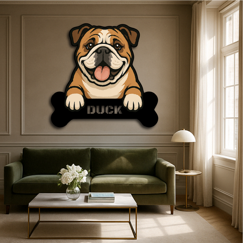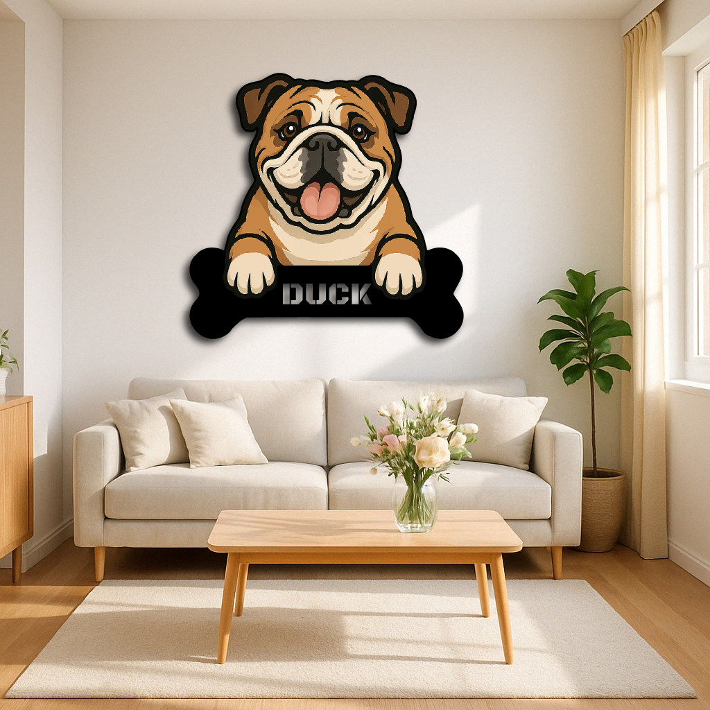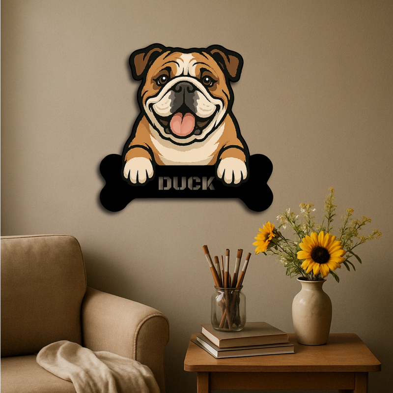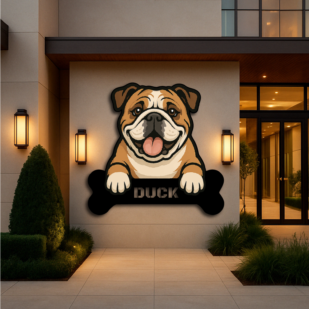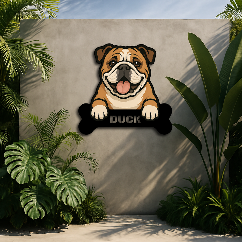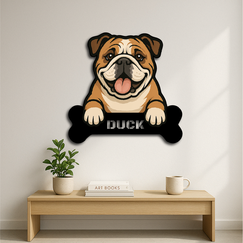 Custom Bulldog Dog Name Sign – Personalized Metal Wall Art with Bone Nameplate