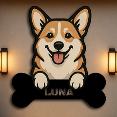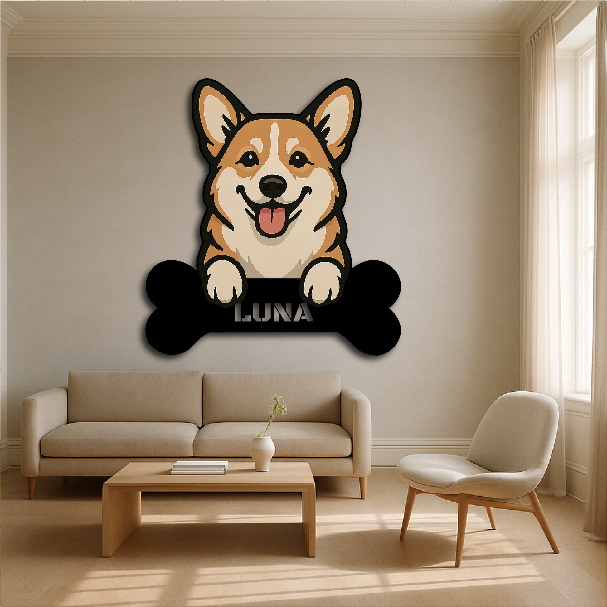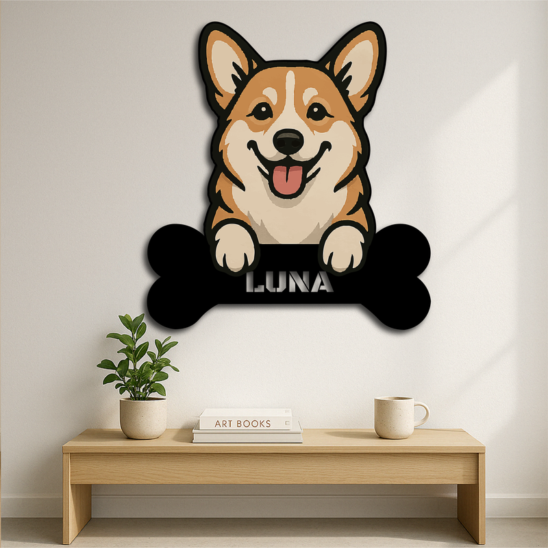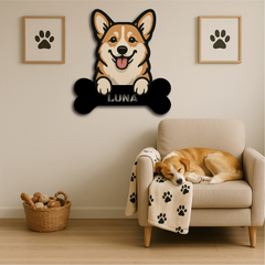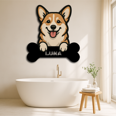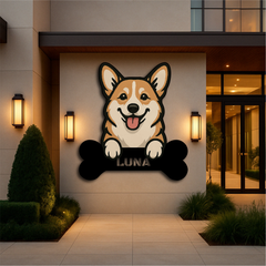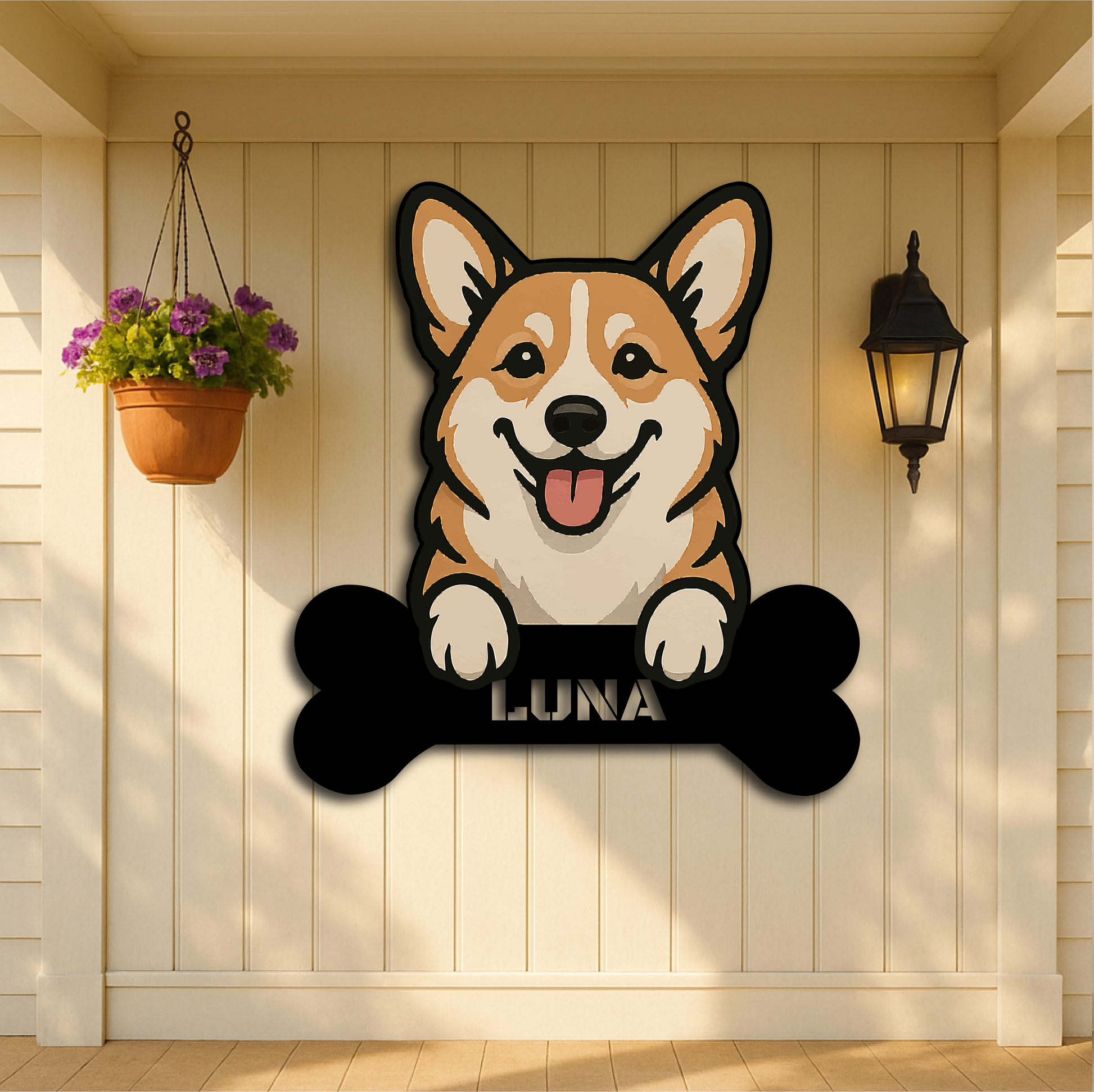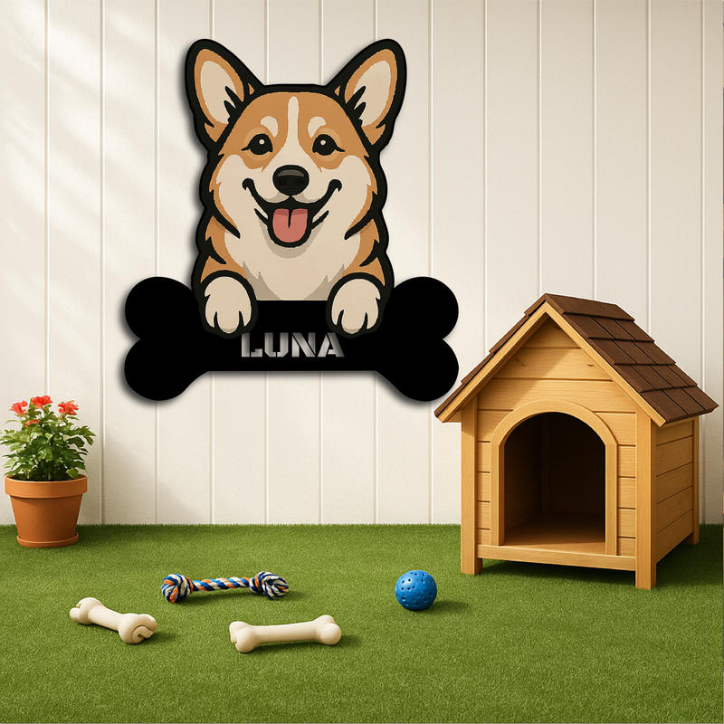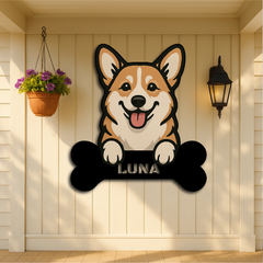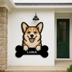 Custom Corgi Dog Name Sign – Personalized Metal Wall Art with Bone-Shaped Plaque