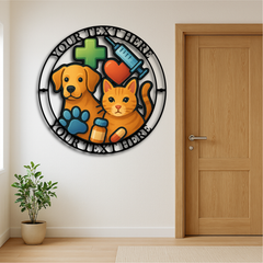 Custom Veterinary Clinic Metal Sign – Personalized Vet Wall Art with Pets & Medical Symbols