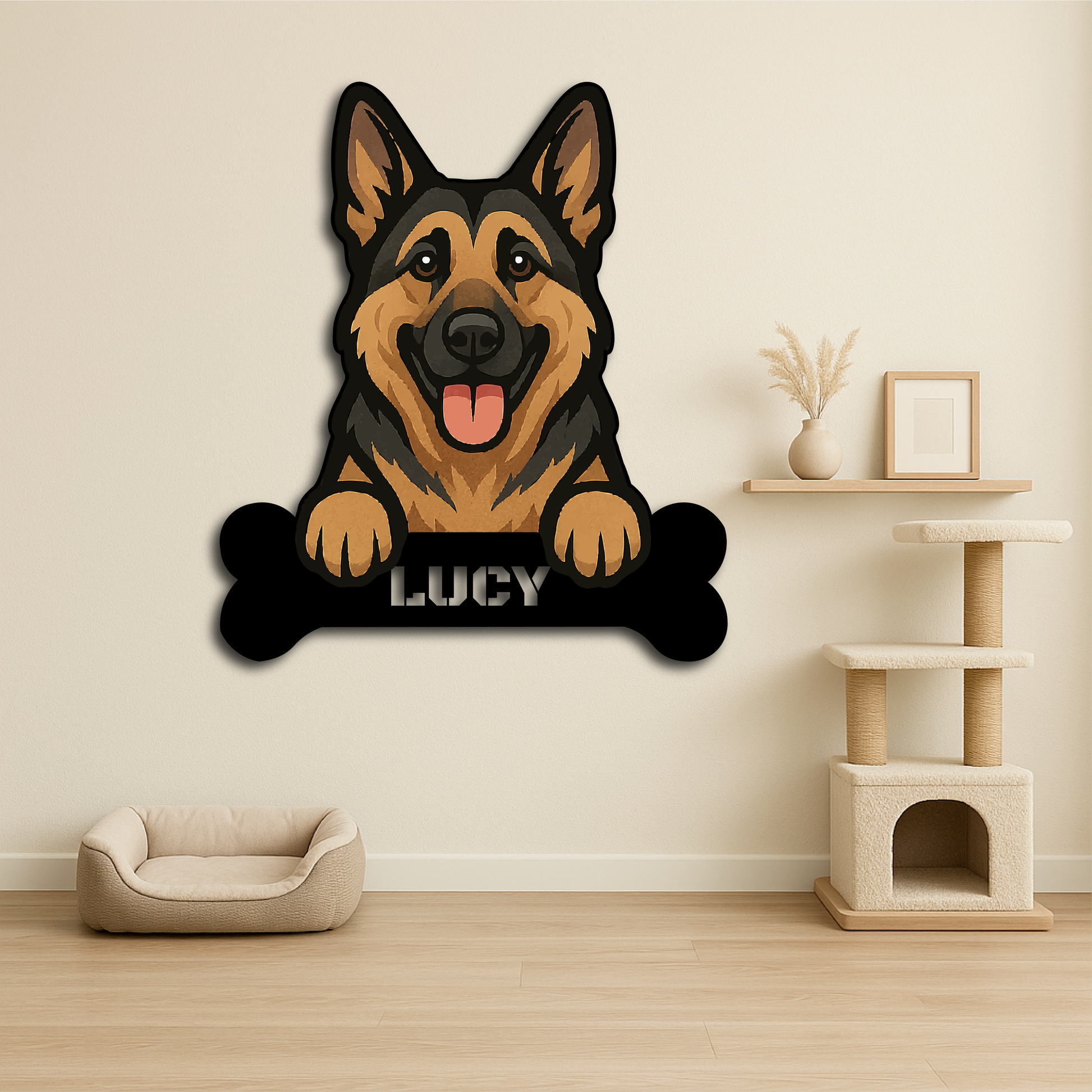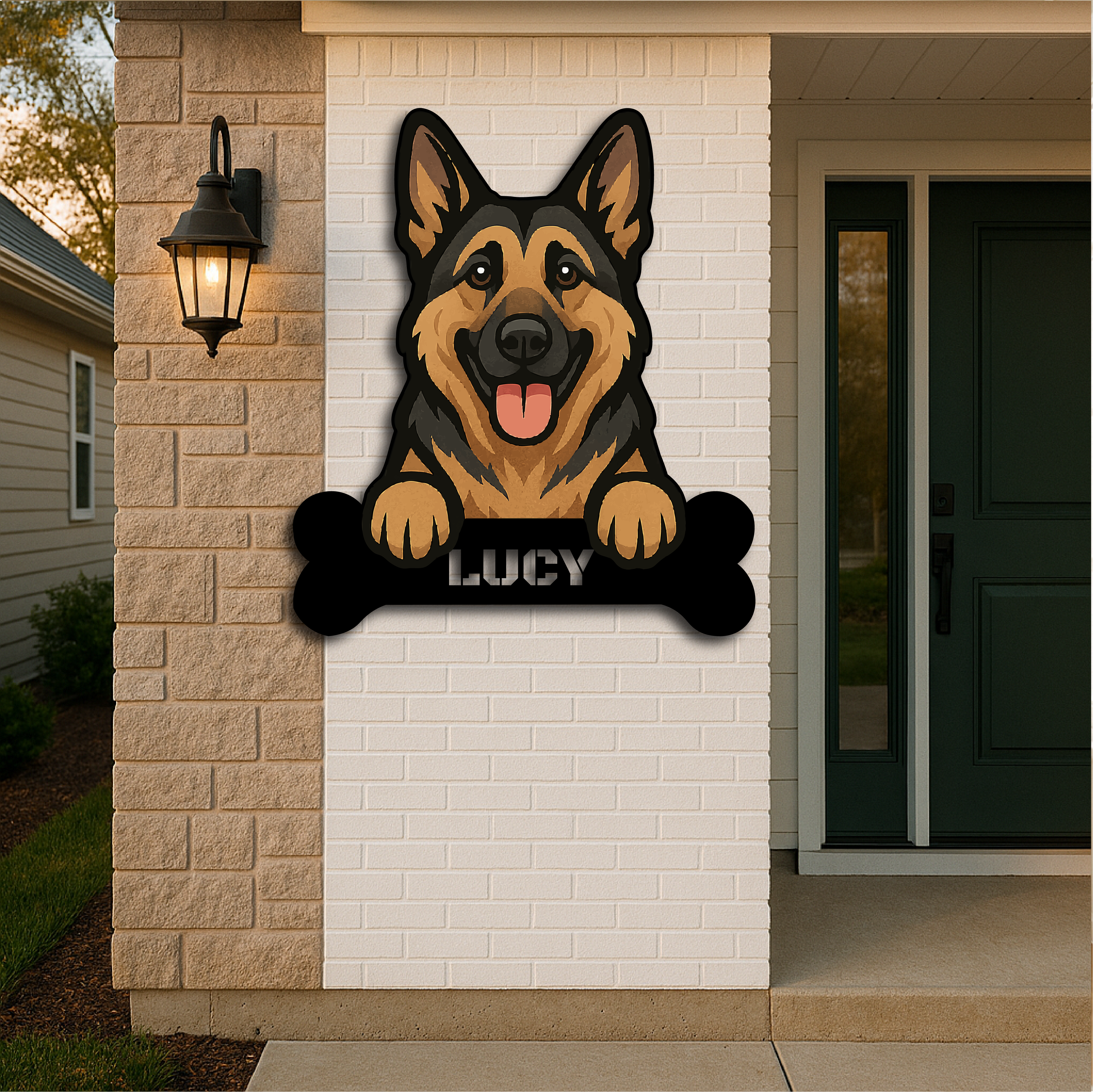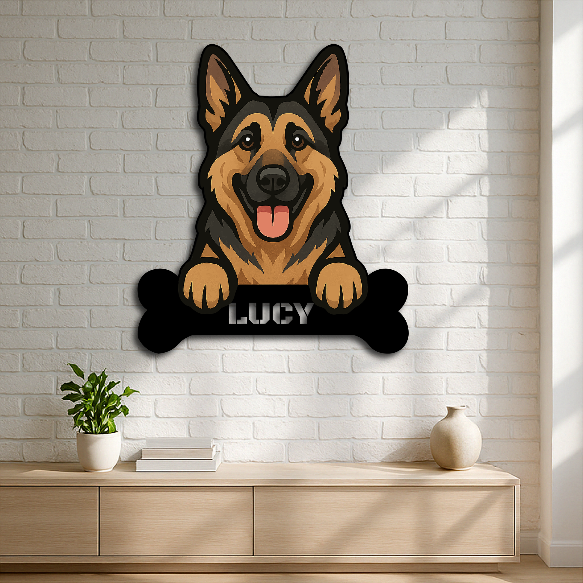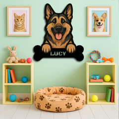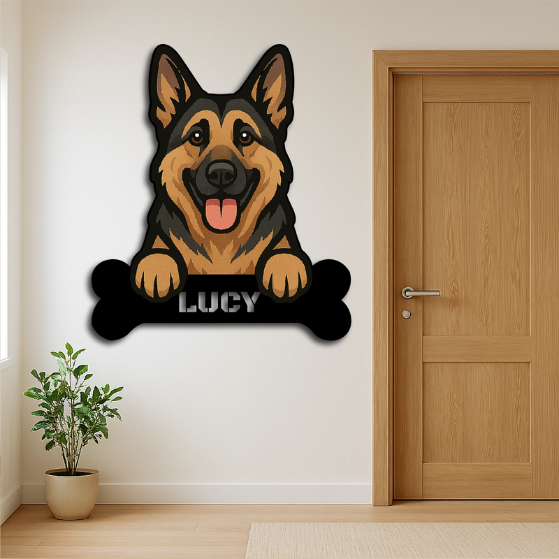 Custom German Shepherd Dog Name Sign – Personalized Metal Wall Art with Bone Plaque