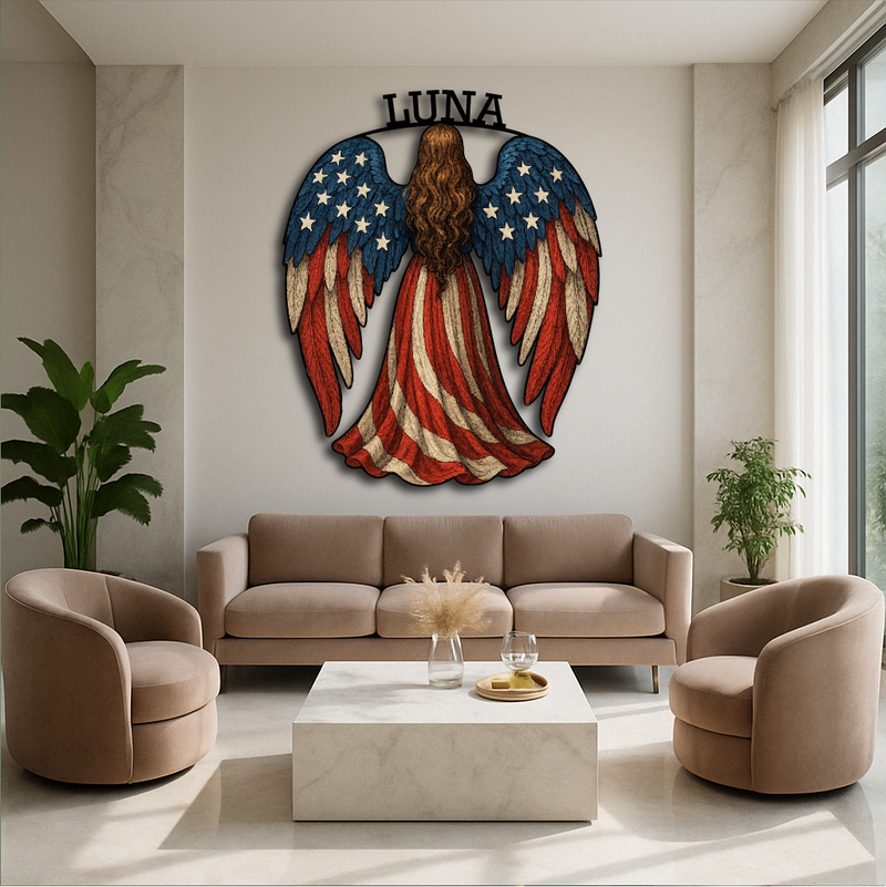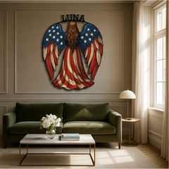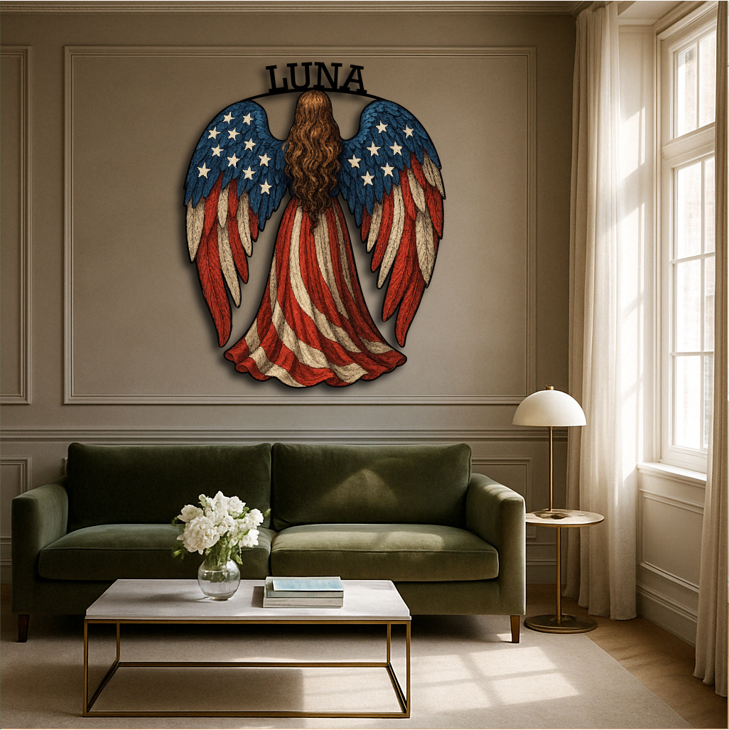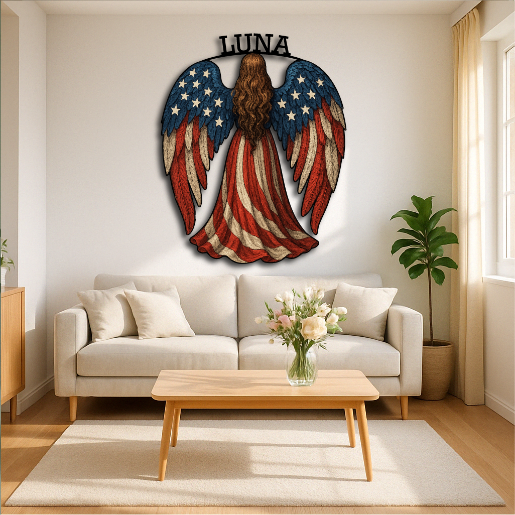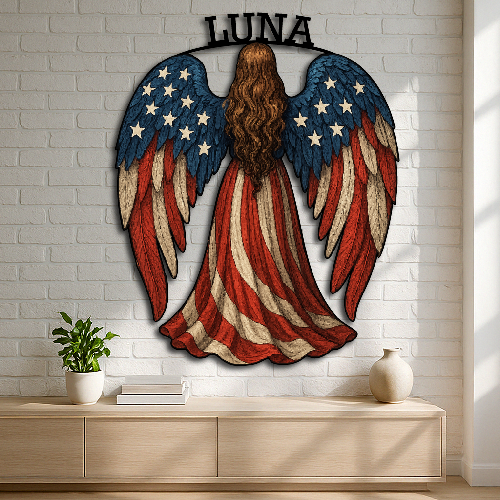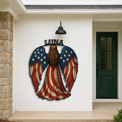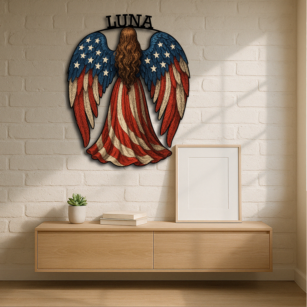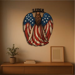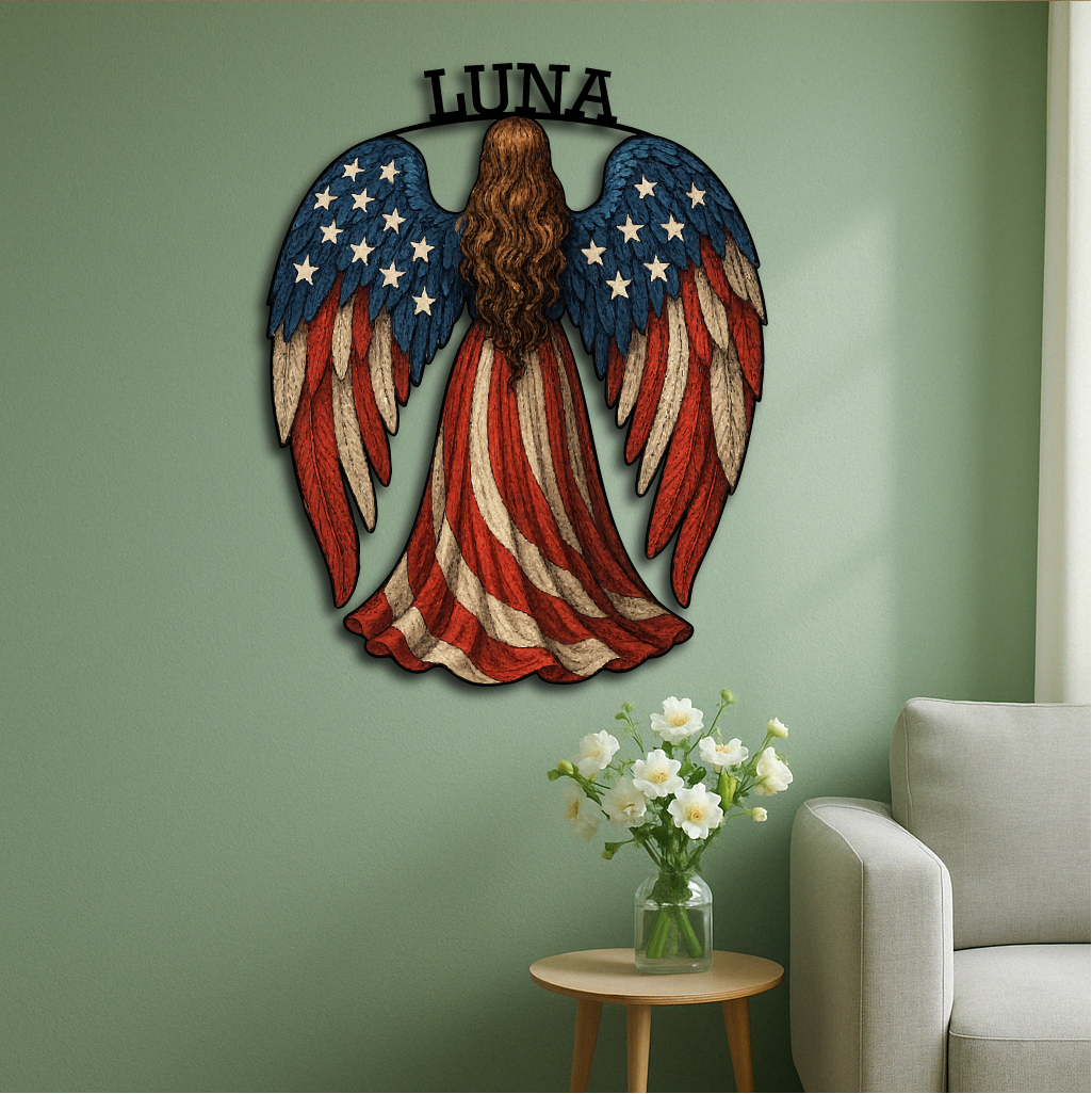 American Flag Angel Wall Sign – Custom Patriotic Guardian Art