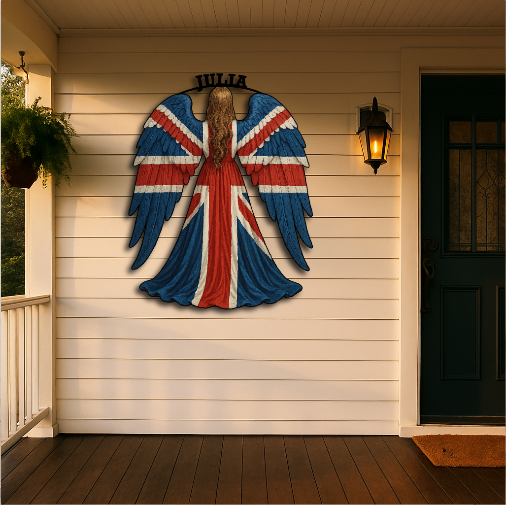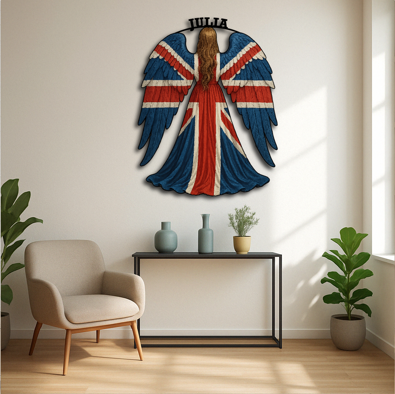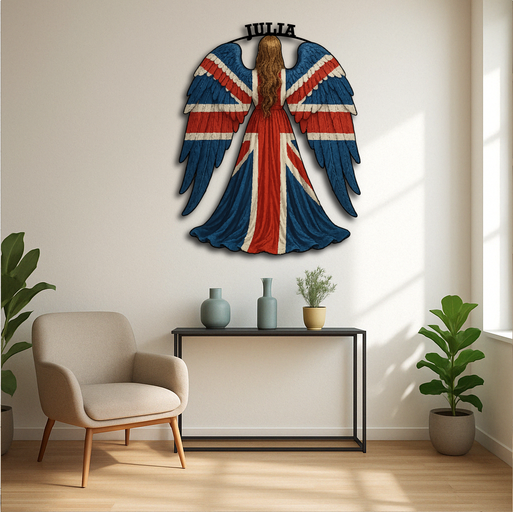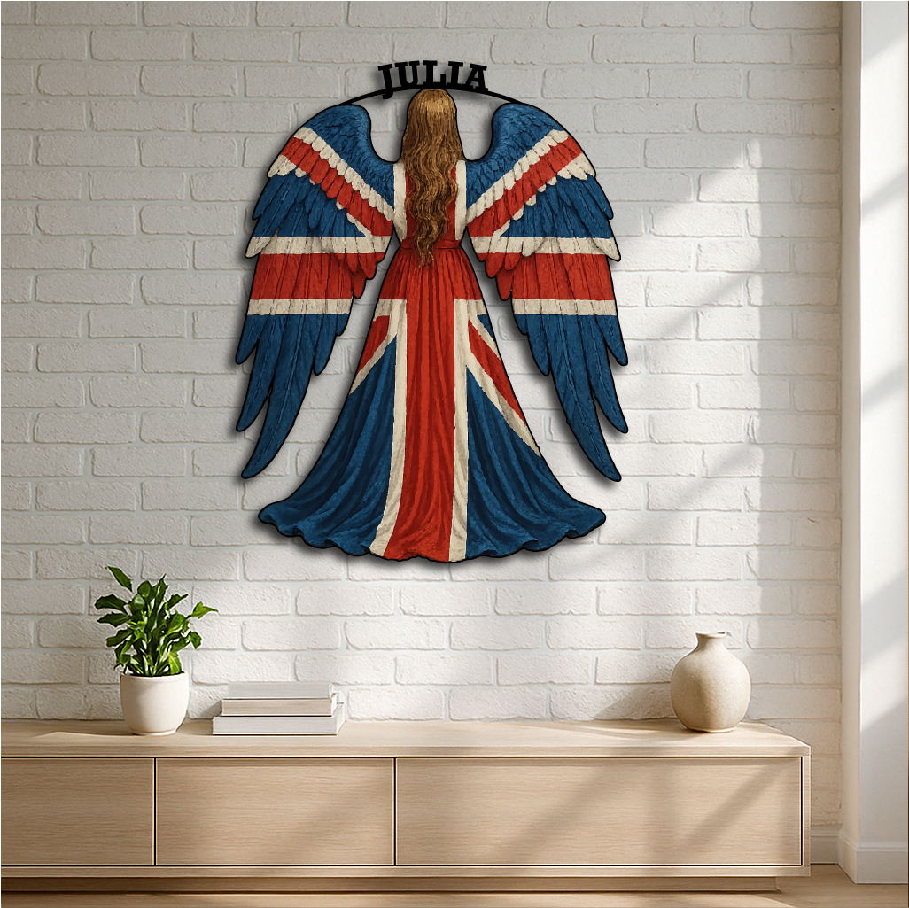 Union Jack Angel Wall Sign – Custom British Tribute Metal Art