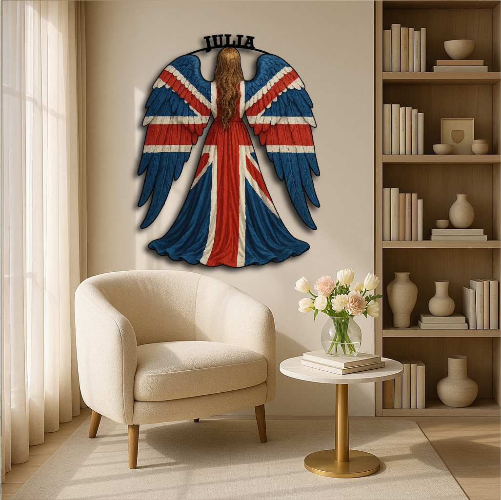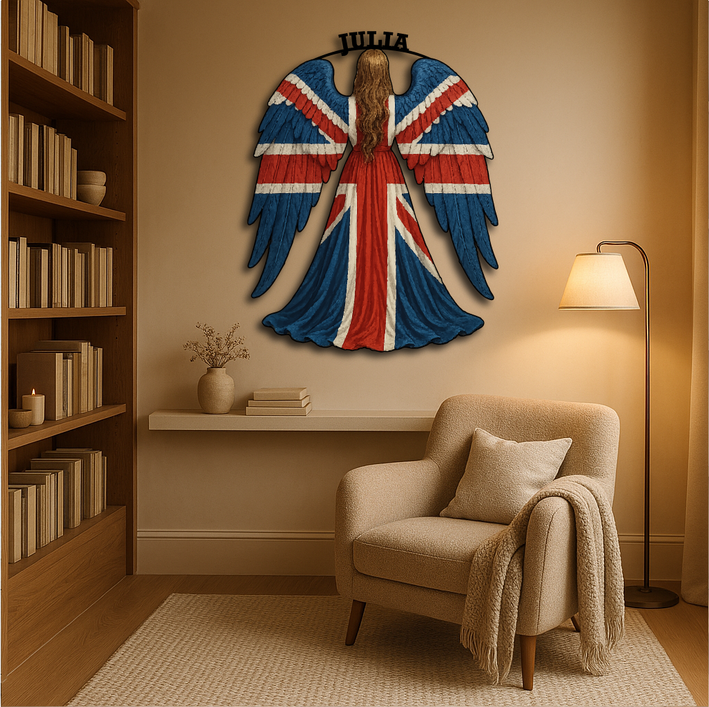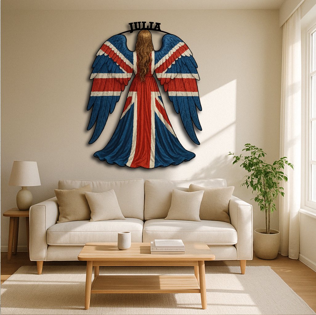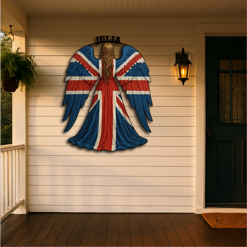 Union Jack Angel Wall Sign – Custom British Tribute Metal Art