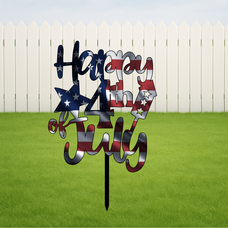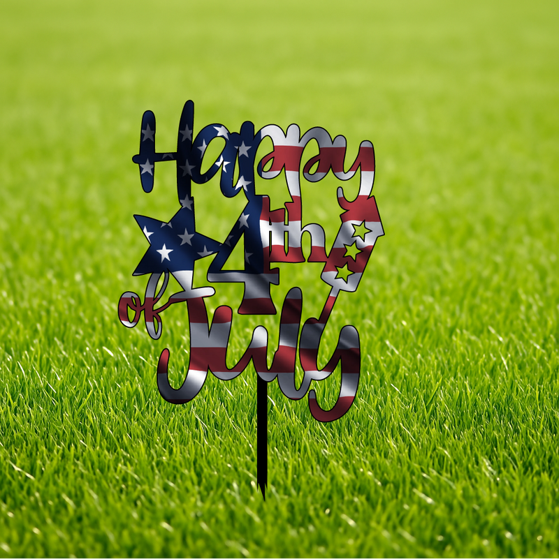 Happy 4th of July Metal Yard Sign – Patriotic Multicolor Garden Decor