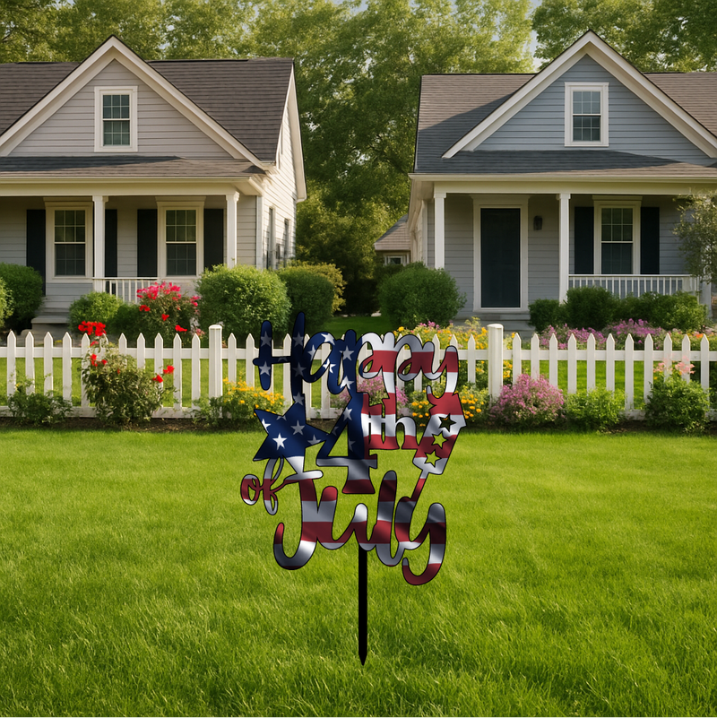 Made from high-quality metal and multicolor printed with weather-resistant ink, this yard stake is both durable and eye-catching — a must-have for your 4th of July celebration!