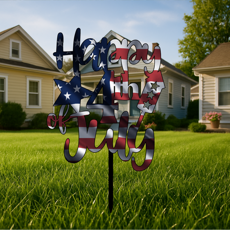 Celebrate Independence Day with this festive Happy 4th of July Yard Sign, beautifully crafted in patriotic multicolor style featuring stars, stripes, and bold script. Perfect for front yards, gardens, or party displays, this vibrant metal sign brings instant holiday cheer to your home or event!