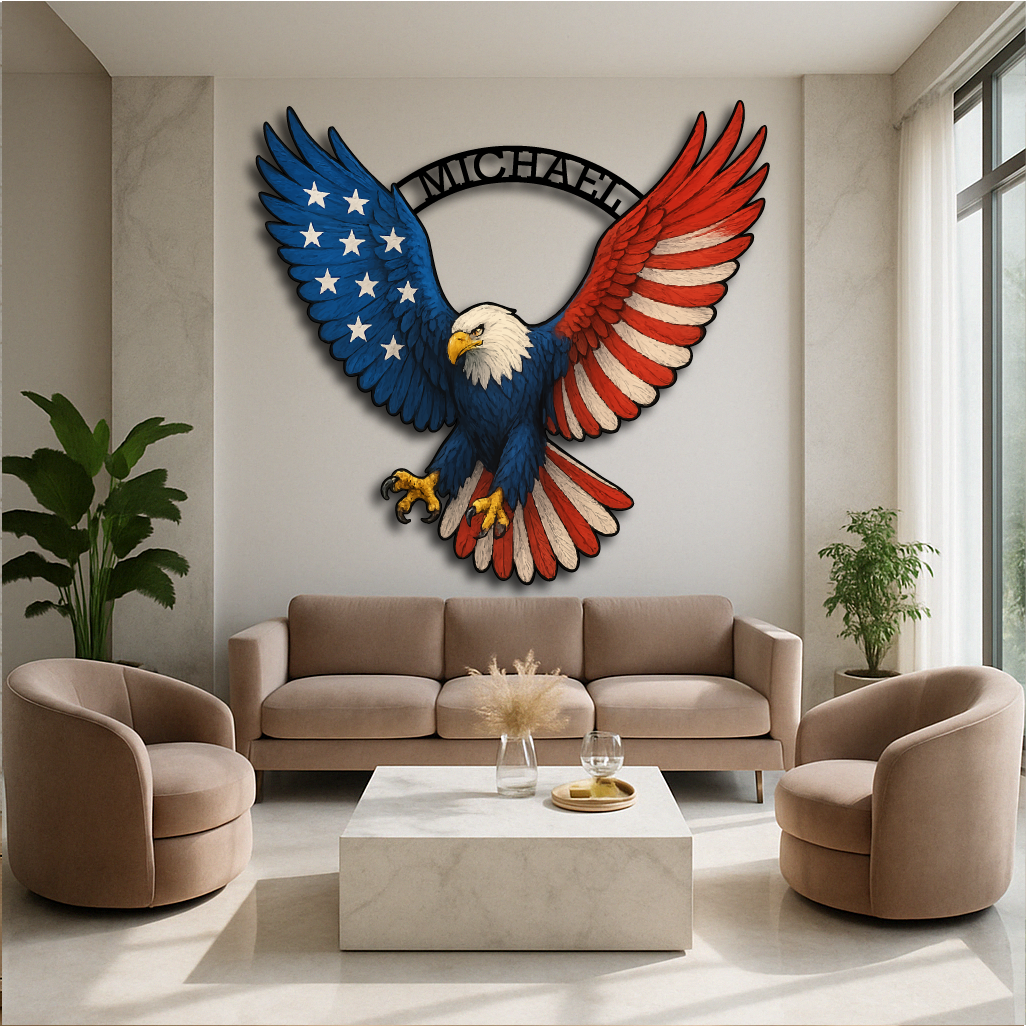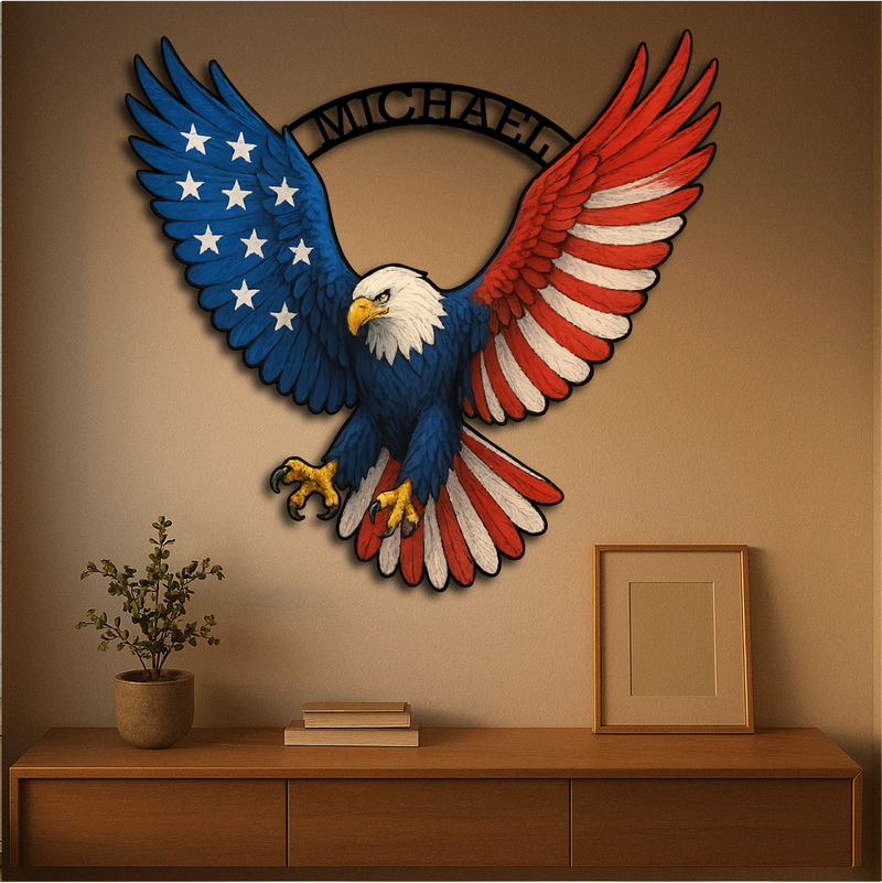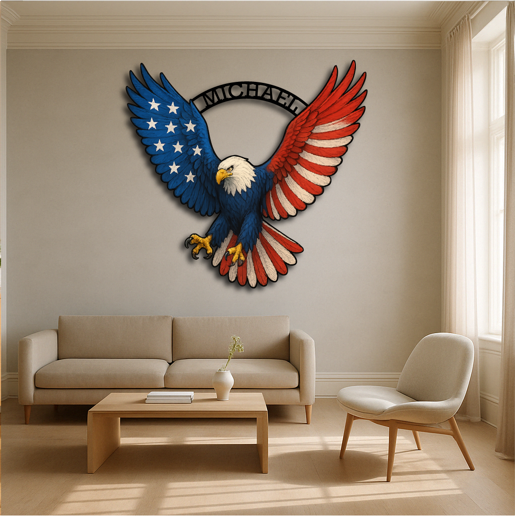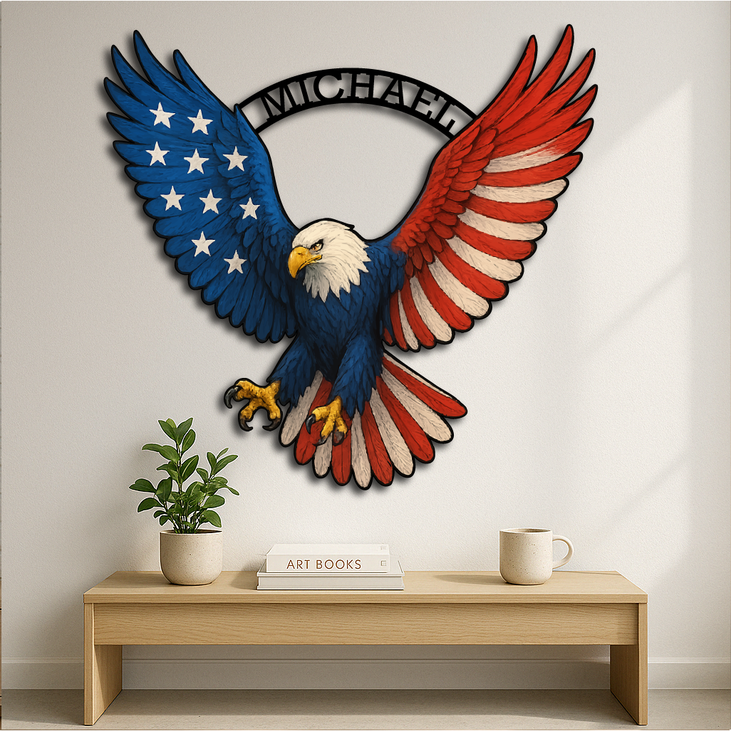 Custom Patriotic Bald Eagle Wall Art – Multicolor Metal Sign
