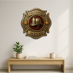 Honor bravery and dedication with our Custom Firefighter Badge. This bold Maltese cross plaque features a detailed firefighter helmet centerpiece, realistic flame engravings, and a customizable name section. Perfect for firefighters, fire department members, or as a heartfelt gift for heroes who serve and protect.