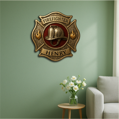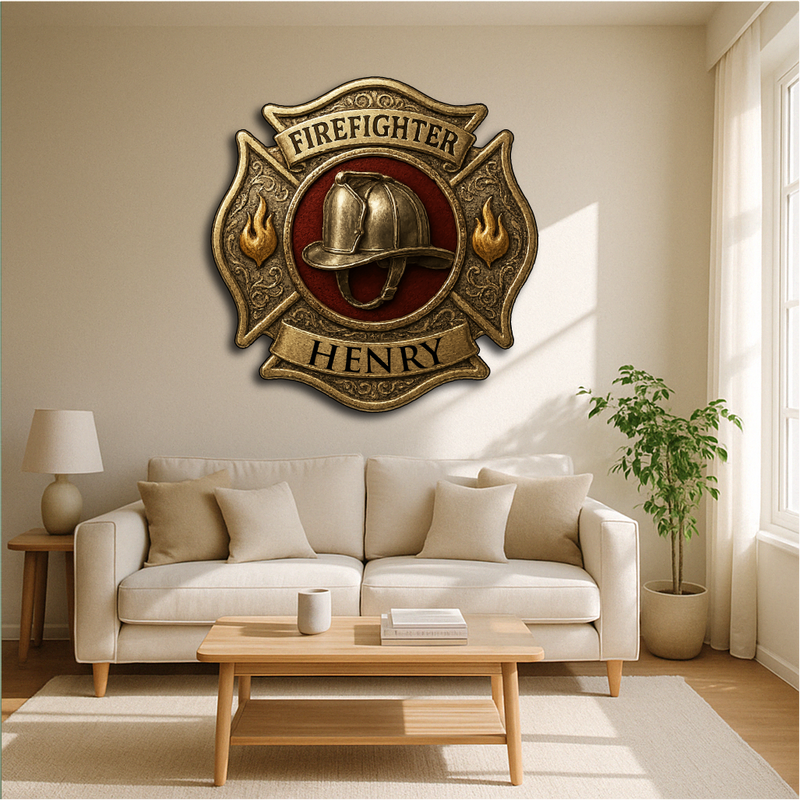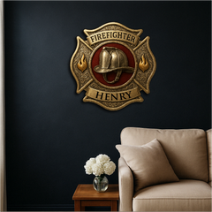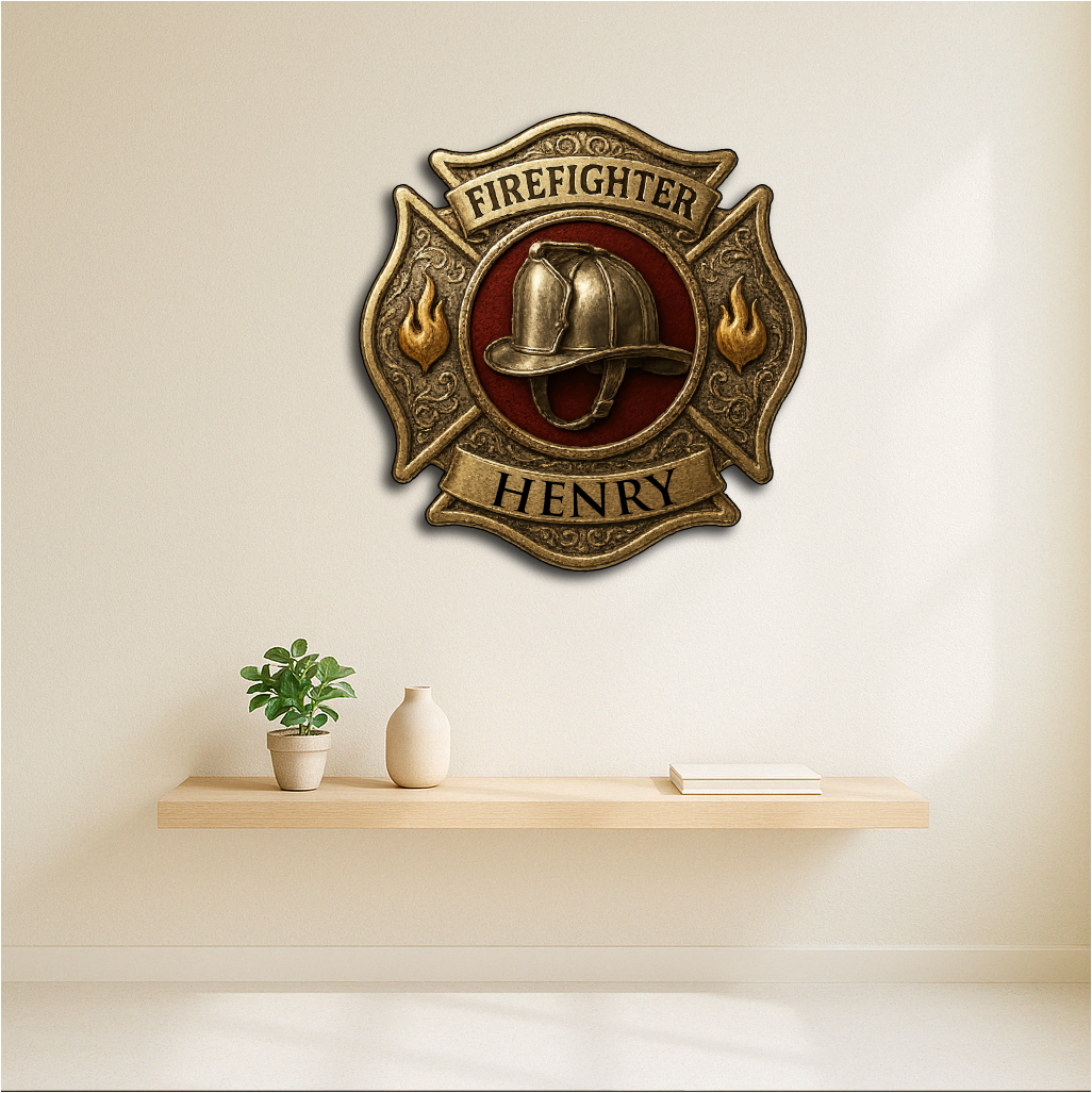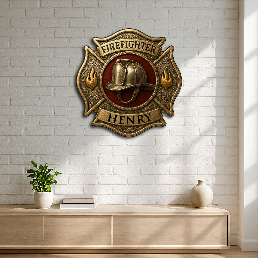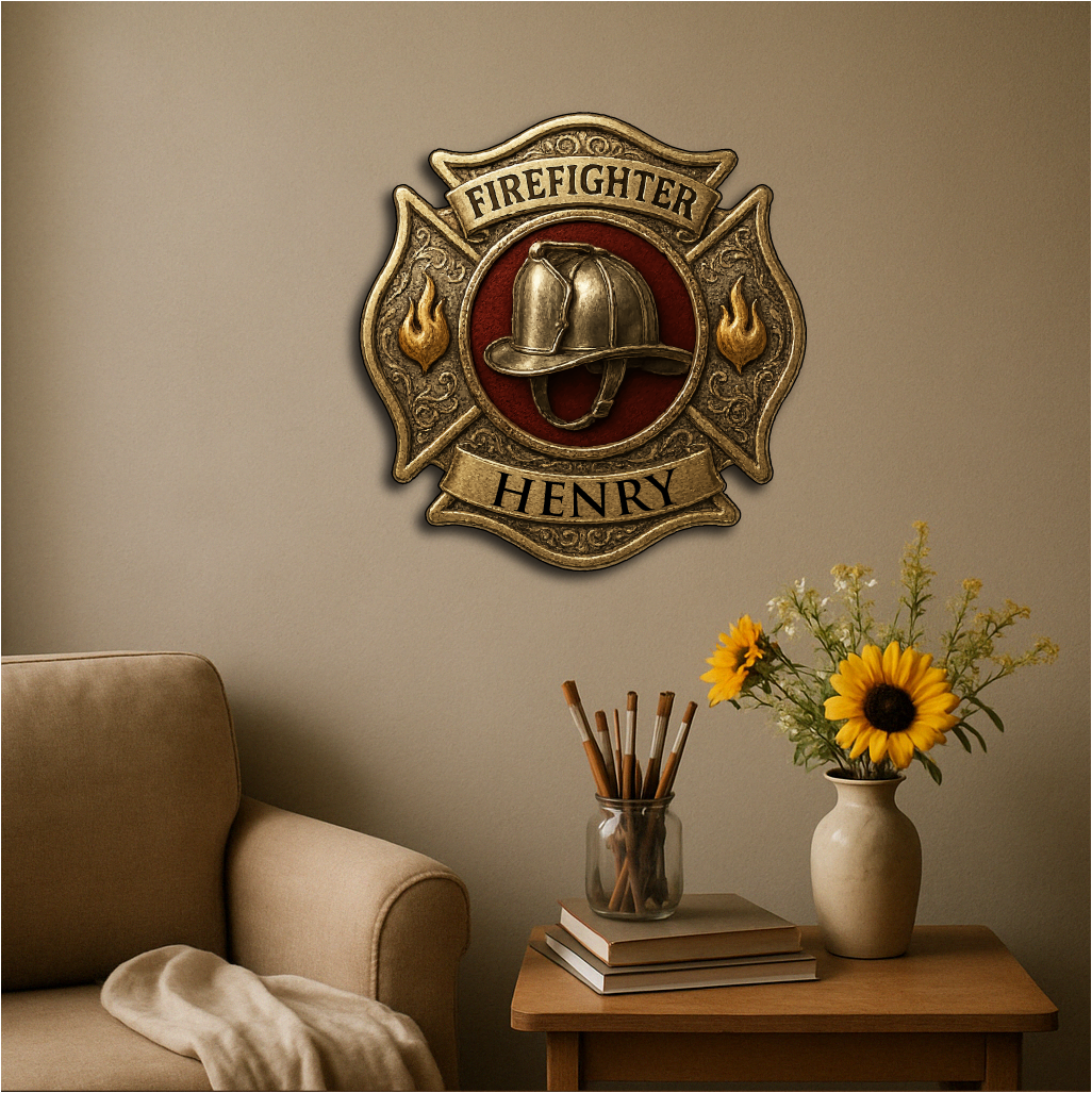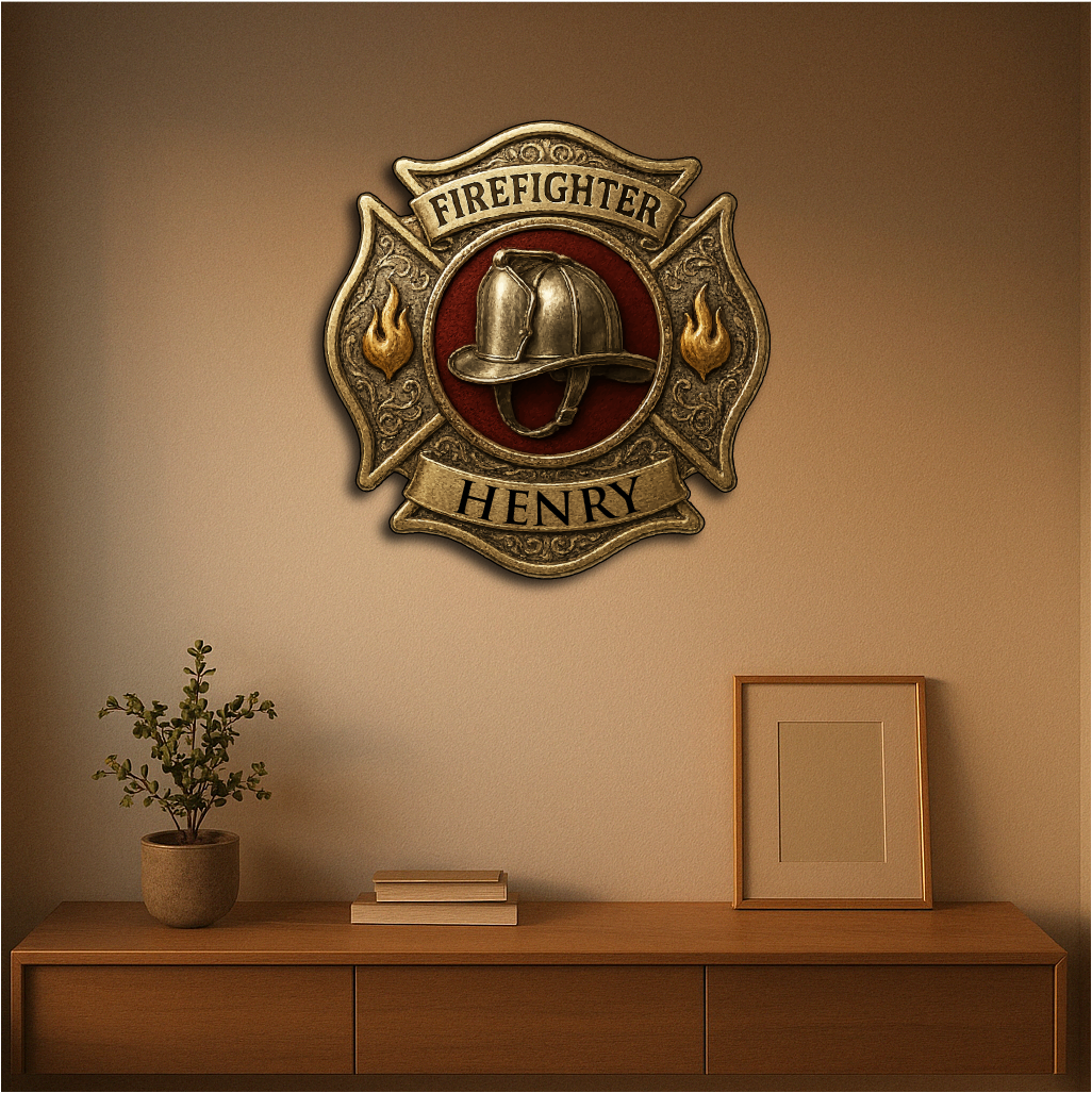 Crafted from durable, weather-resistant metal, this firefighter wall badge makes a striking addition to homes, fire stations, or offices. Personalize it with your name, rank, or department for a one-of-a-kind keepsake.