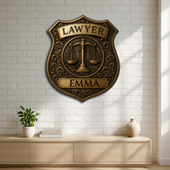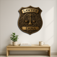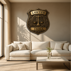 Celebrate professionalism and prestige with our Custom Lawyer Badge. Featuring the scales of justice at its center, this elegant plaque includes intricate detailing and a customizable name section. Perfect for lawyers, judges, law students, or anyone in the legal profession.