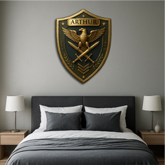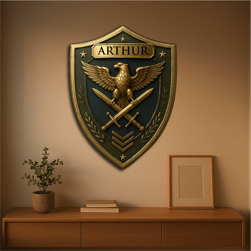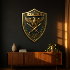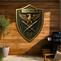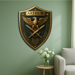 Show pride and honor with our Custom Military Eagle Badge, featuring a bold eagle with wings spread, crossed swords, and a gold laurel wreath. Personalized with any name, this badge is a perfect display piece for military personnel, veterans, officers, or as a commemorative gift.