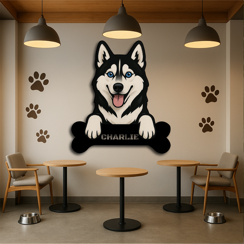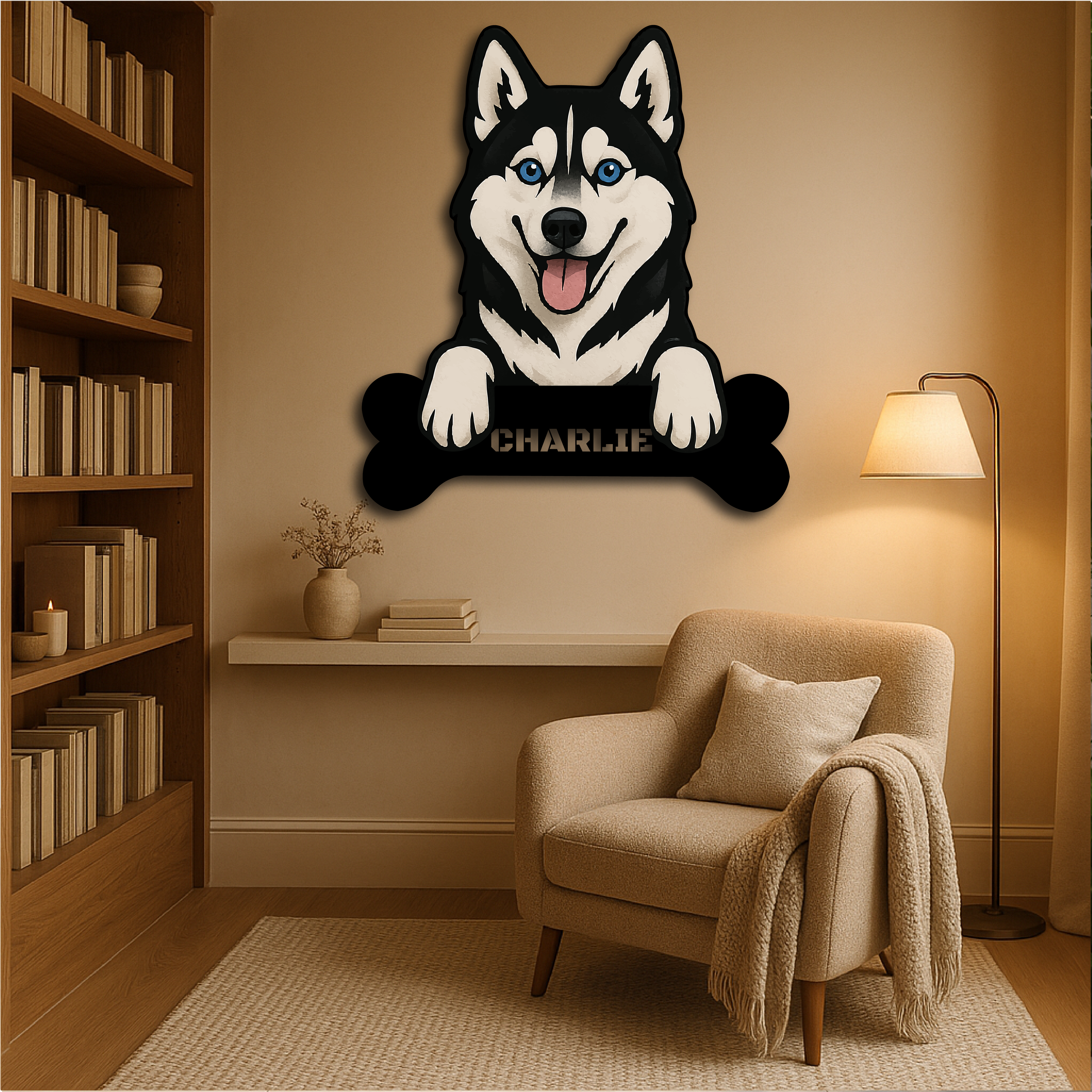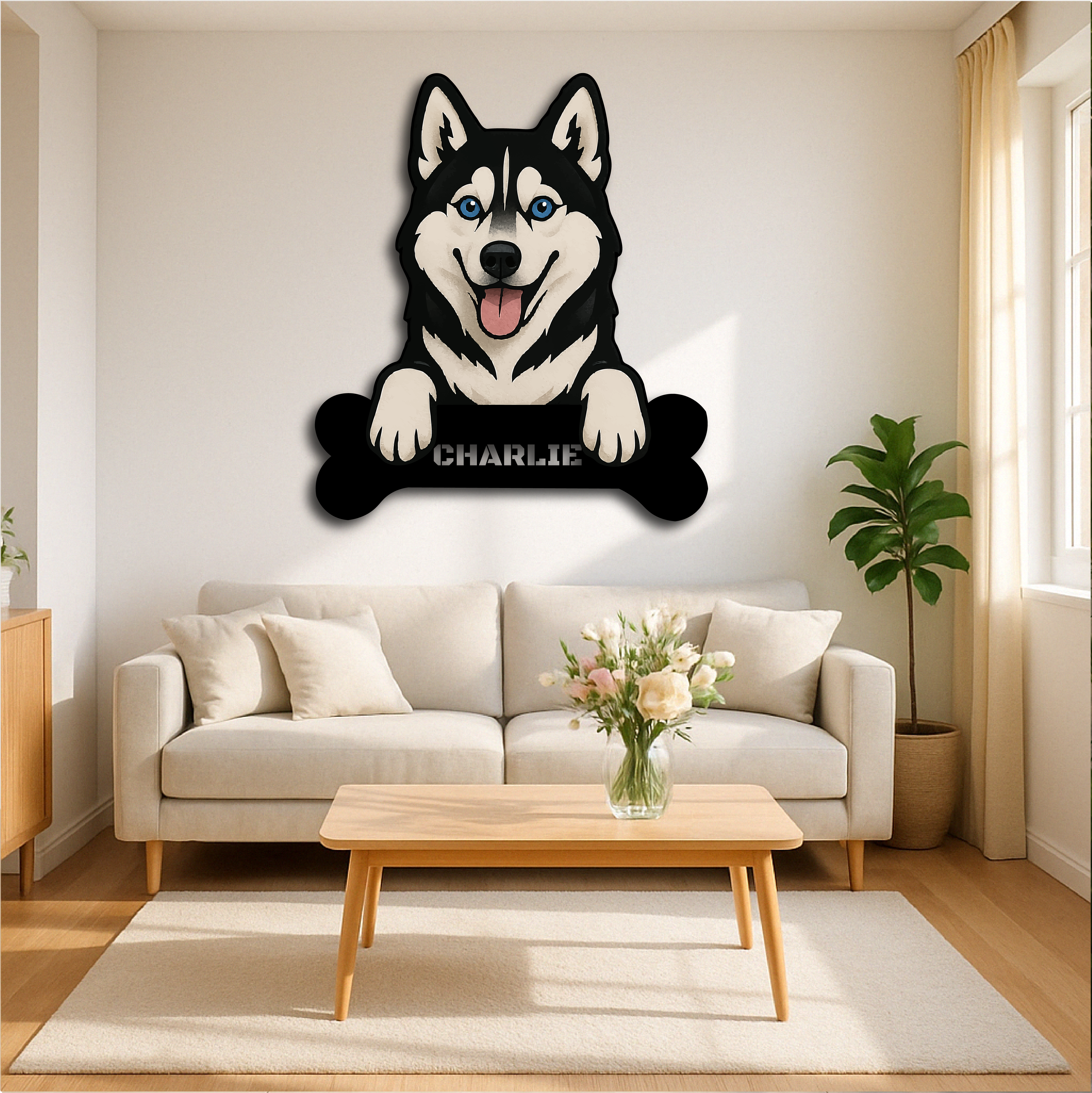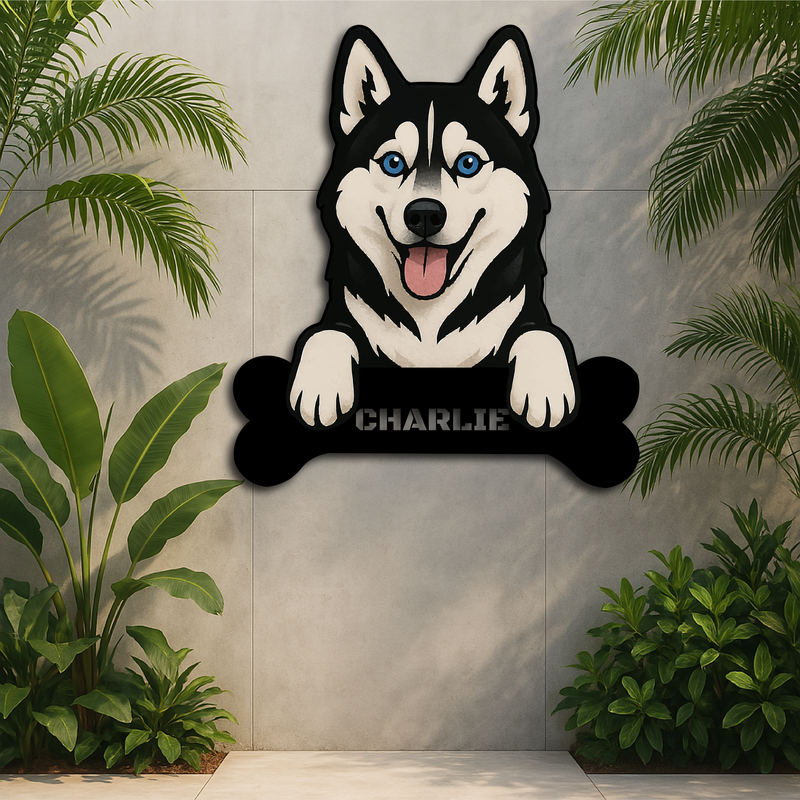 Custom Siberian Husky Dog Name Sign – Personalized Metal Wall Art with Bone Nameplate
