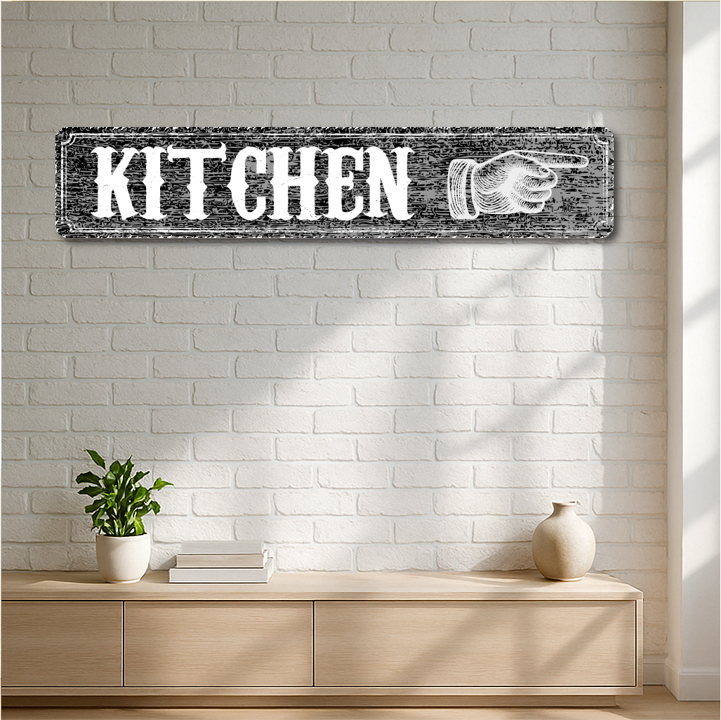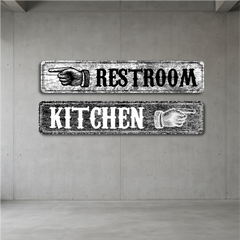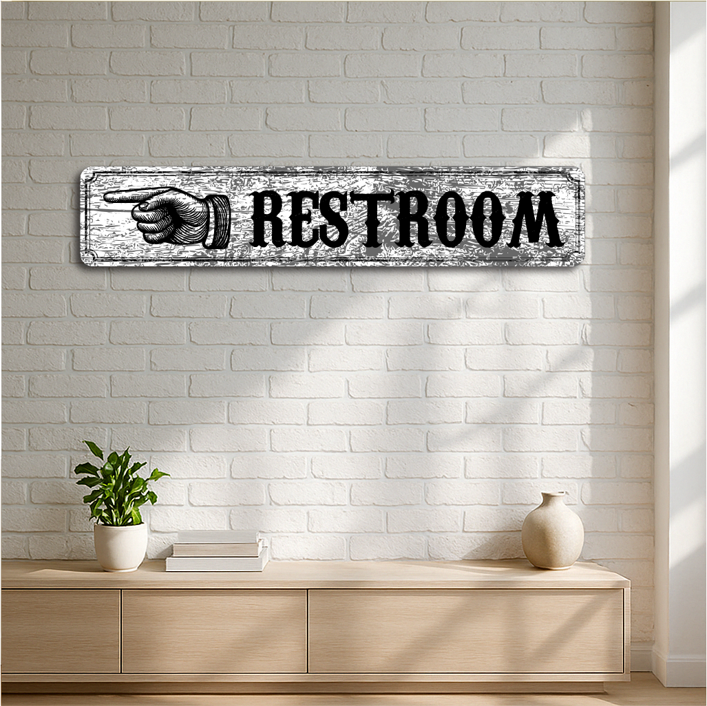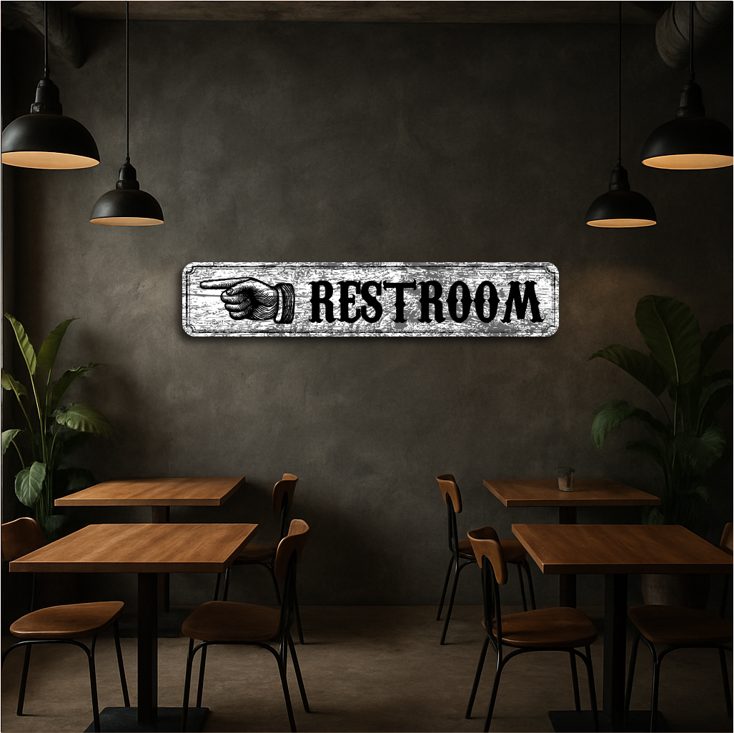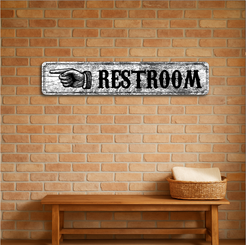 Add timeless character and functional style to your space with our Vintage Pointing Hand Direction Sign. Featuring bold typography and classic pointing hand illustrations, these durable metal signs are perfect for directing guests to essential areas like restrooms and kitchens with a charming vintage touch.