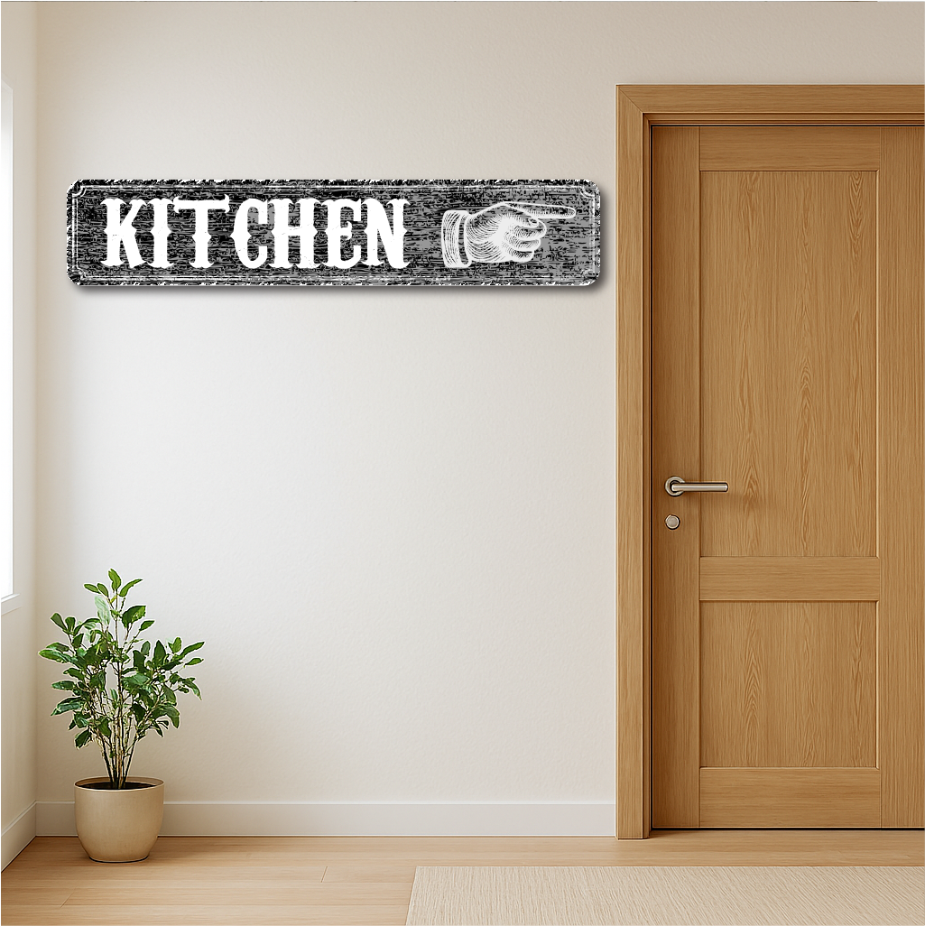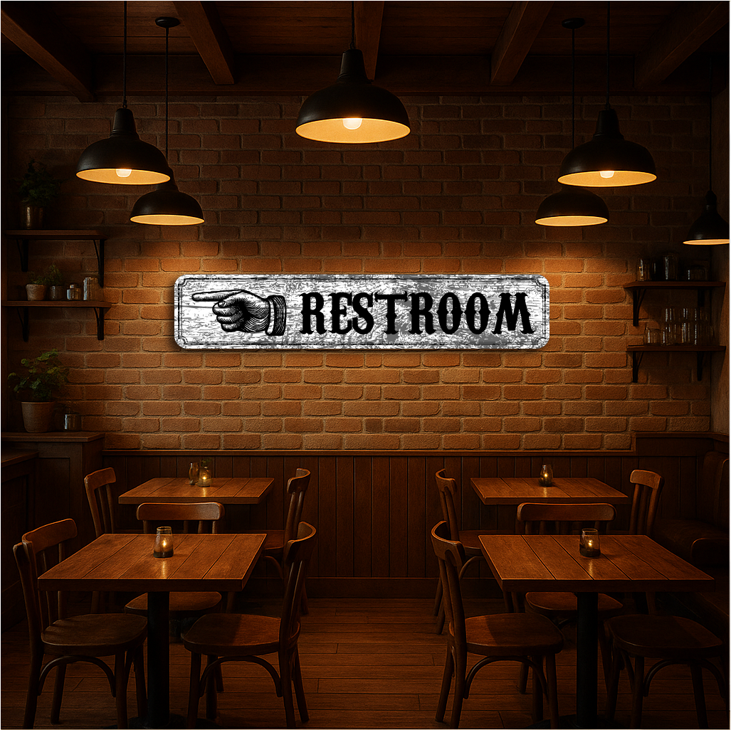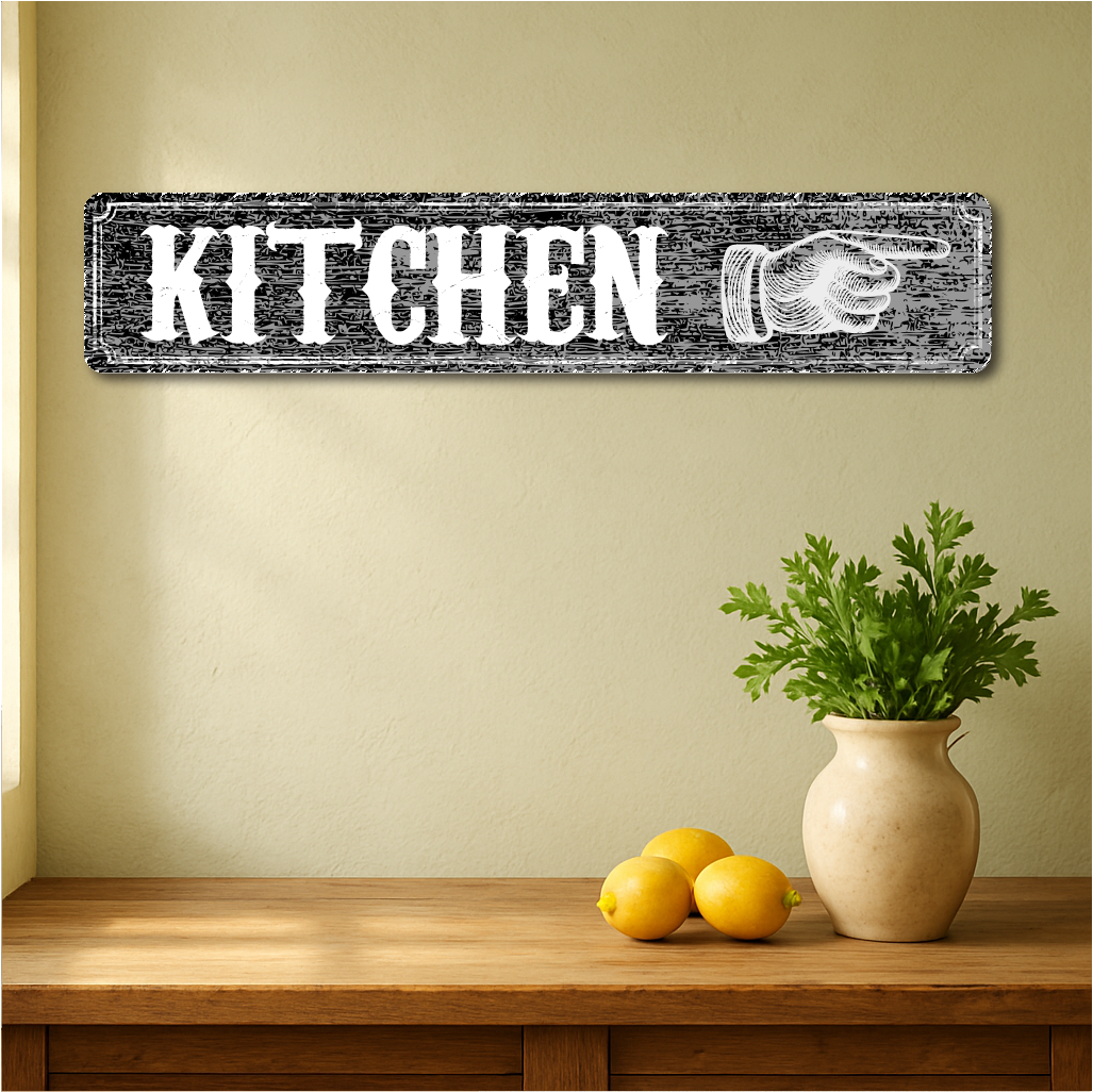 Add timeless character and functional style to your space with our Vintage Pointing Hand Direction Sign. Featuring bold typography and classic pointing hand illustrations, these durable metal signs are perfect for directing guests to essential areas like restrooms and kitchens with a charming vintage touch.