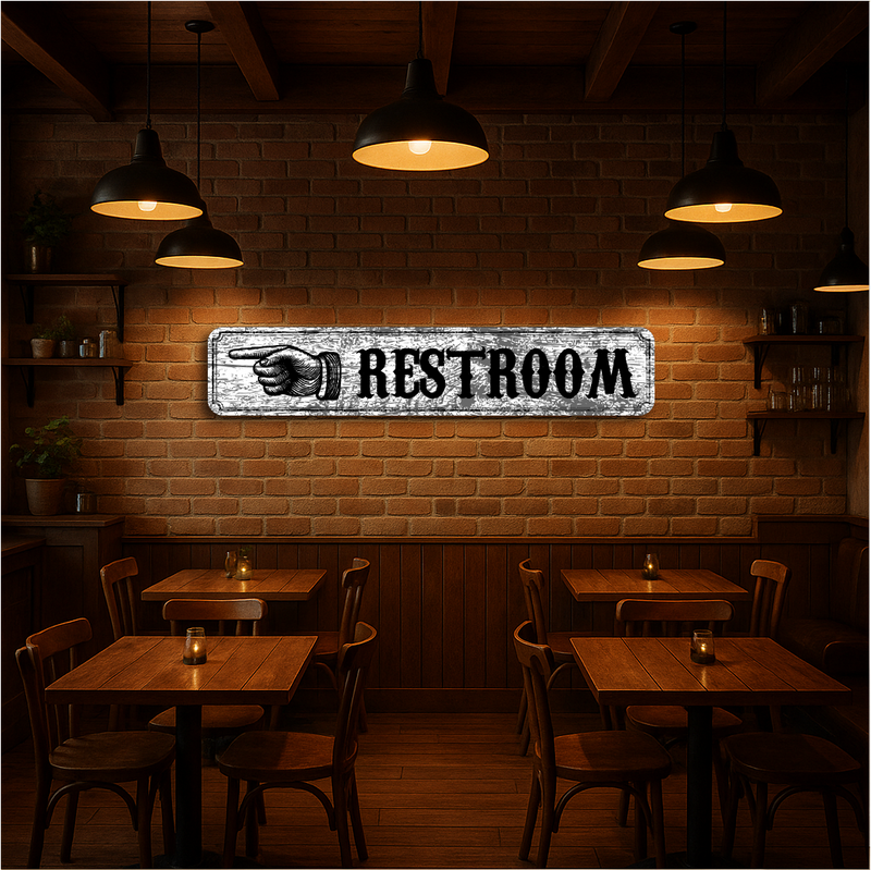 Vintage Pointing Hand Direction Sign – Restroom & Kitchen Metal Wall Signs