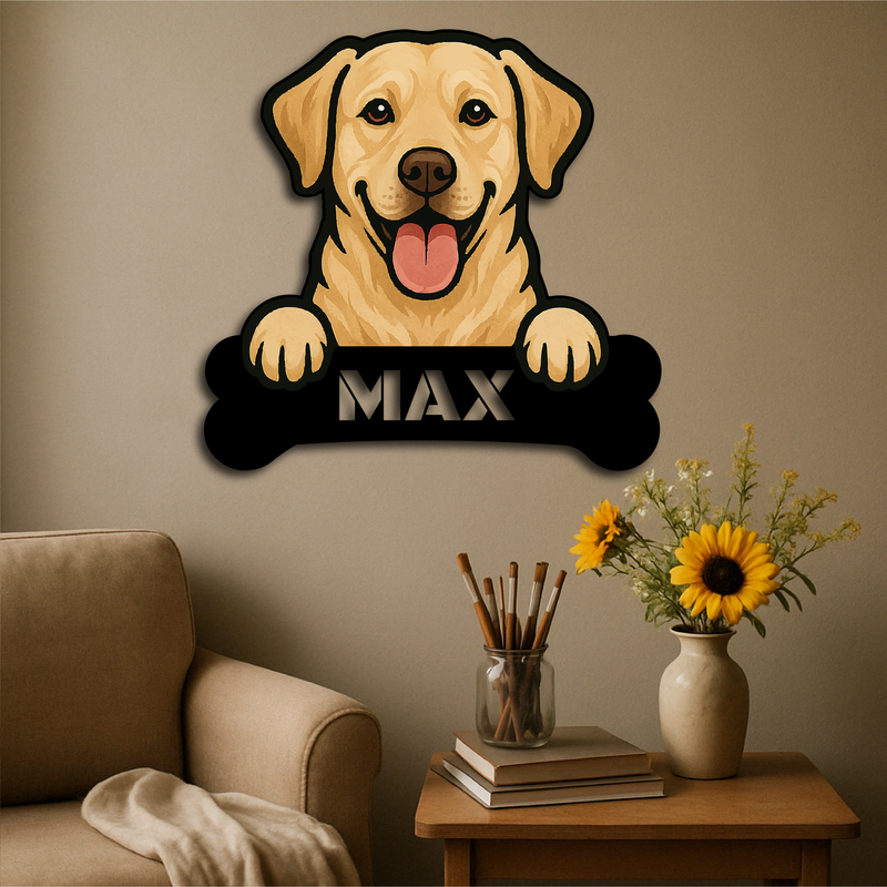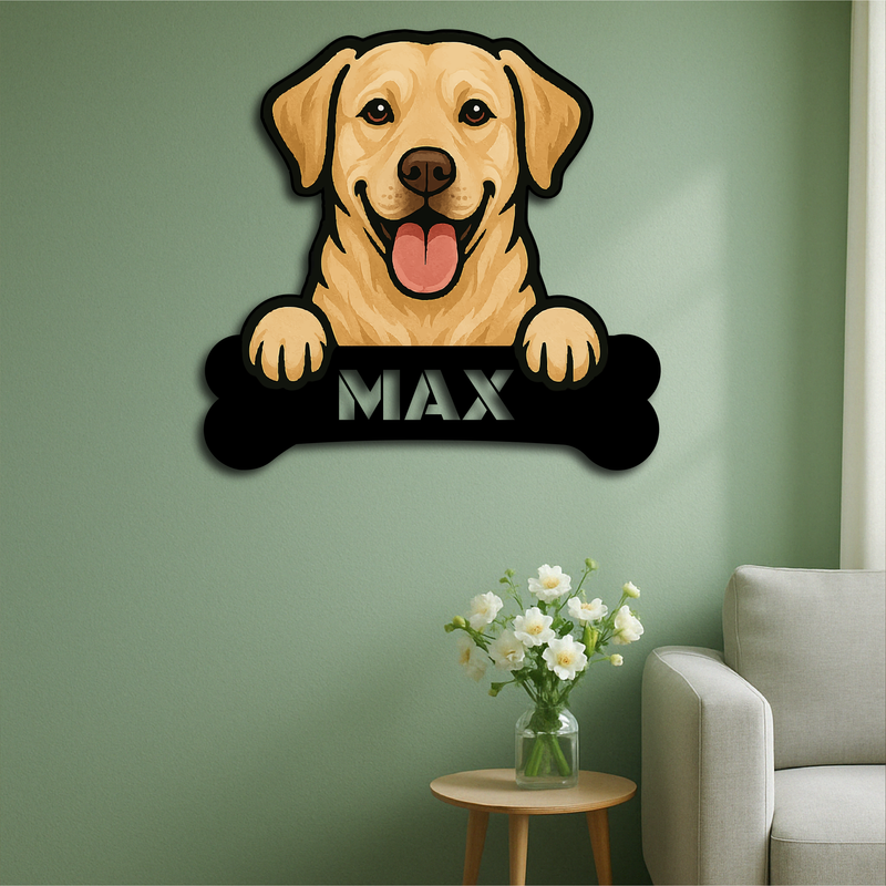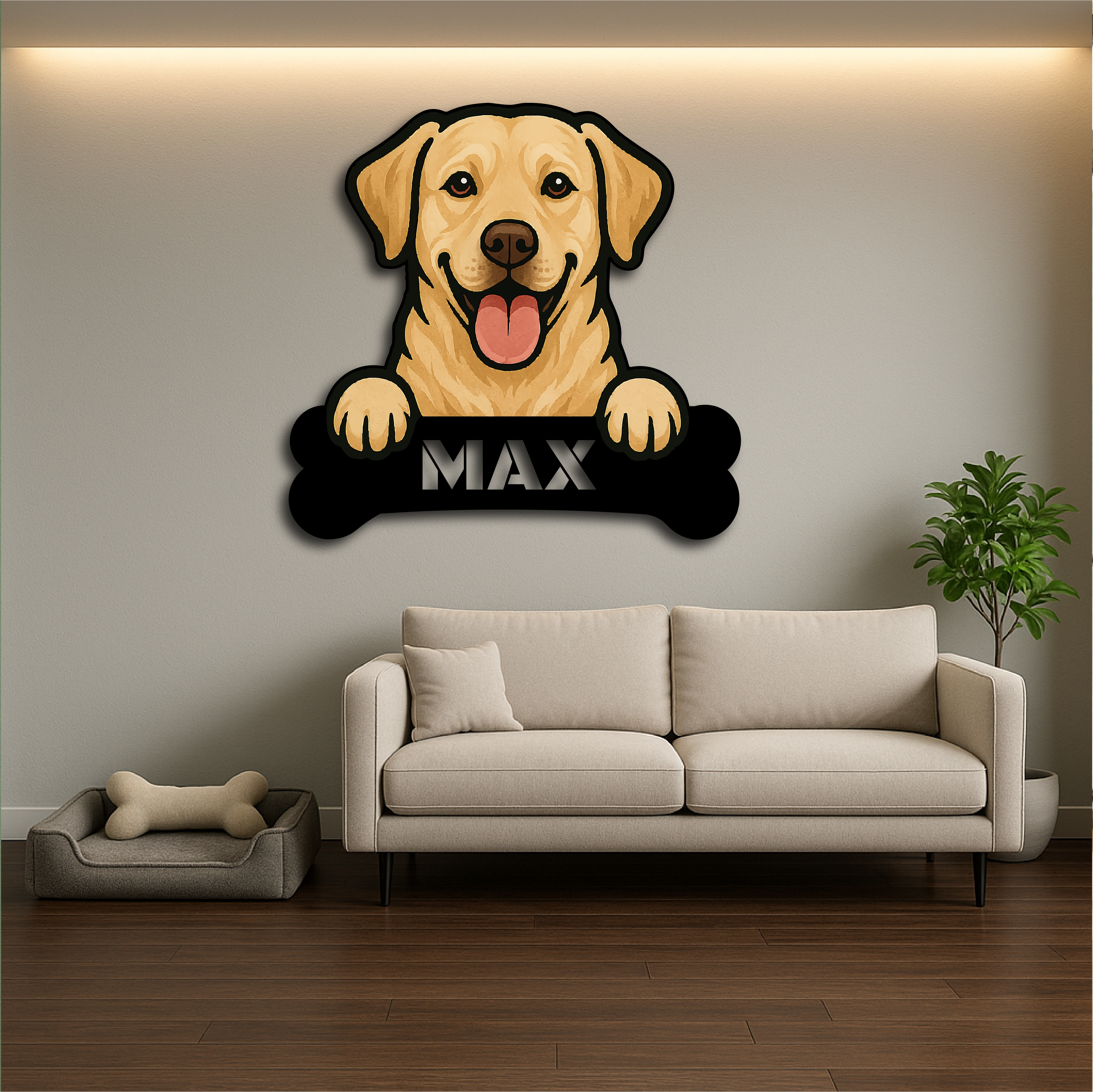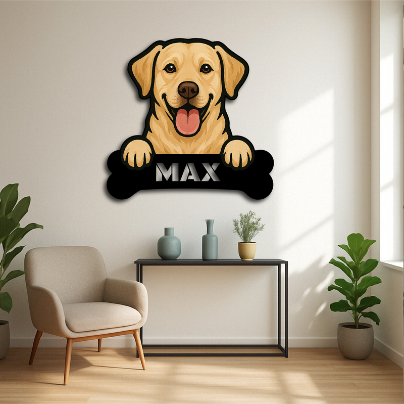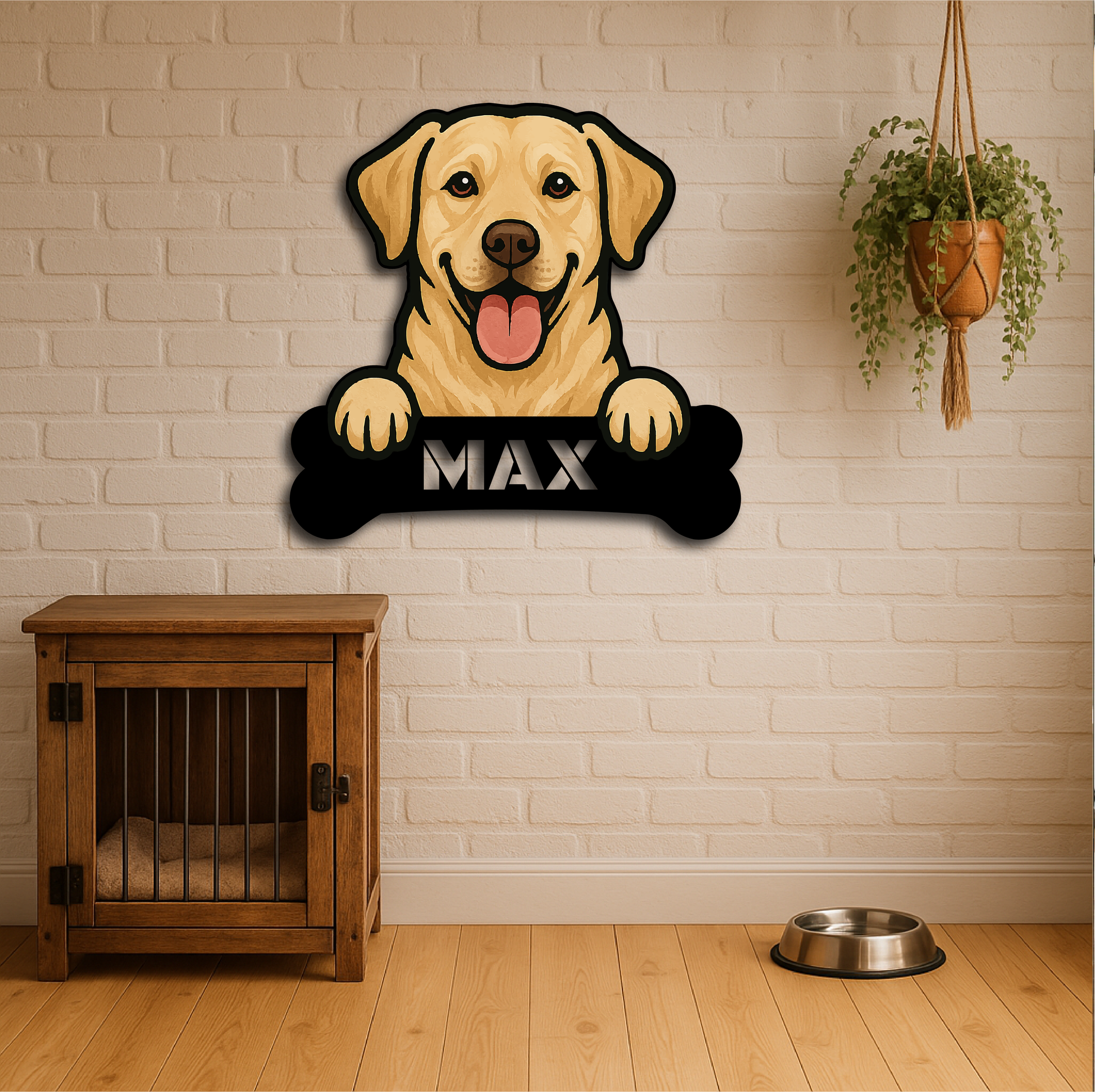 Custom Labrador Retriever Dog Name Sign – Personalized Metal Wall Art with Bone Plaque