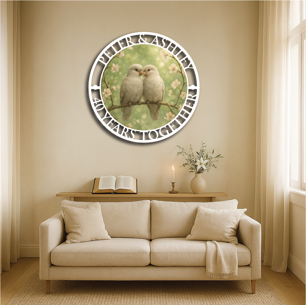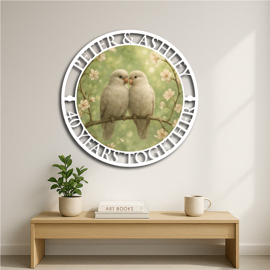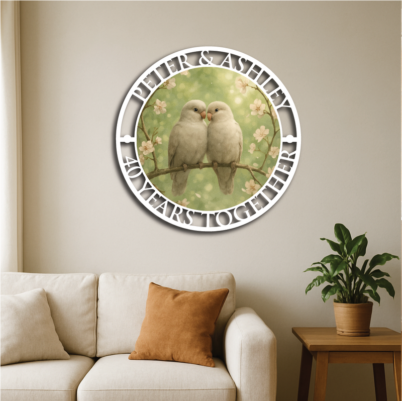 Personalized Lovebirds Anniversary Metal Wall Art – Custom Bird Couple Design