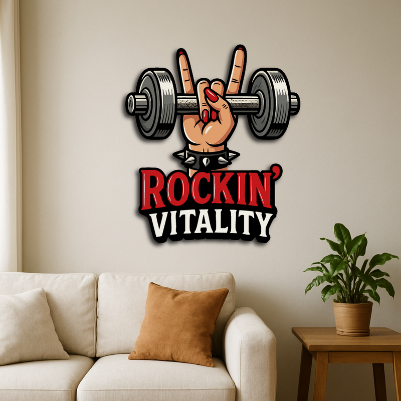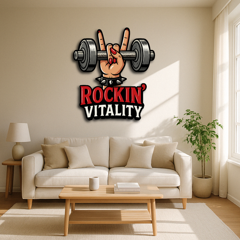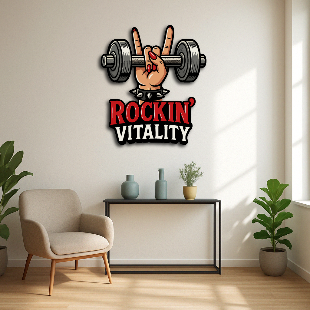 Turn up the energy in your gym or workout space with our Rockin’ Vitality Metal Wall Art. Featuring a bold dumbbell gripped by a rock hand gesture, this unique design fuses the power of fitness with the spirit of rock. Crafted from durable metal with vivid details, this sign makes a perfect decoration for home gyms, fitness studios, or motivational workout spaces. Built to last and designed to inspire, it’s the ultimate statement piece for athletes and rock lovers alike.