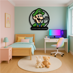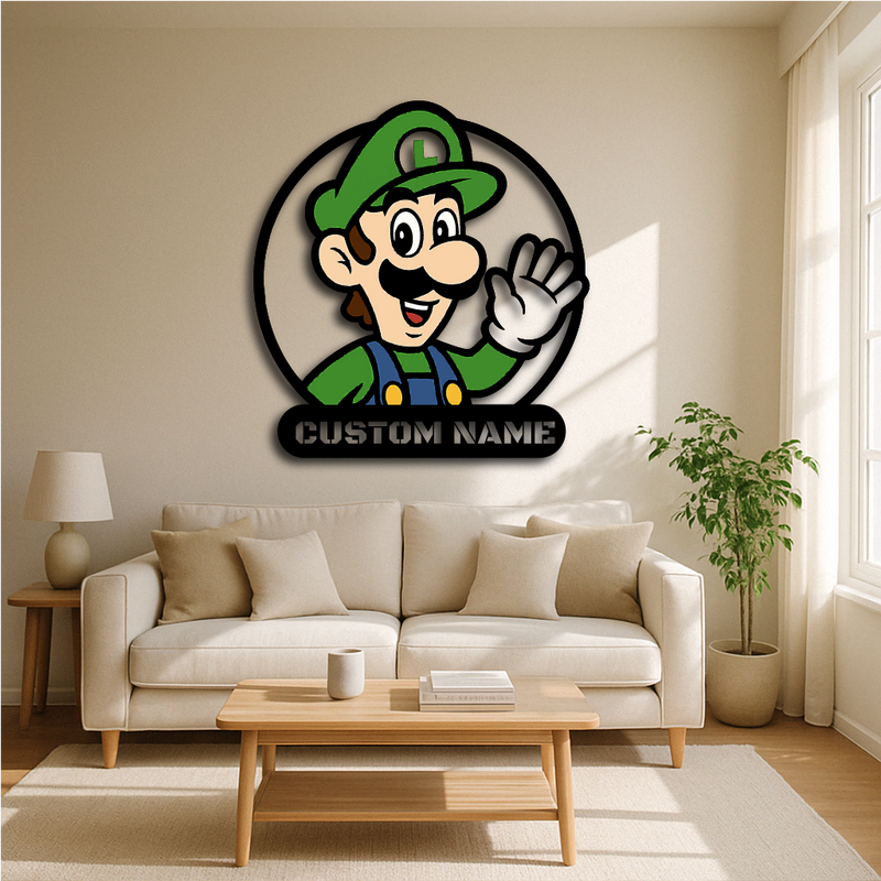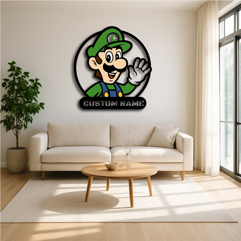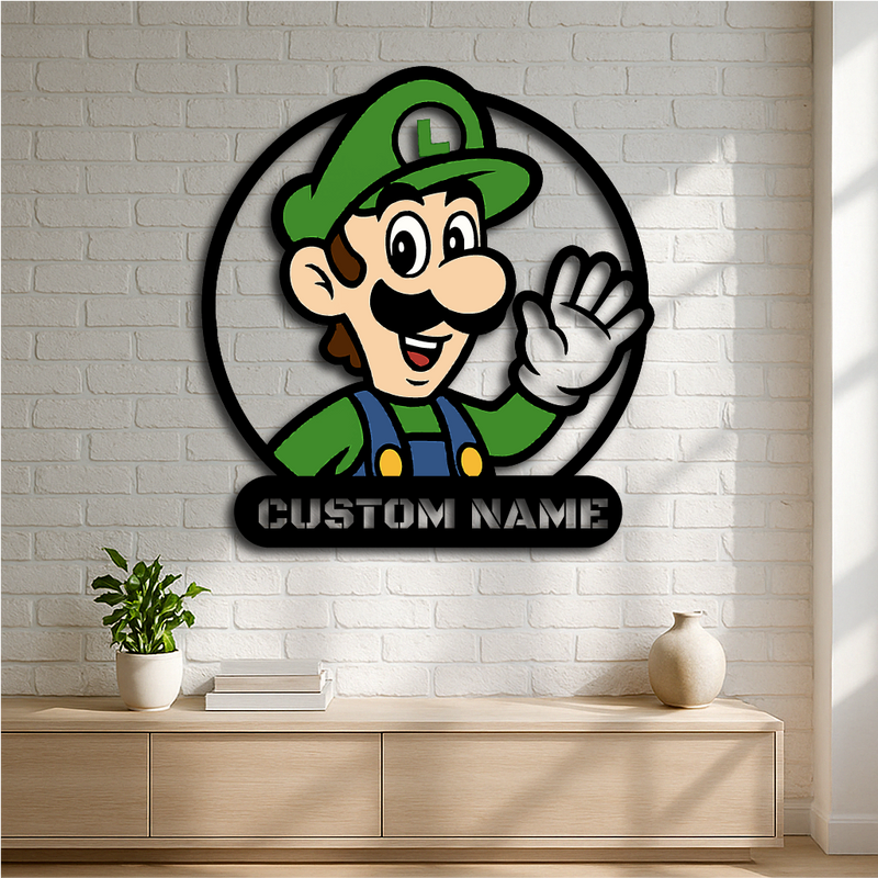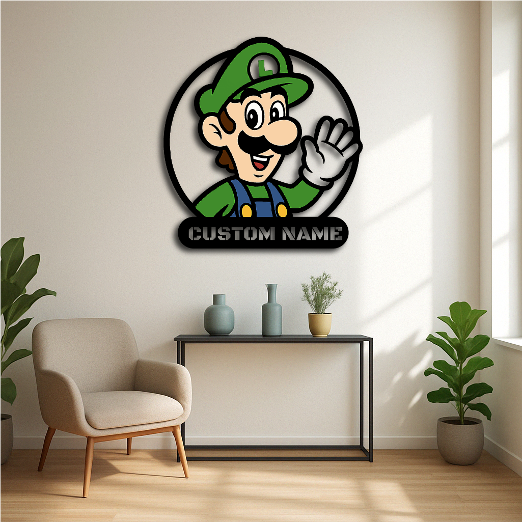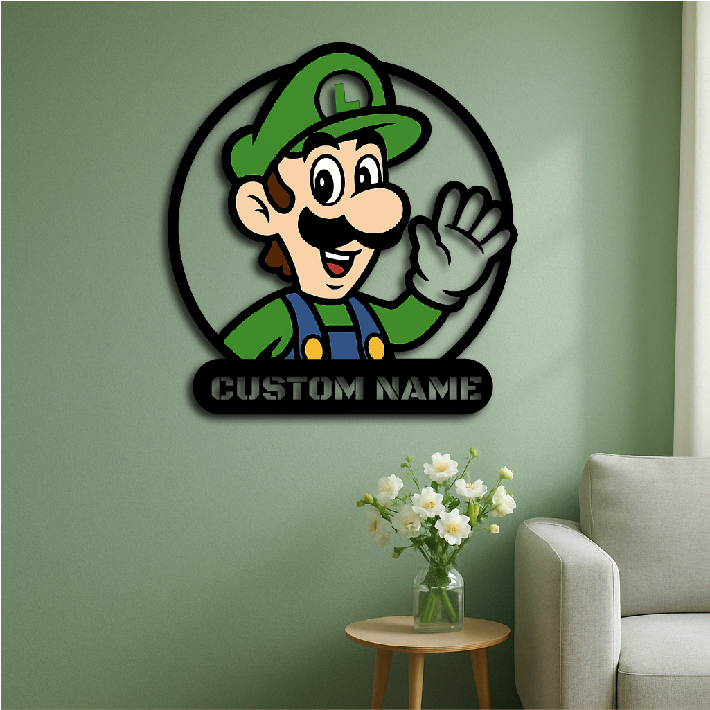 Custom Luigi-Inspired Metal Wall Sign – Personalized Cartoon Character Decor