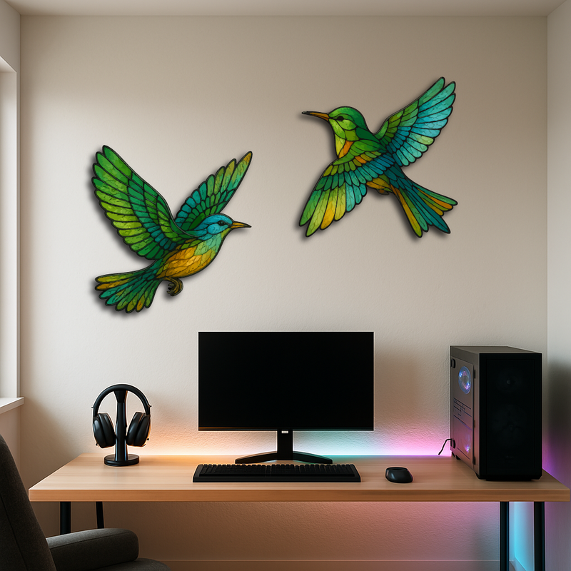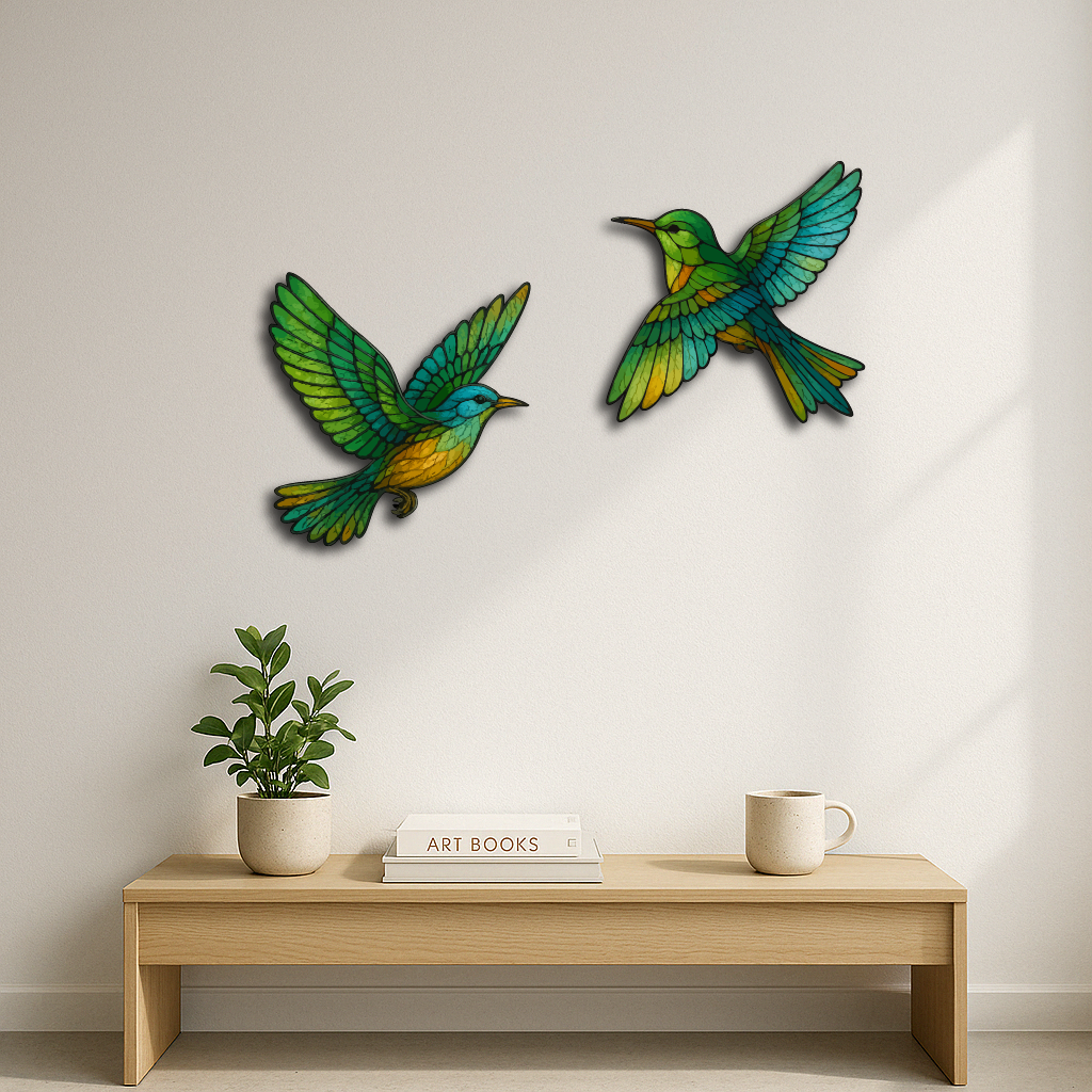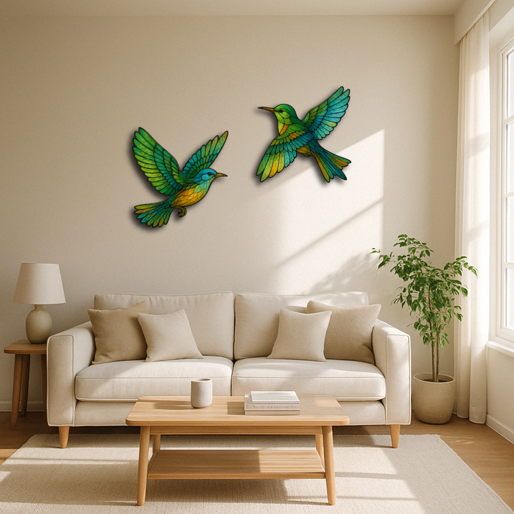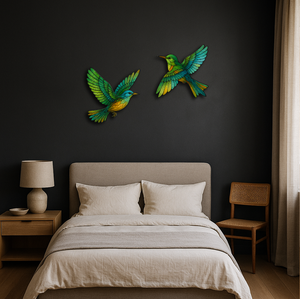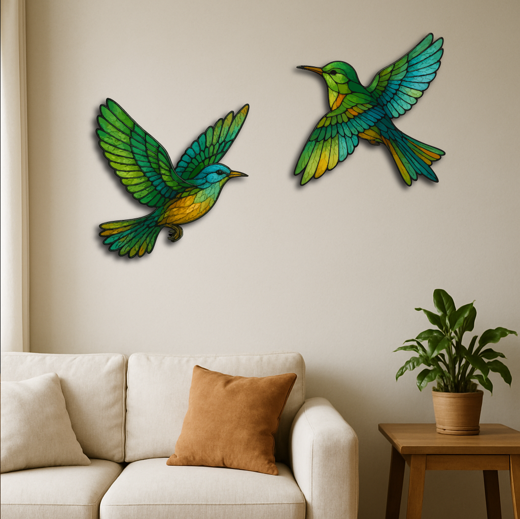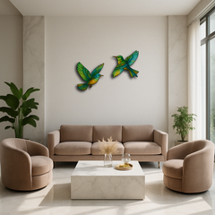 Each piece is crafted from durable 16-gauge steel and finished with vibrant, fade-resistant multicolor UV printing for stunning detail and long-lasting brilliance. Whether placed in your living room, bedroom, hallway, or garden area, these birds will brighten any space with their elegant presence.
