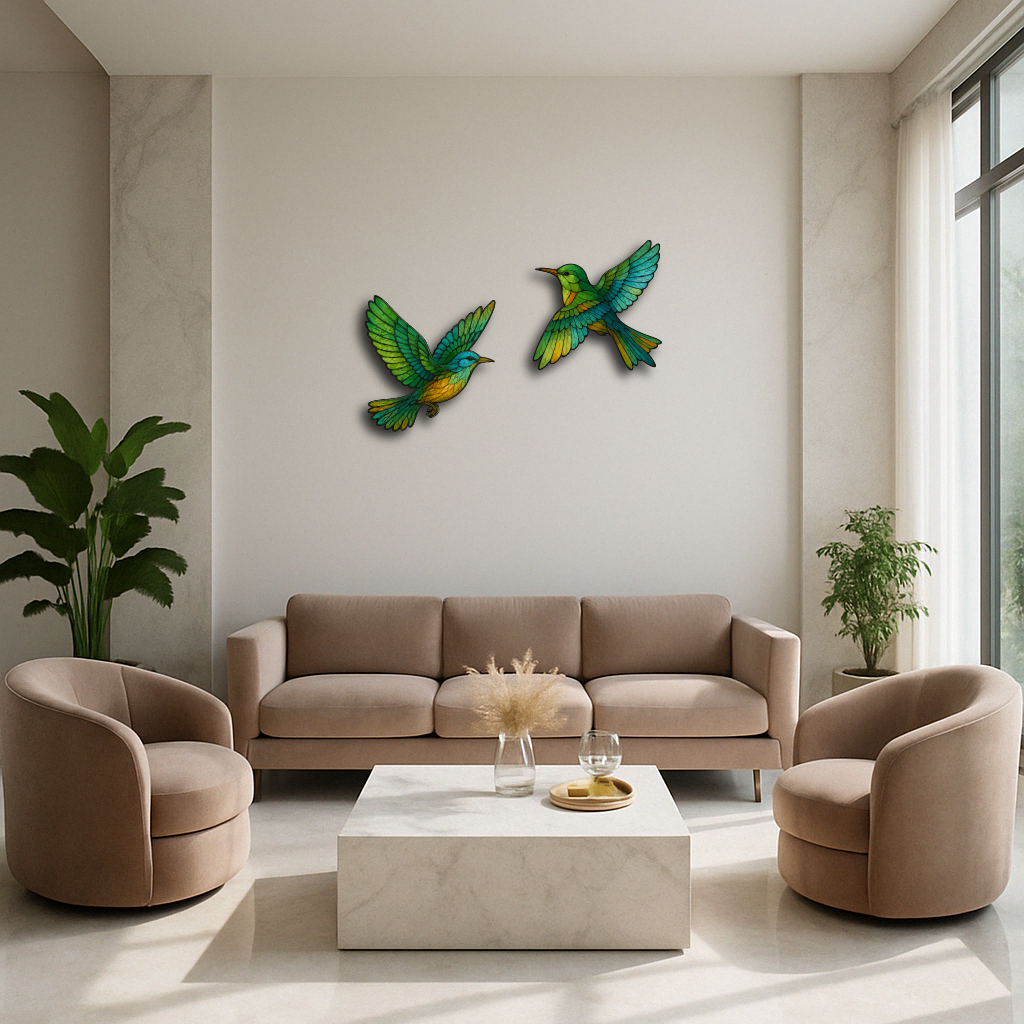Featuring two beautifully detailed birds in mid-flight, this design symbolizes freedom, harmony, and natural beauty — perfect for creating a peaceful atmosphere in your home.