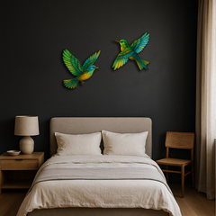 Bring life, color, and tranquility to your walls with our Colorful Birds Metal Wall Art Set.