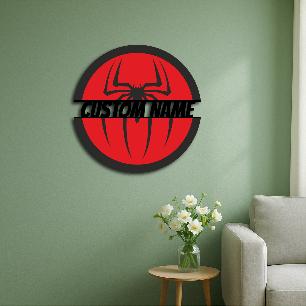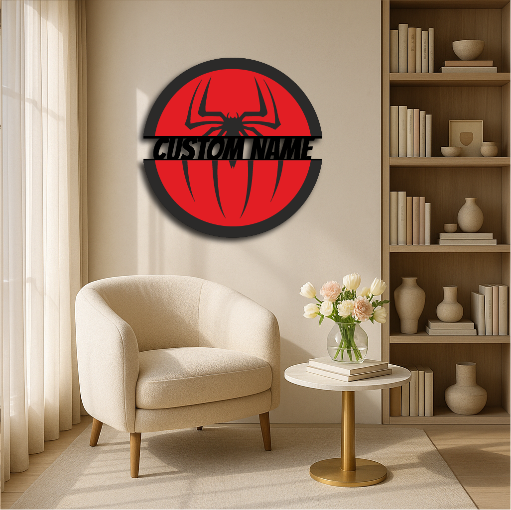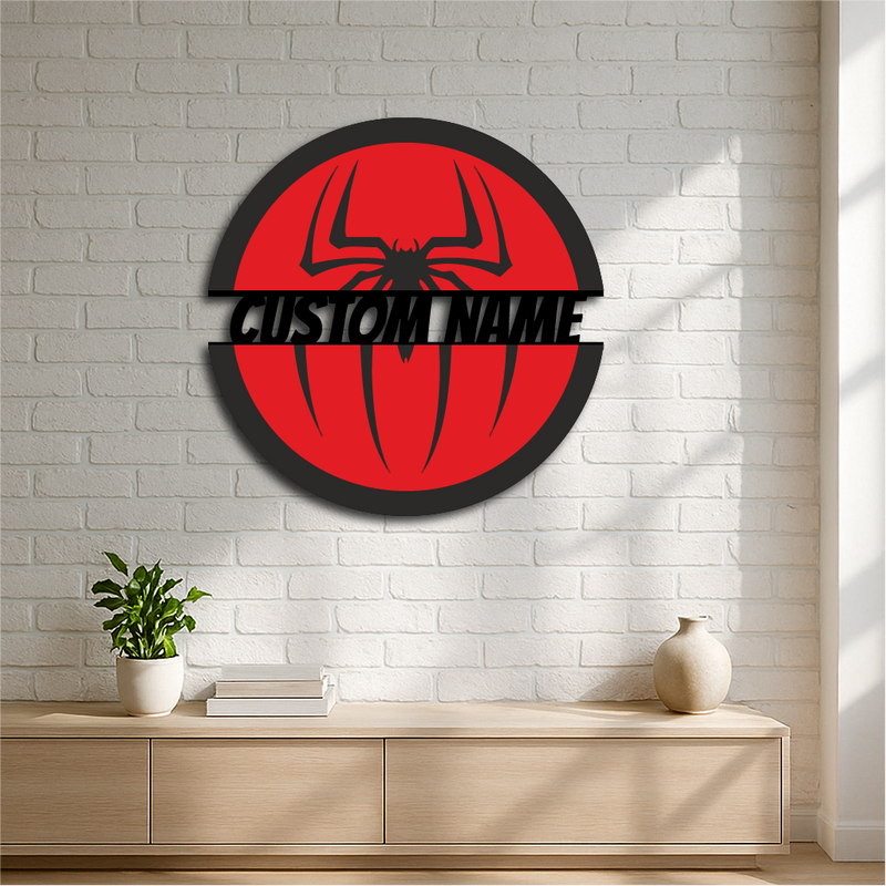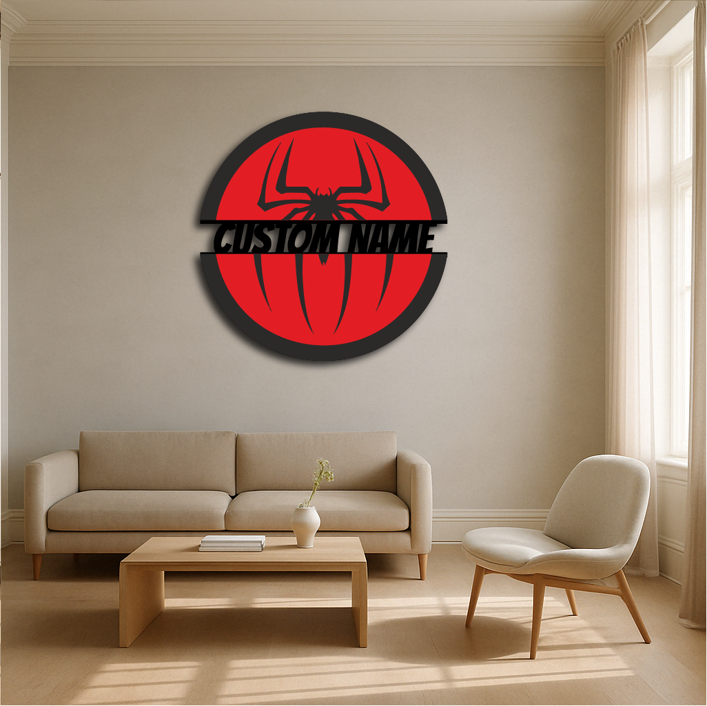 Featuring a bold red-and-black spider emblem design with customizable name text, this piece perfectly blends strength and minimalism. Ideal for kids’ rooms, gaming setups, or collectors who love iconic superhero-inspired décor.