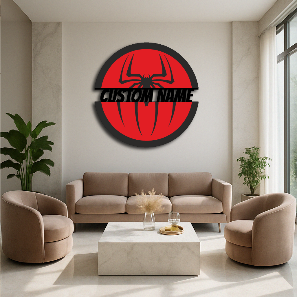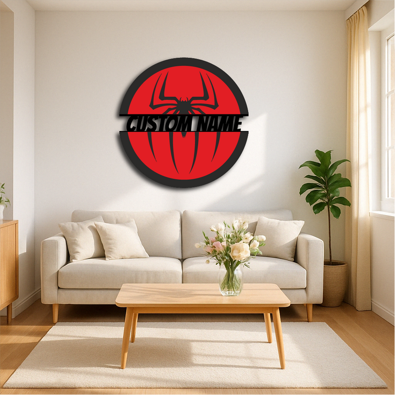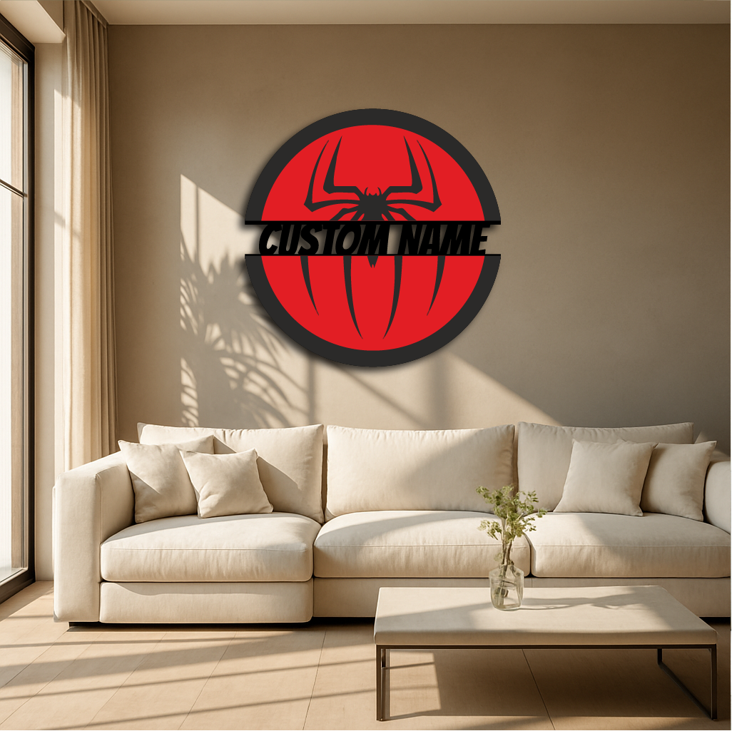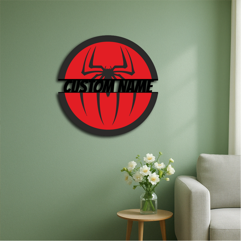 Featuring a bold red-and-black spider emblem design with customizable name text, this piece perfectly blends strength and minimalism. Ideal for kids’ rooms, gaming setups, or collectors who love iconic superhero-inspired décor.