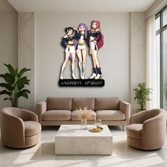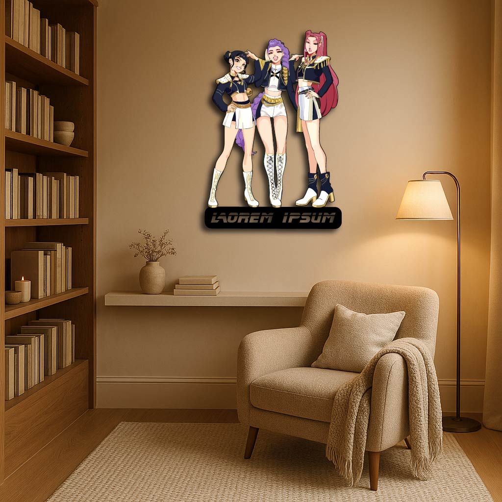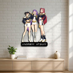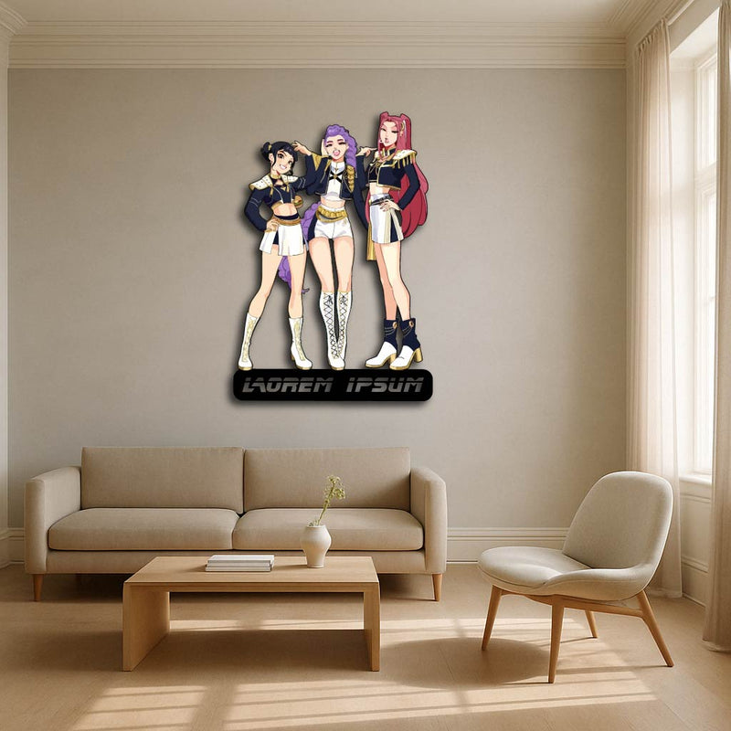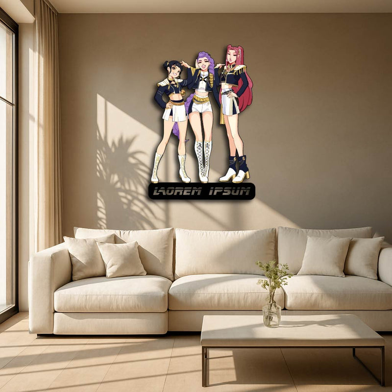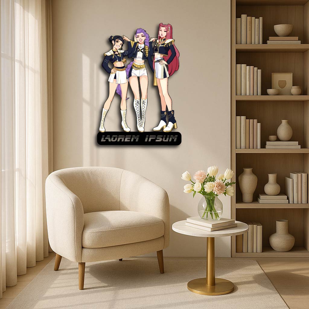 Bring the power and confidence of the Hunter Demons universe into your home with this stunning Trio Warrior Custom Metal Wall Sign!
