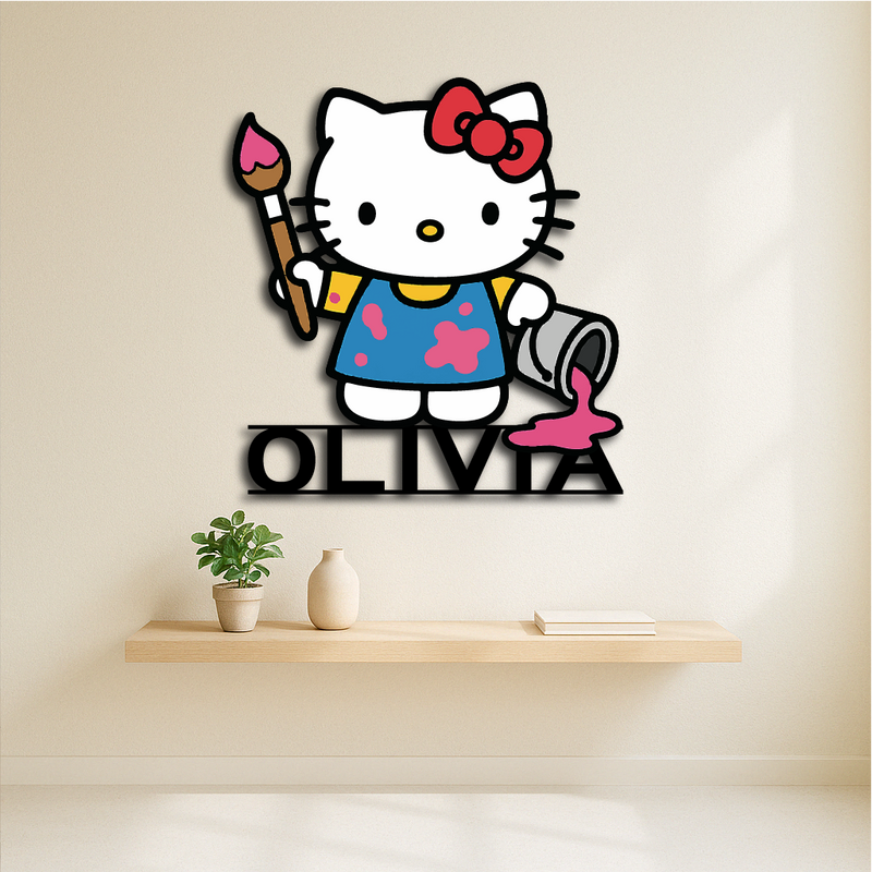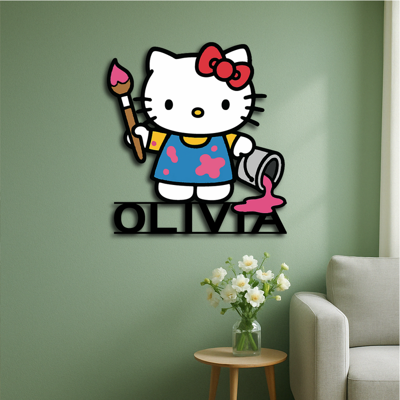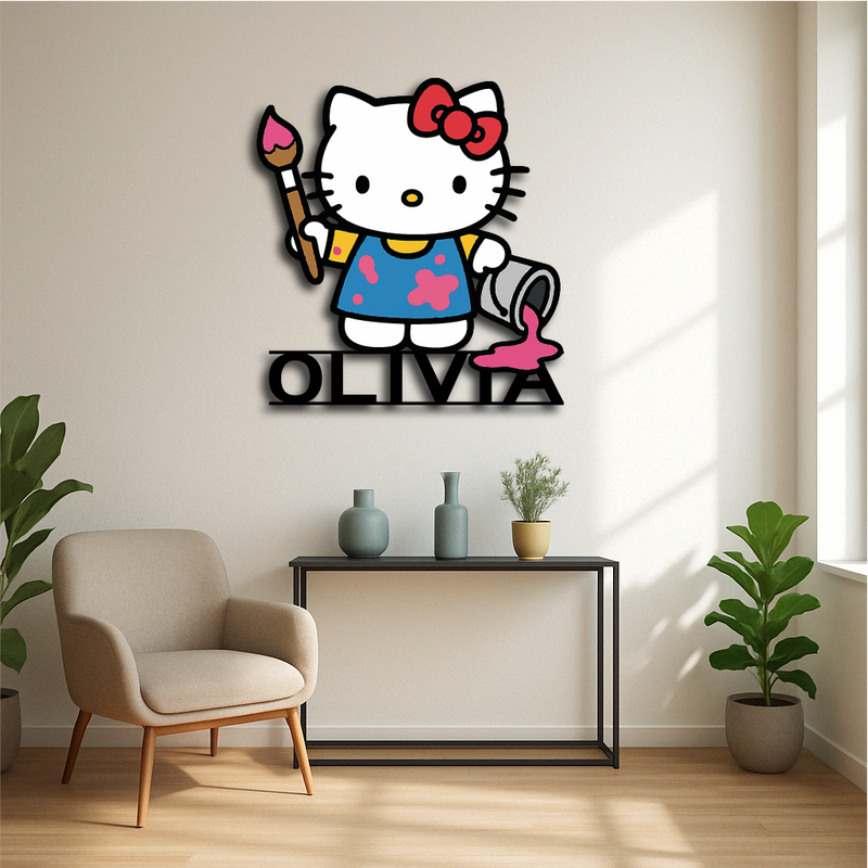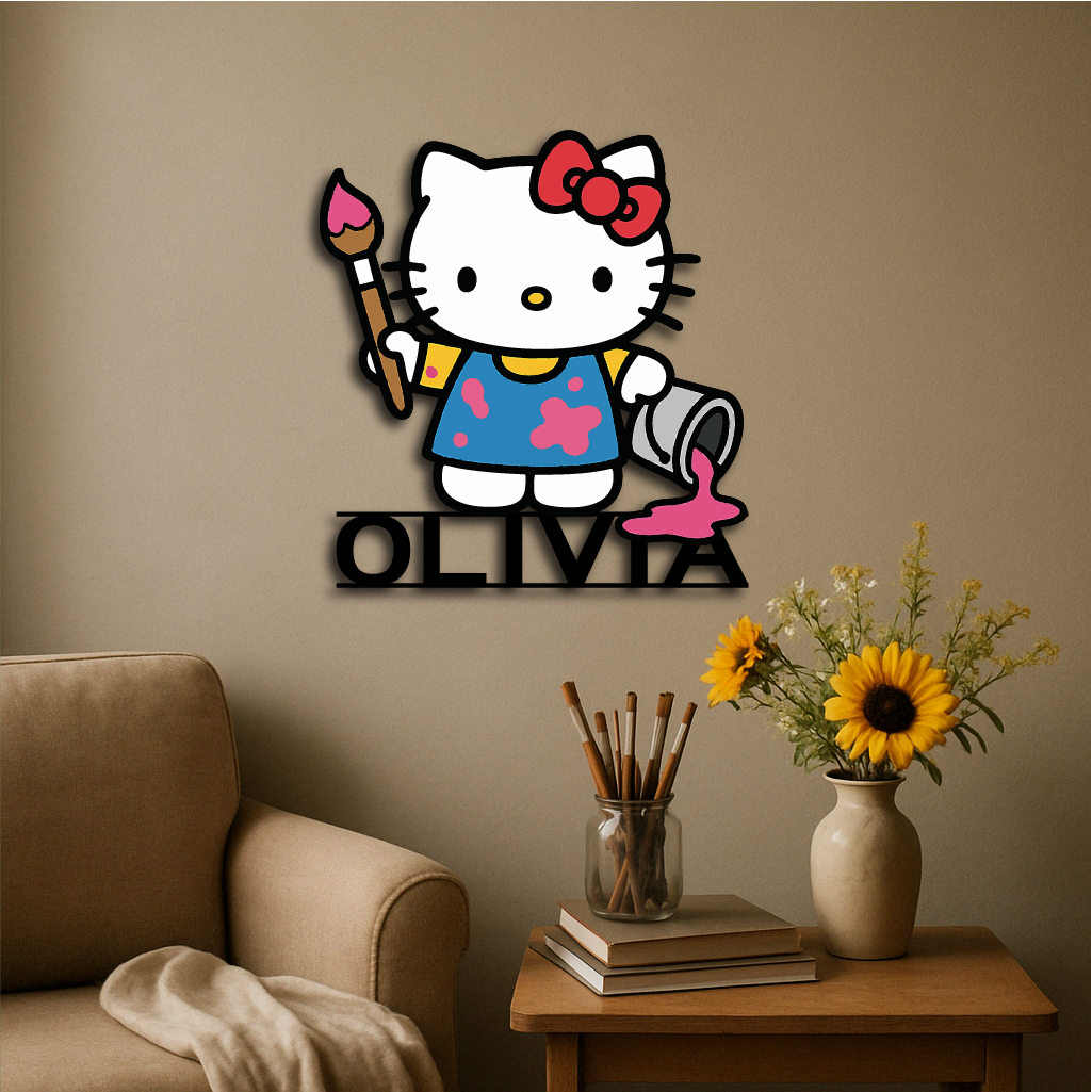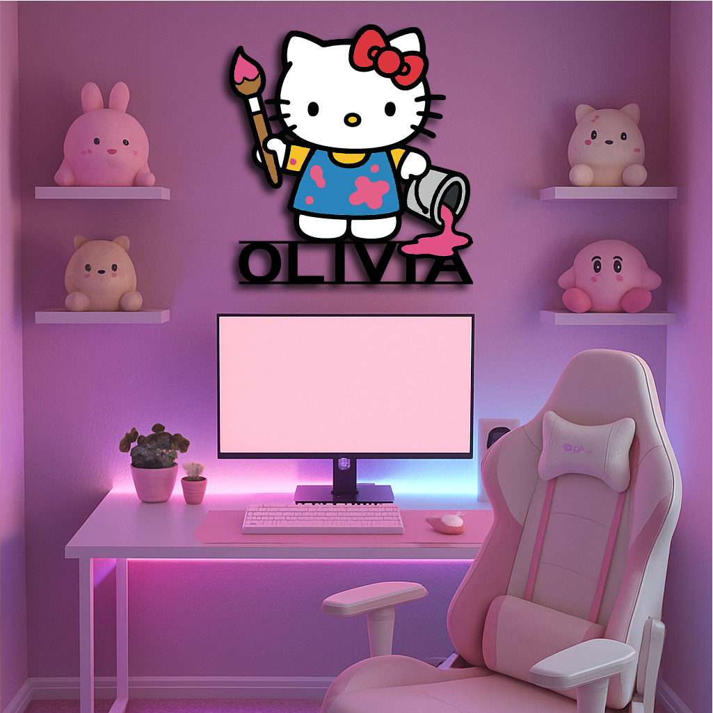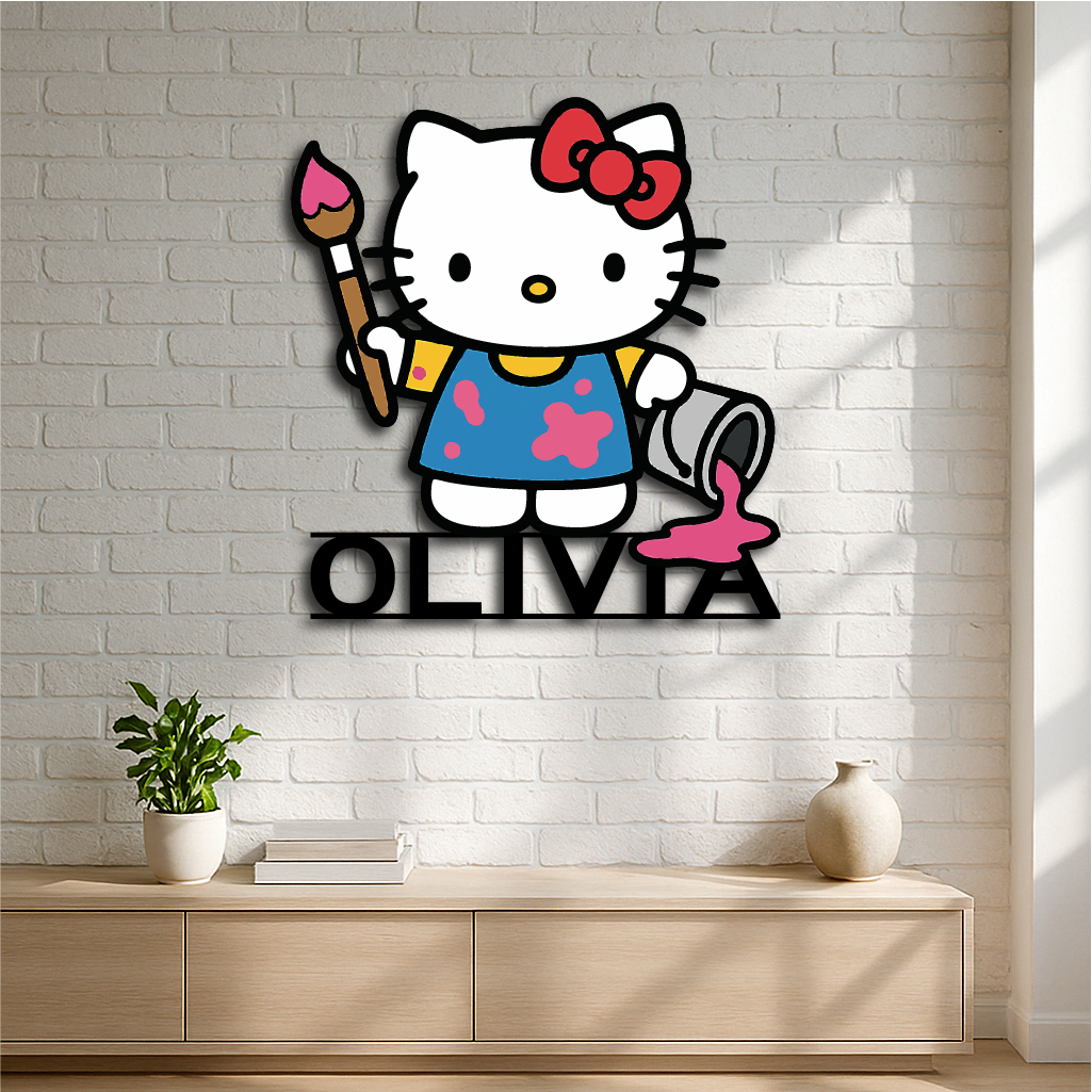 Hello Kity Custom Metal Wall Art – Personalized Kids Room Sign