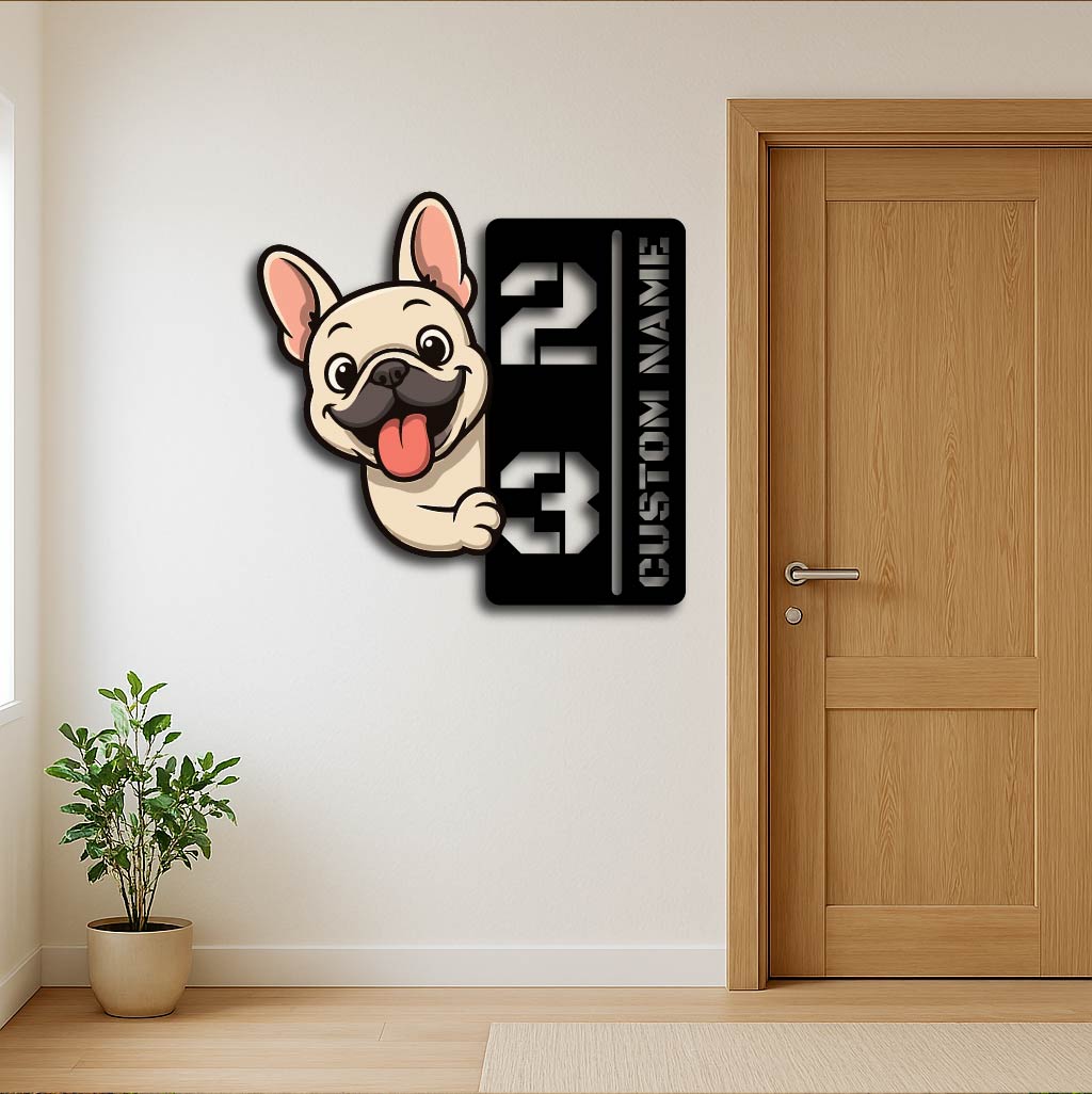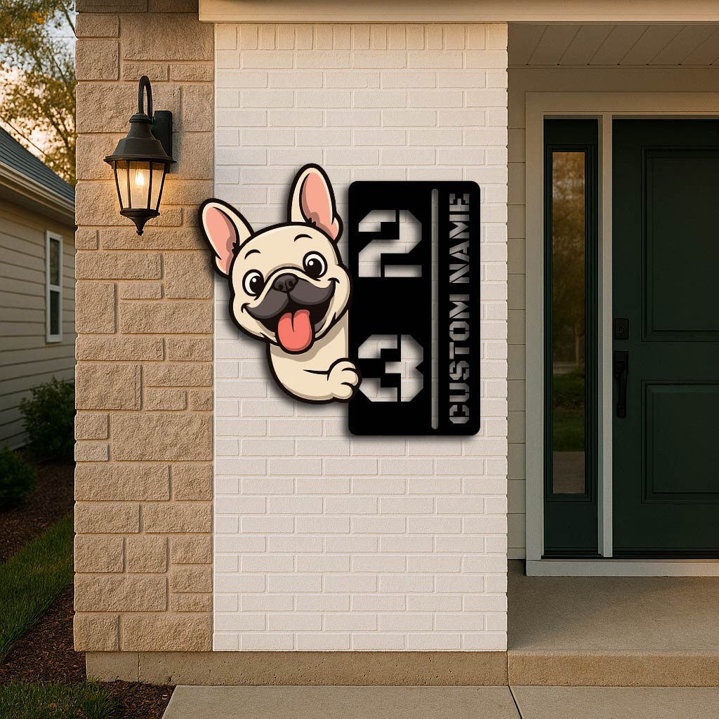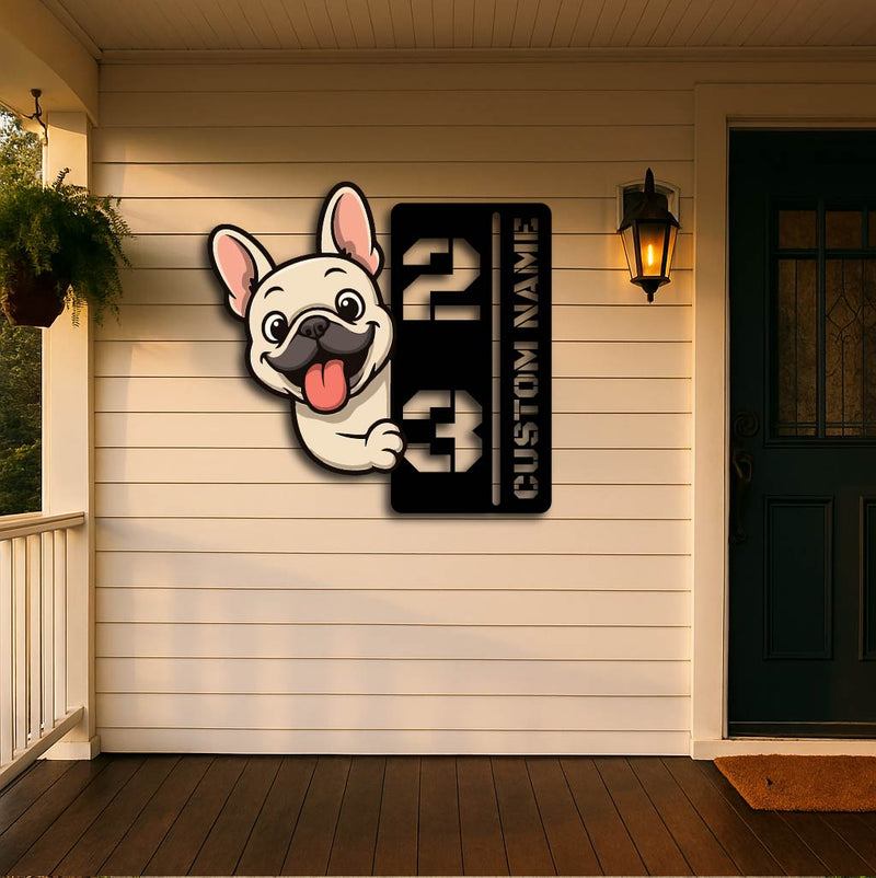 Bring playful charm and personality to your home with our Personalized French Bulldog House Number Sign! Featuring an adorable Frenchie peeking beside your custom house number, this durable metal sign adds warmth, humor, and a unique touch to your entryway. Perfect for dog lovers who want their home to stand out.