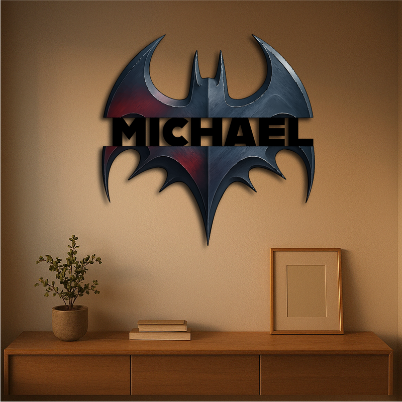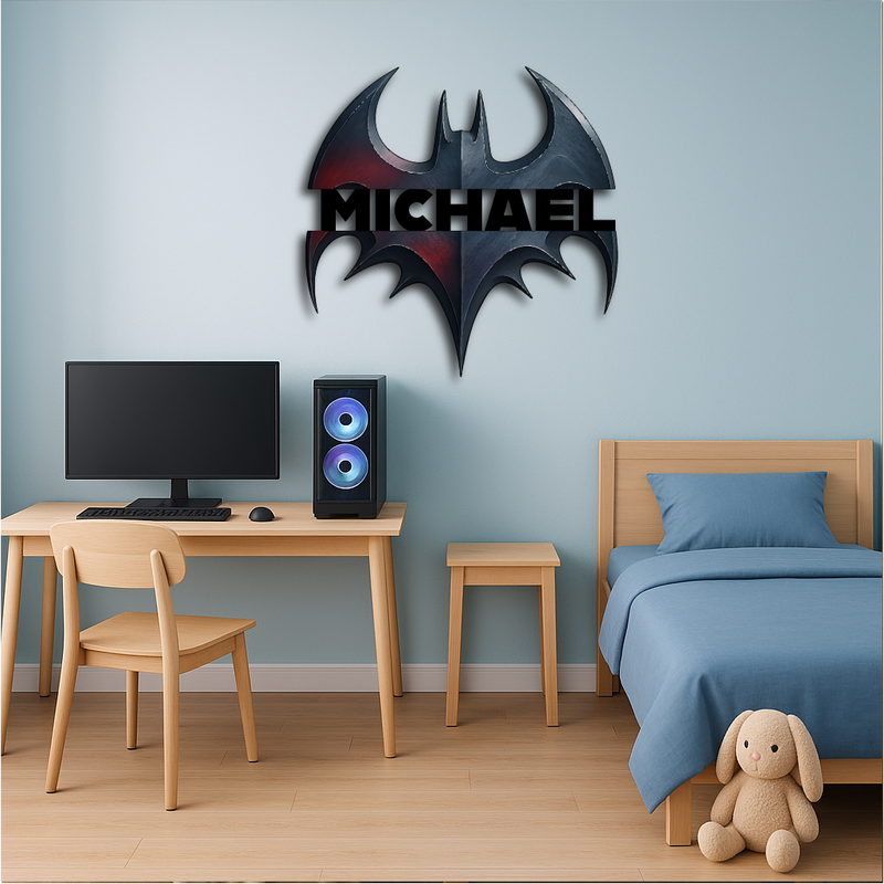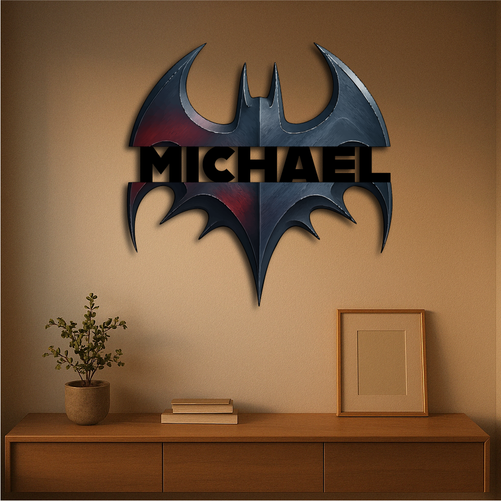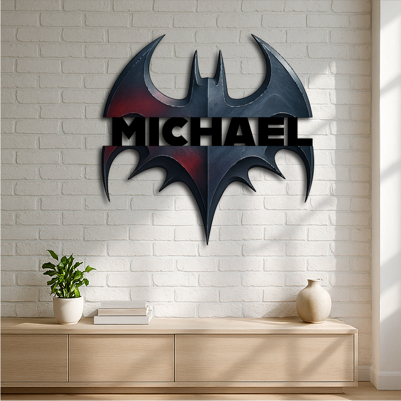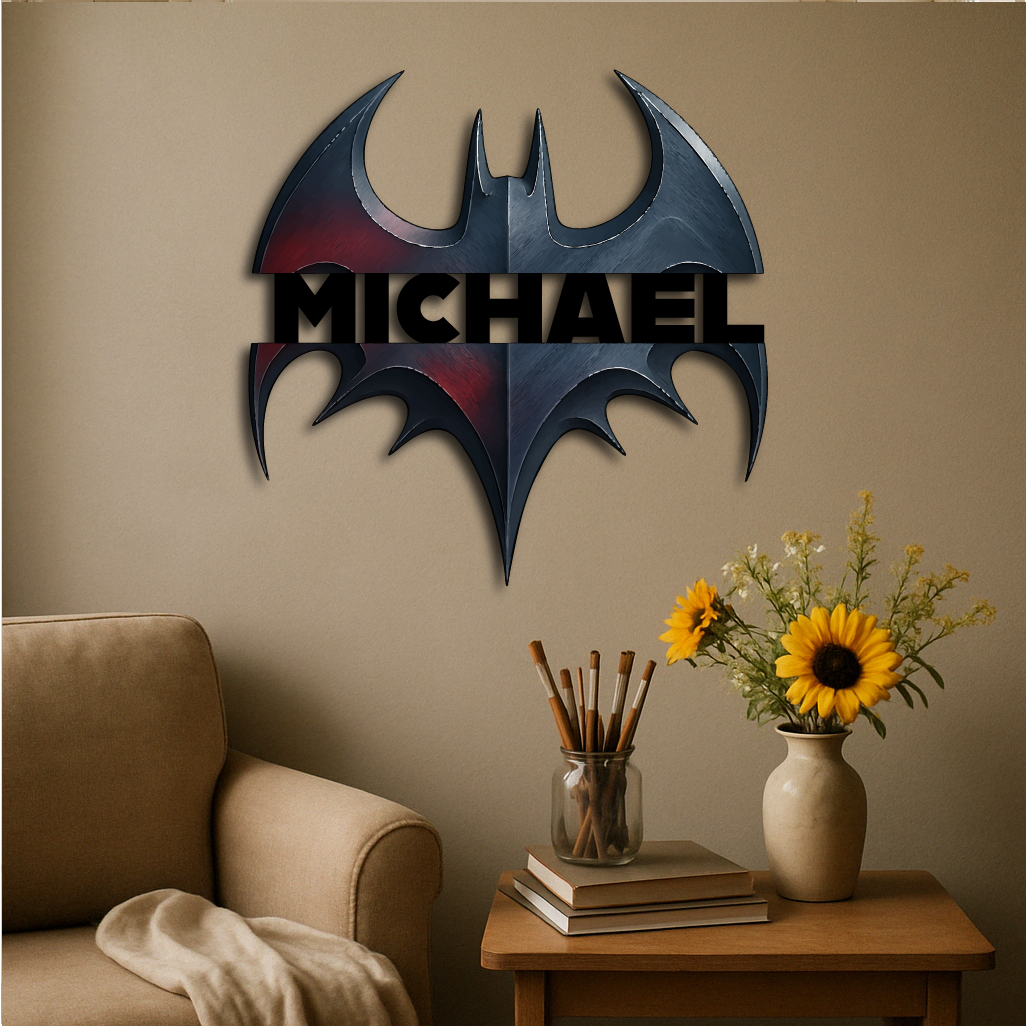 Personalized Batman Logo Metal Wall Art – Custom Name Superhero Sign