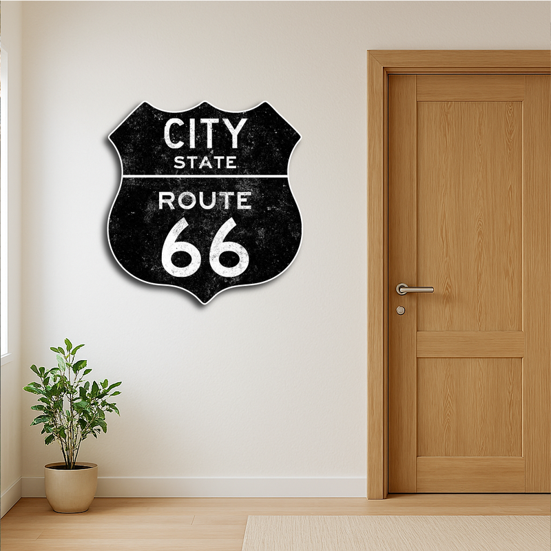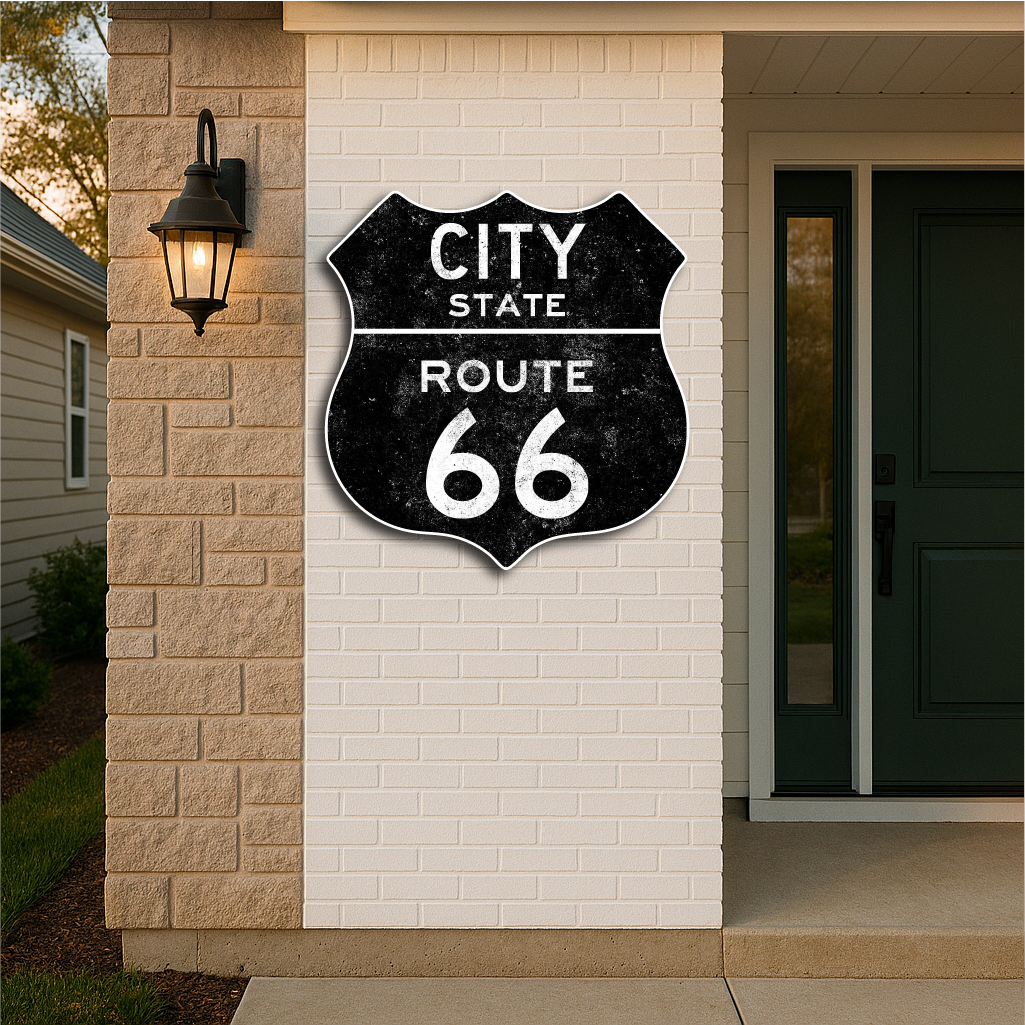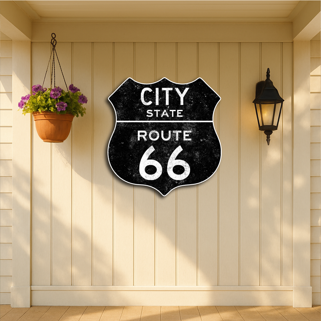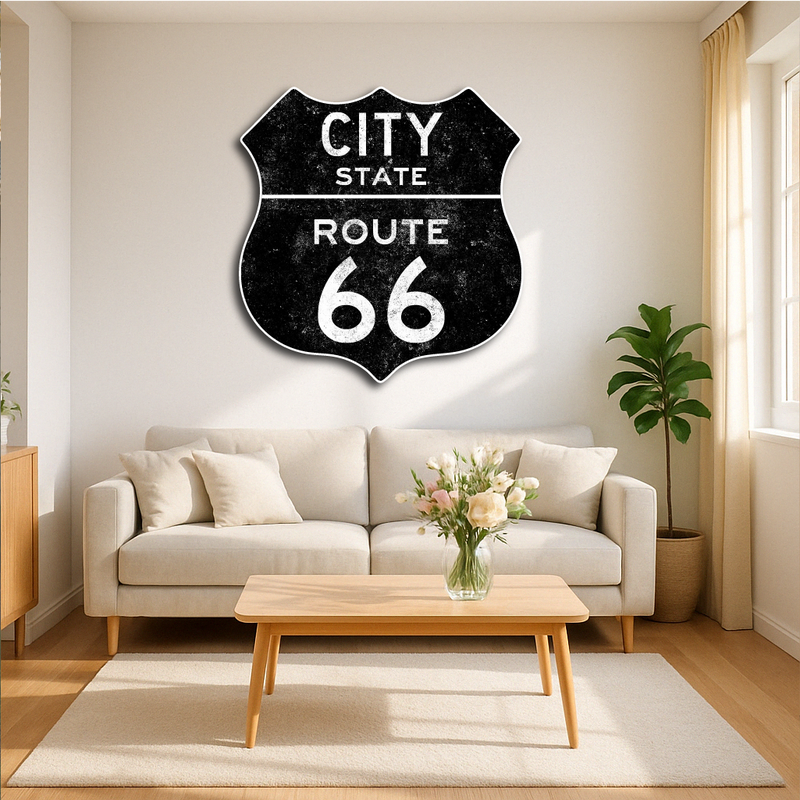 Celebrate the iconic American highway with our Personalized Route 66 Metal Sign, customizable with your own city and state. This vintage-inspired road sign adds a touch of nostalgia to your home, garage, man cave, or business. Whether you’re a road trip enthusiast, a motorcycle rider, or simply love Americana décor, this sign is the perfect statement piece.