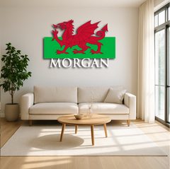 Show off your heritage and bold style with our Welsh Dragon Personalized Metal Wall Art, featuring the iconic red dragon against a vivid green background. This striking piece combines national pride with a personalized touch, making it perfect for homes, man caves, pubs, or offices.