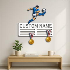 Crafted from premium-quality metal and finished with durable UV printing, it offers vibrant, fade-resistant colors while providing ample hooks to neatly display your hard-earned medals. Whether for a bedroom, sports club, or trophy room, it’s the ultimate way to celebrate your soccer journey.