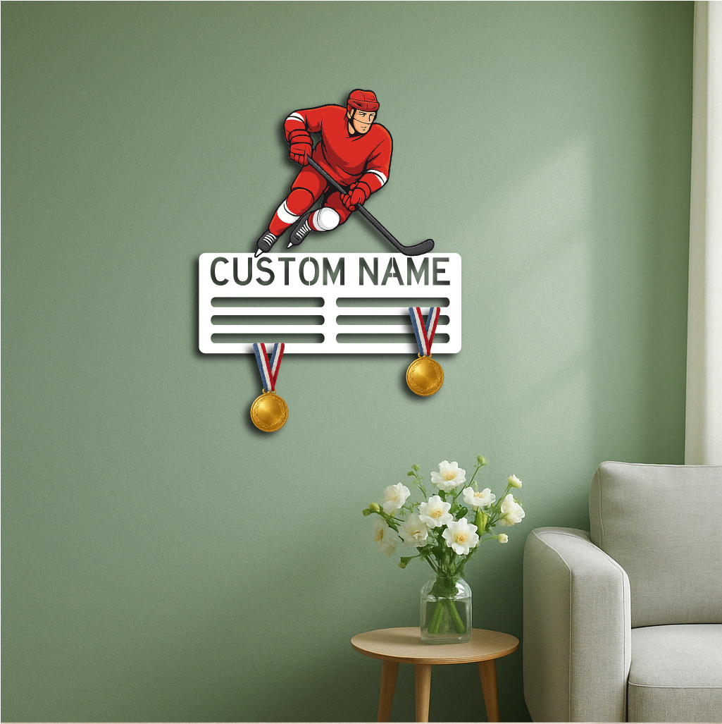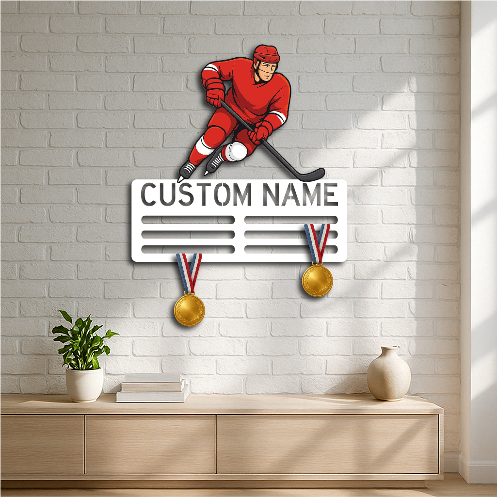Personalized Ice Hockey Medal Holder Metal Wall Rack