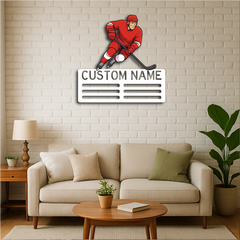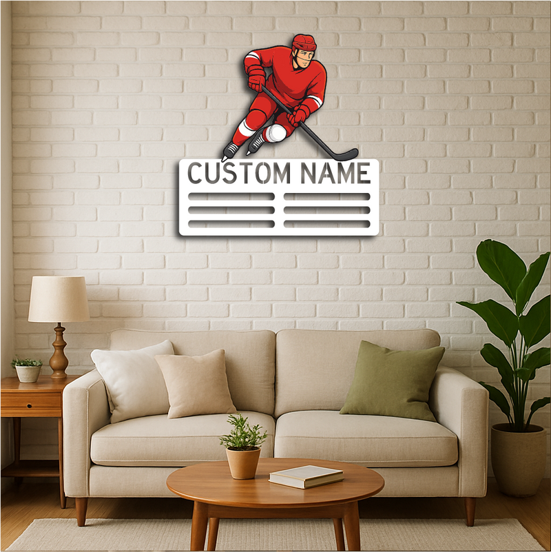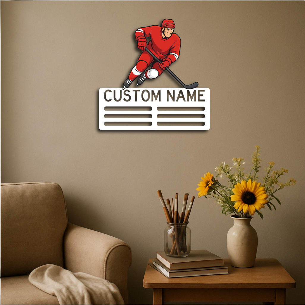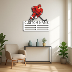 Celebrate your victories and passion for the game with our Personalized Ice Hockey Medal Holder Metal Wall Rack, featuring a bold ice hockey player design and customizable name or text. Perfect for hockey enthusiasts, athletes, and teams, this medal display adds both function and style to your space.
