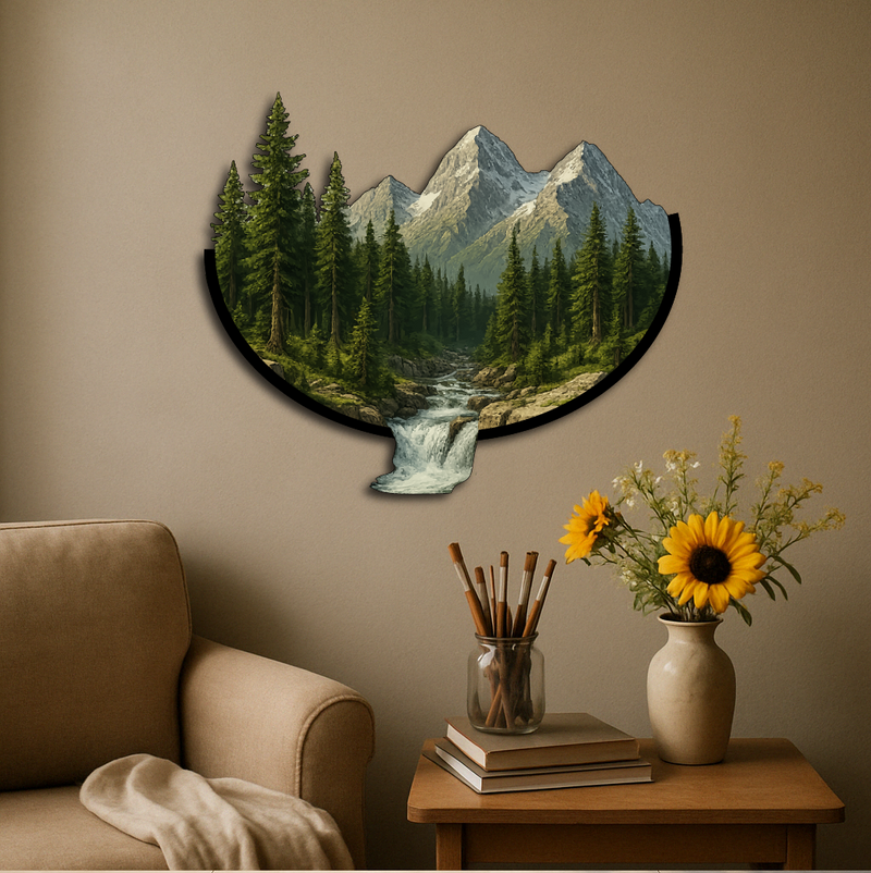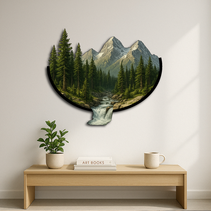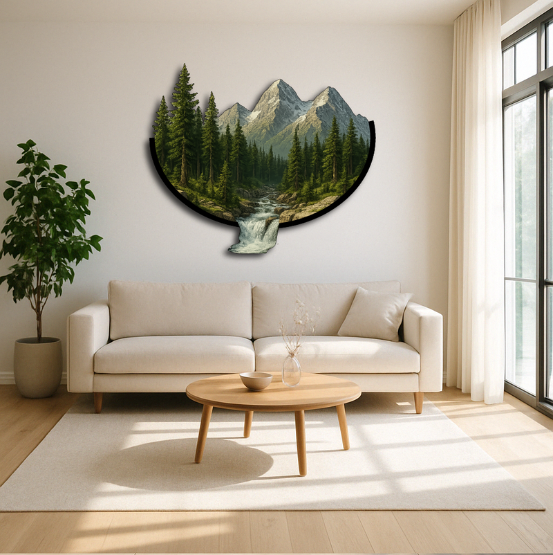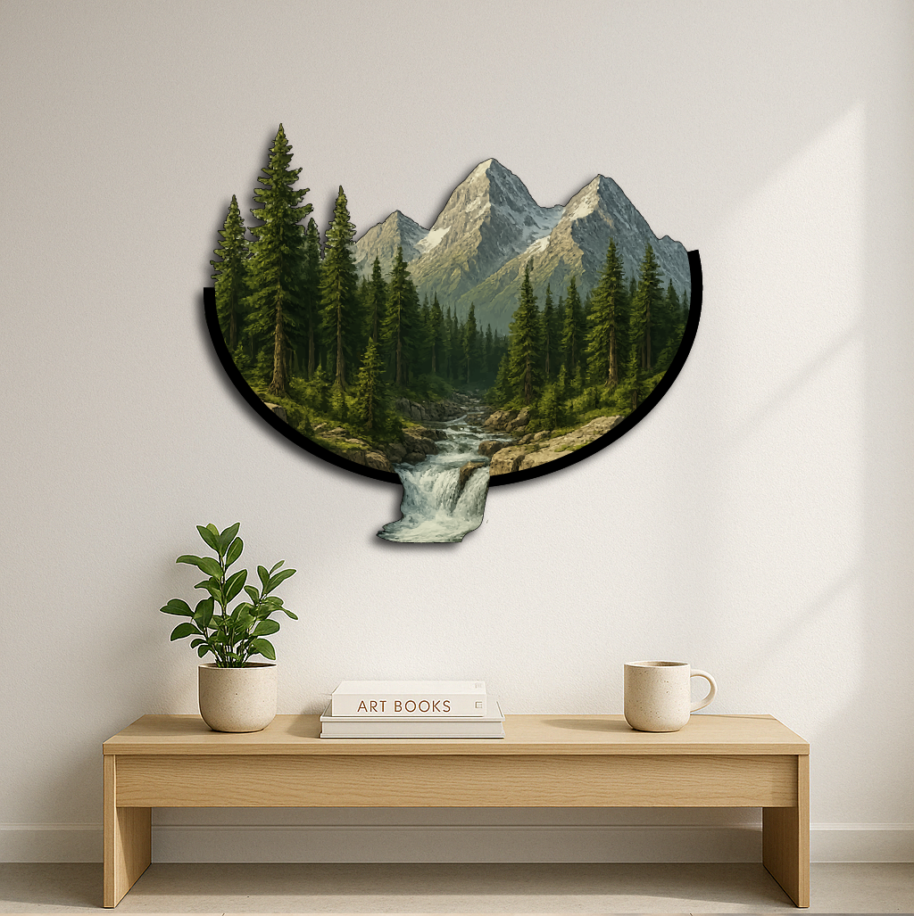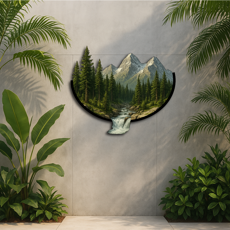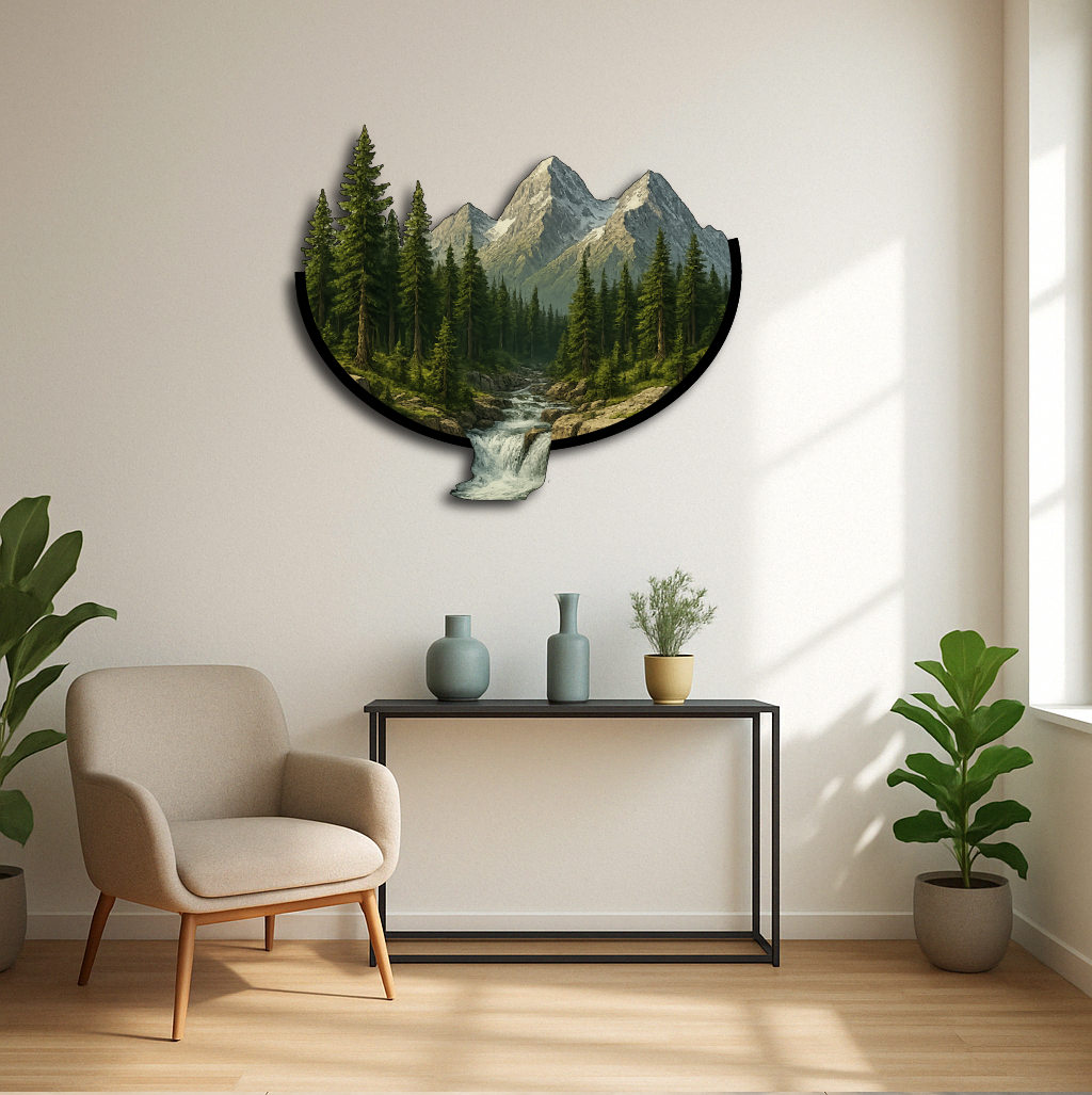 Bring the serene beauty of nature into your home or garden with our Mountain Waterfall Forest Metal Wall Art. Featuring towering pine trees, majestic snow-capped peaks, and a cascading waterfall flowing beyond the frame, this piece creates a breathtaking 3D effect that draws you into the scene. Perfect for anyone who loves the outdoors, this artwork captures the tranquility and grandeur of mountain landscapes.