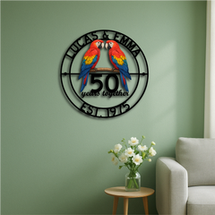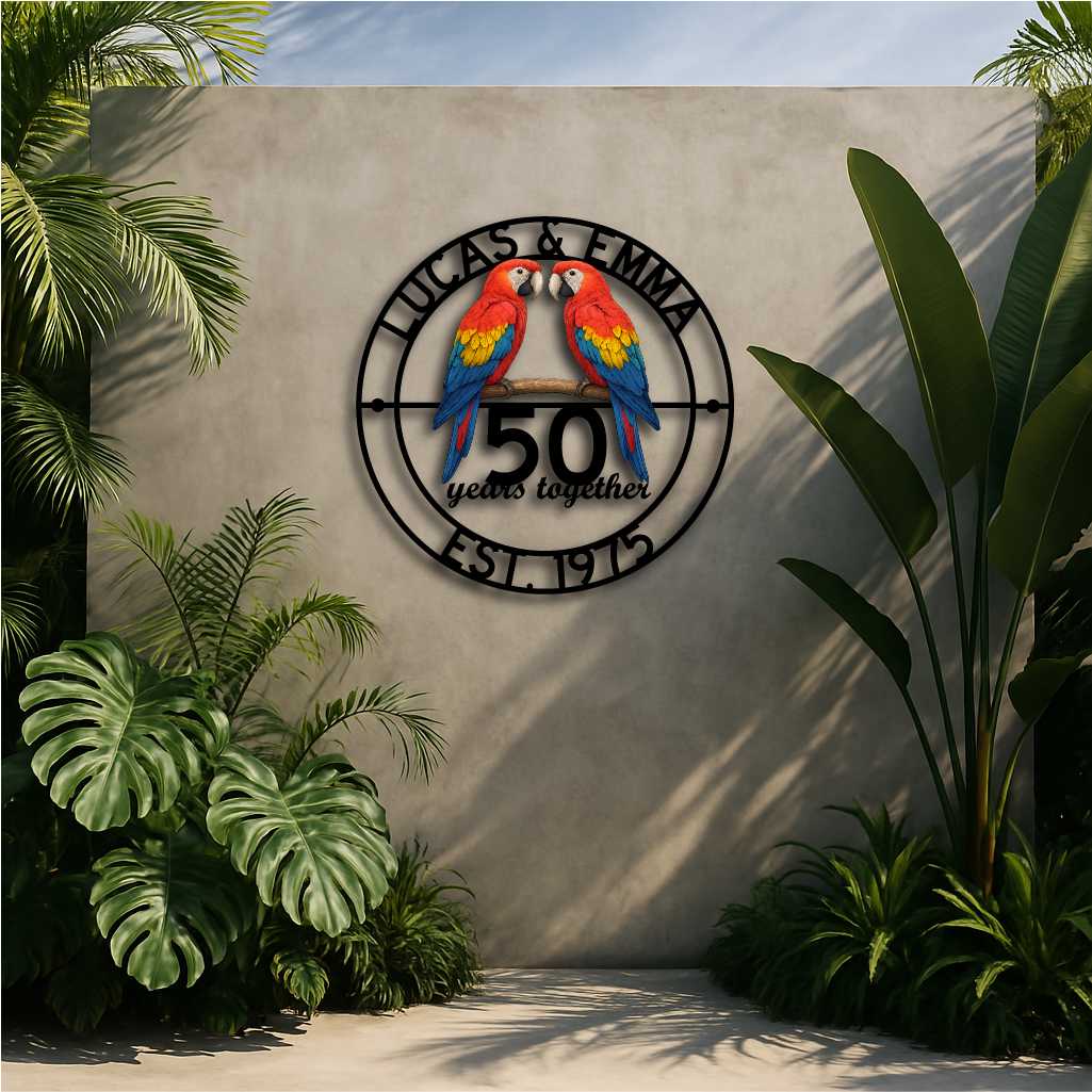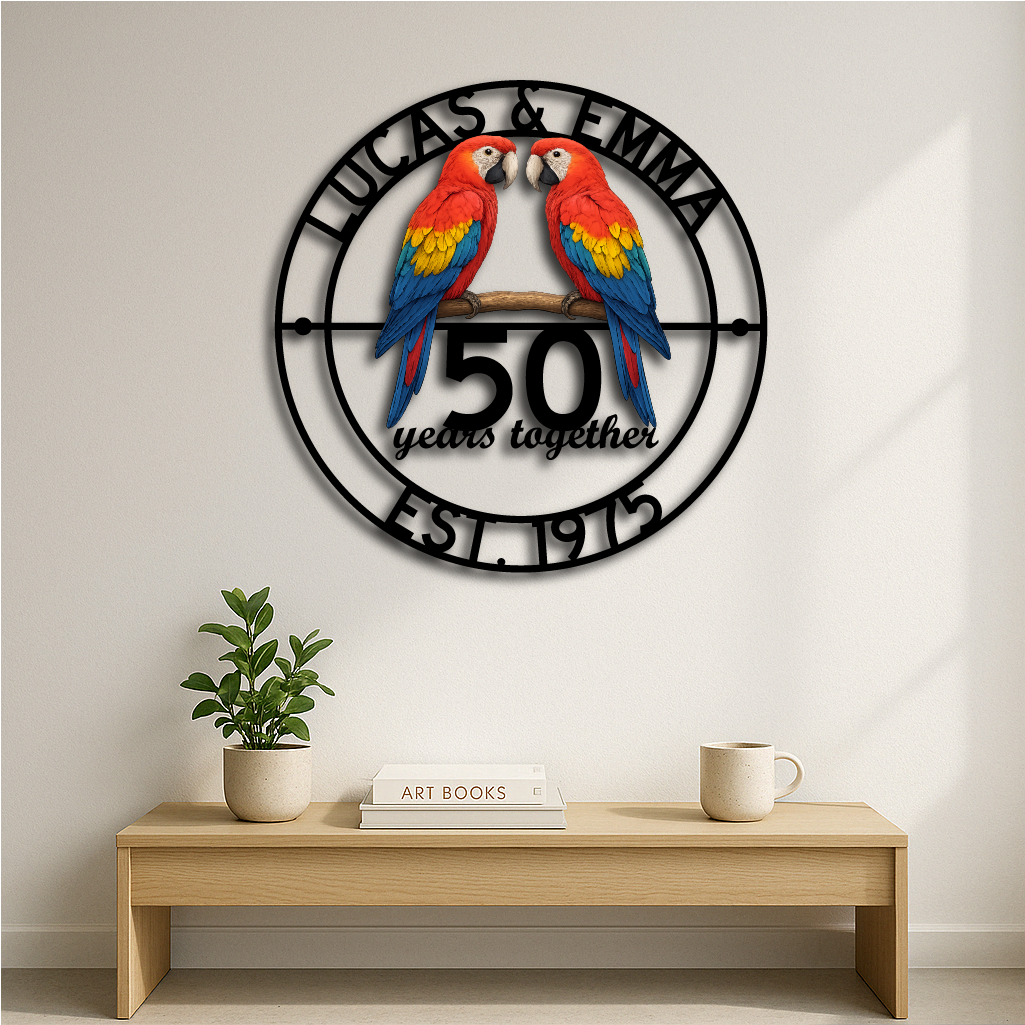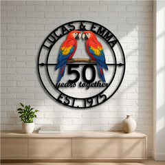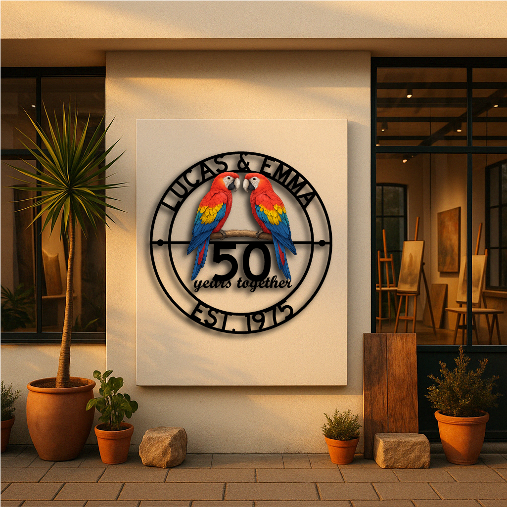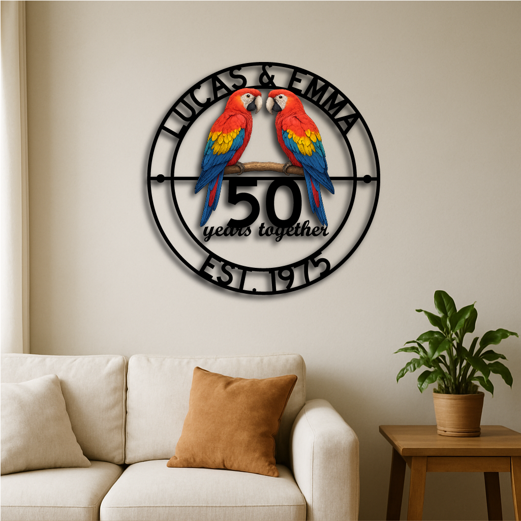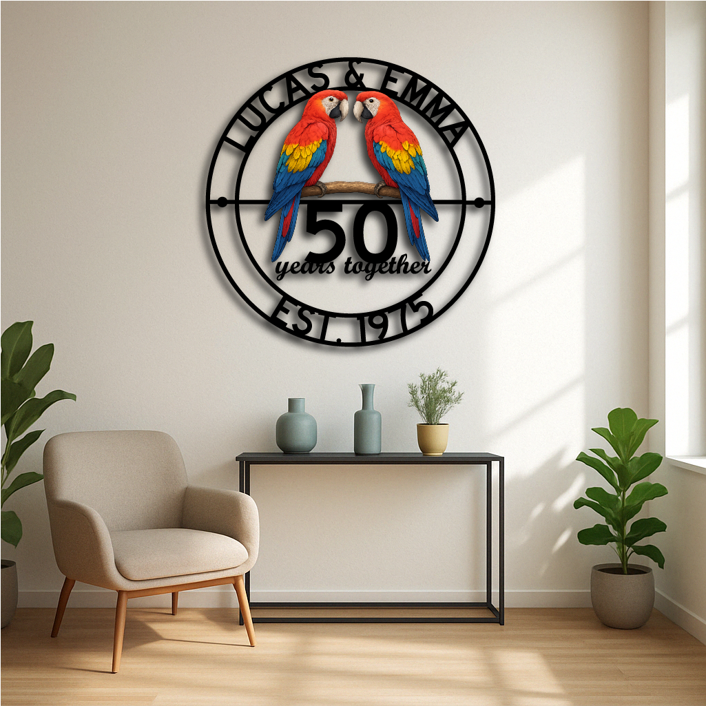 Custom Parrot Couple Metal Wall Art – Personalized Anniversary Sign