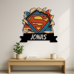 Show off your inner hero with this Superman Logo Metal Wall Art. Featuring the iconic red and yellow “S” emblem bursting through a ripped background, this bold piece can be customized with your name for a powerful and unique display. Perfect for fans of the Man of Steel.