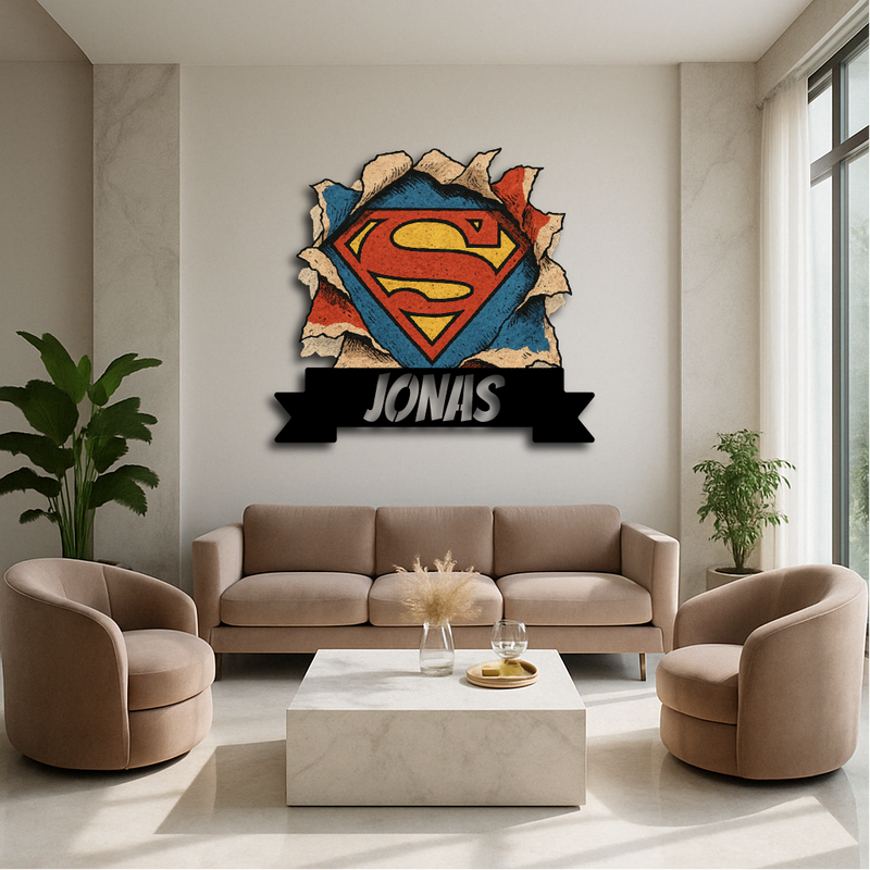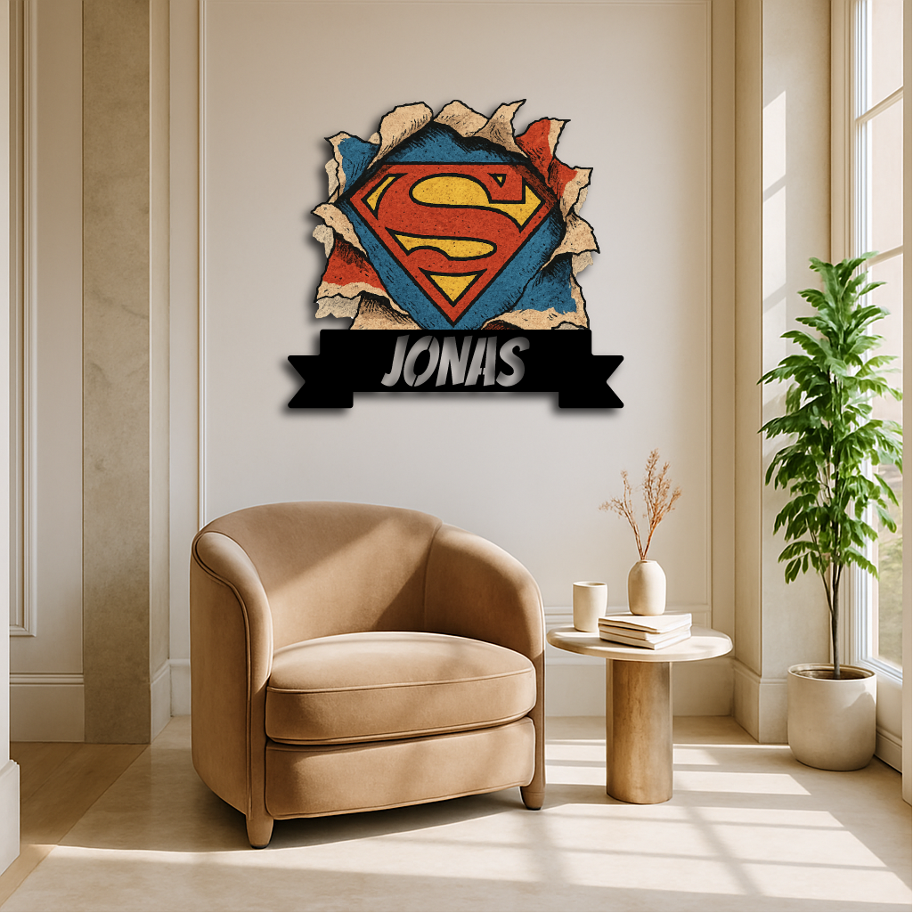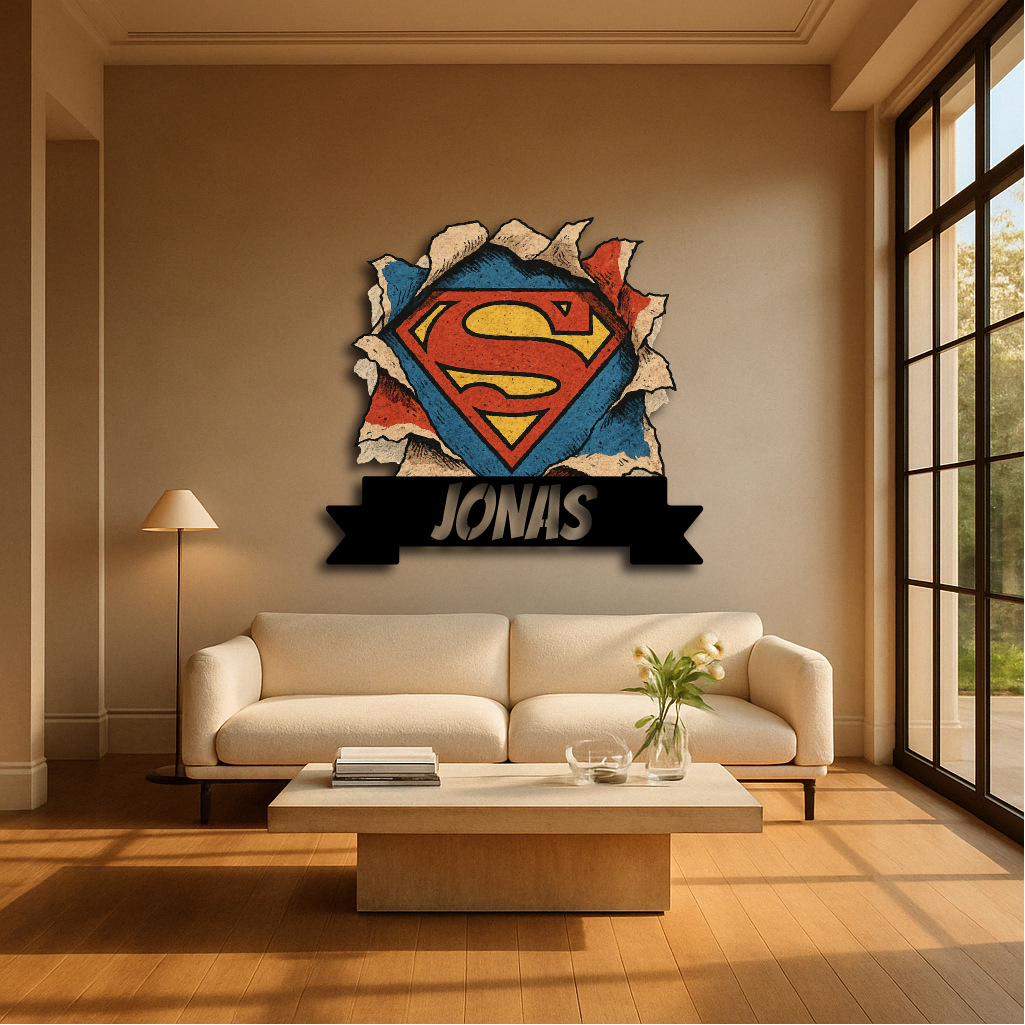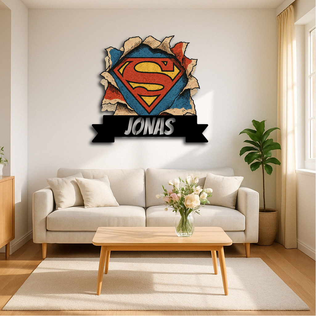 Superman Logo Metal Wall Art – Personalized Name Sign
