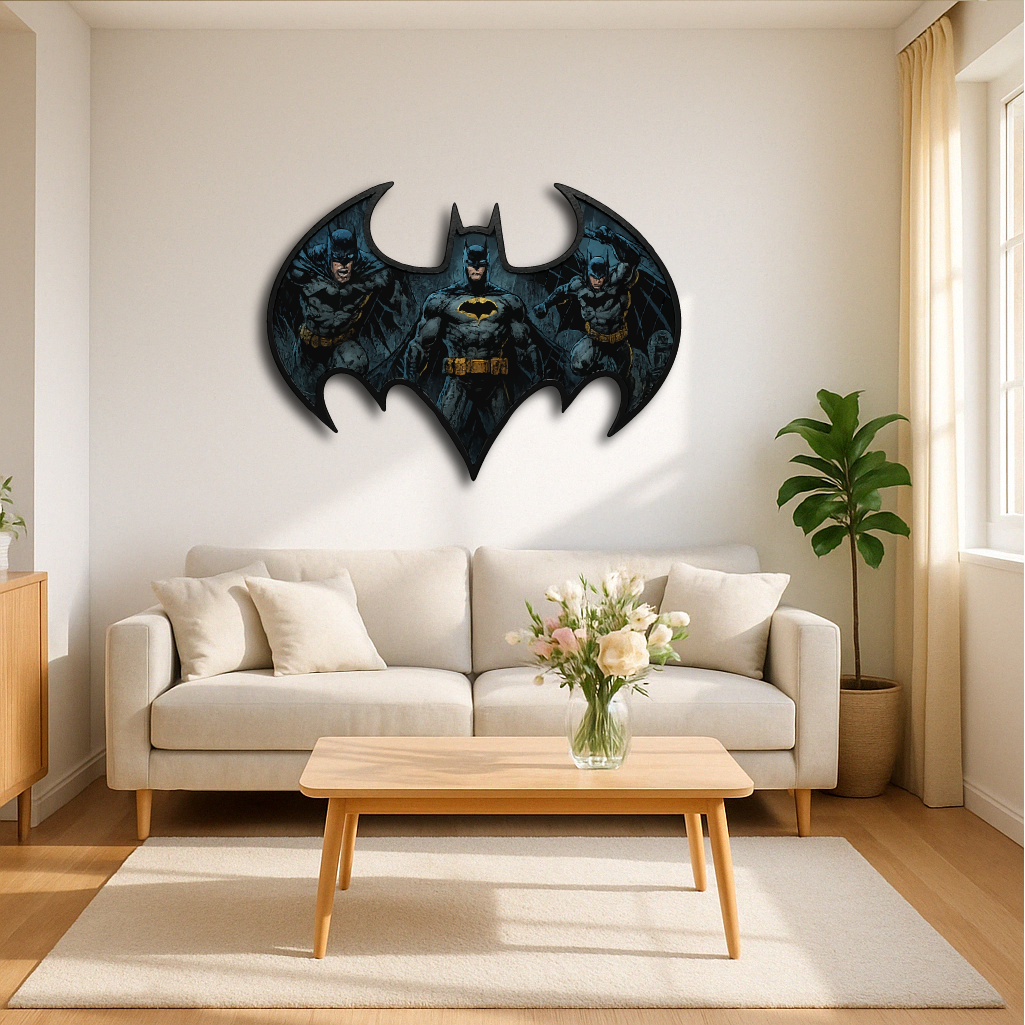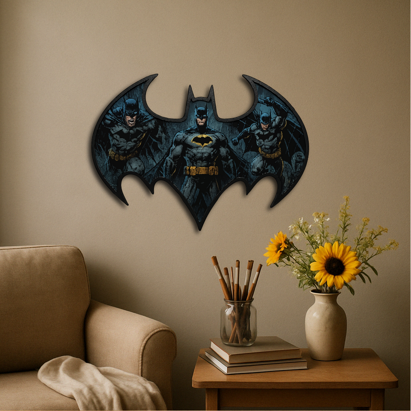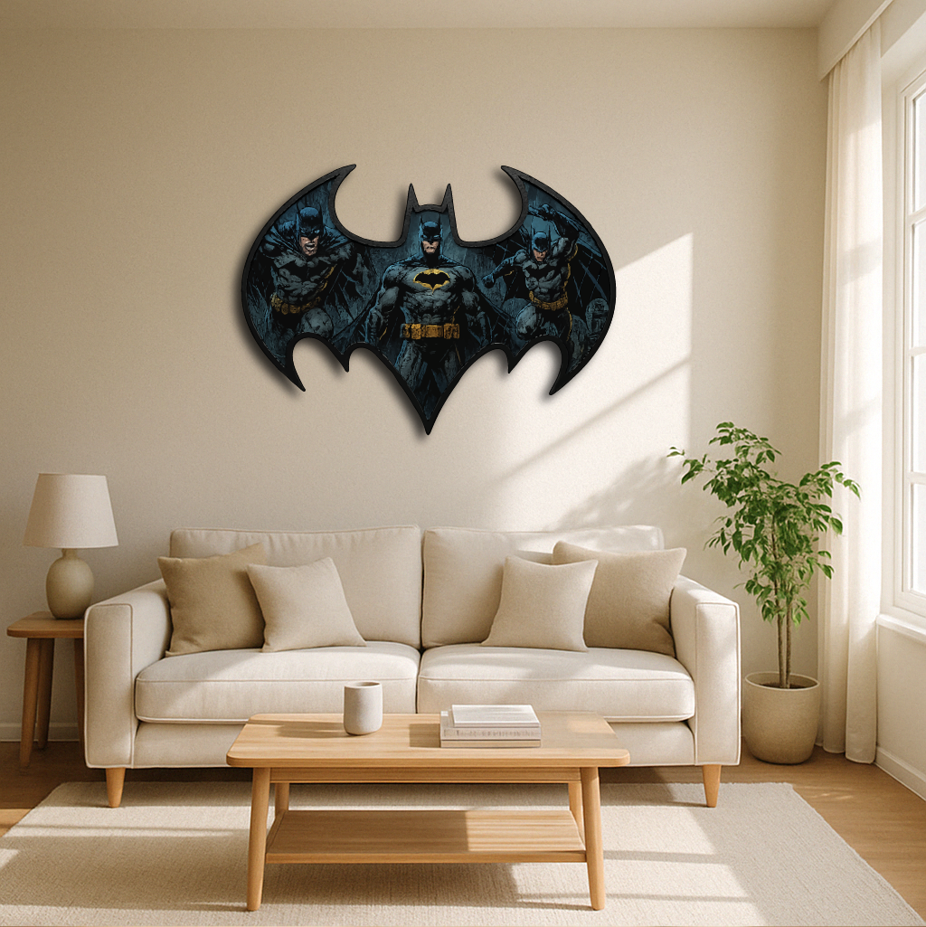 Bring Gotham’s protector into your home with this Batman Bat Symbol Metal Wall Art. Designed in the iconic bat shape, it features a powerful triple Batman graphic with dark, moody tones, perfect for fans of the Dark Knight. A bold statement piece for any superhero enthusiast.