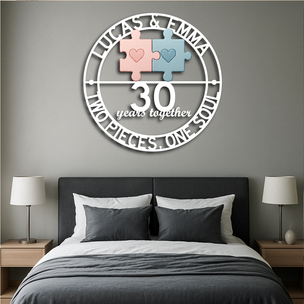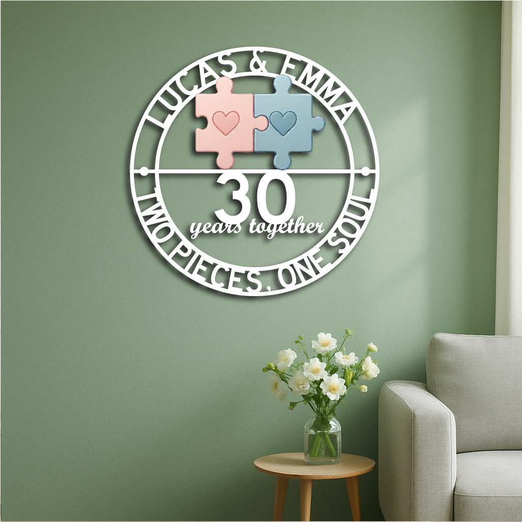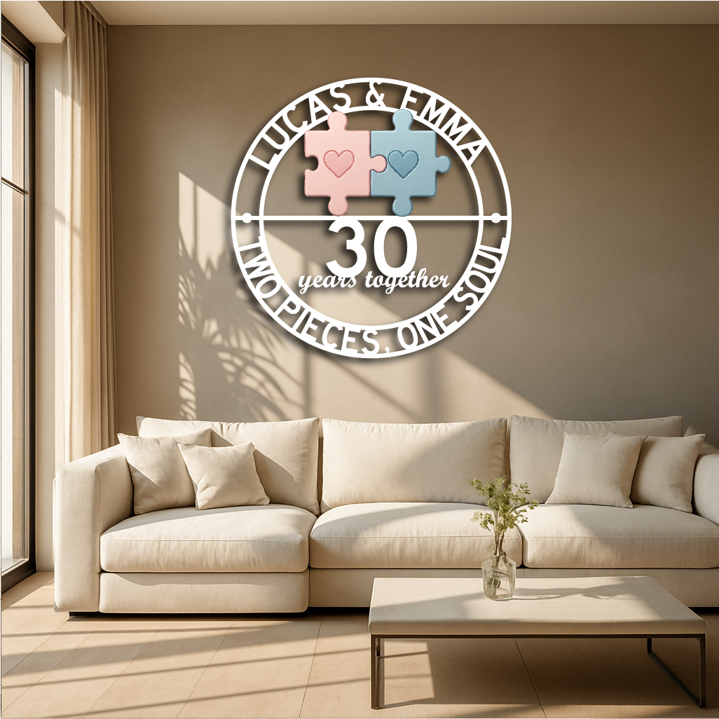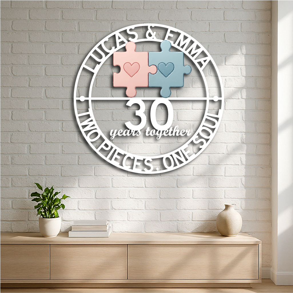 Personalized Puzzle Piece Anniversary Metal Sign – Custom Names & Year