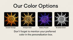 Sunset Orange, Antique Gold, Galaxy Purple, or Brushed Silver