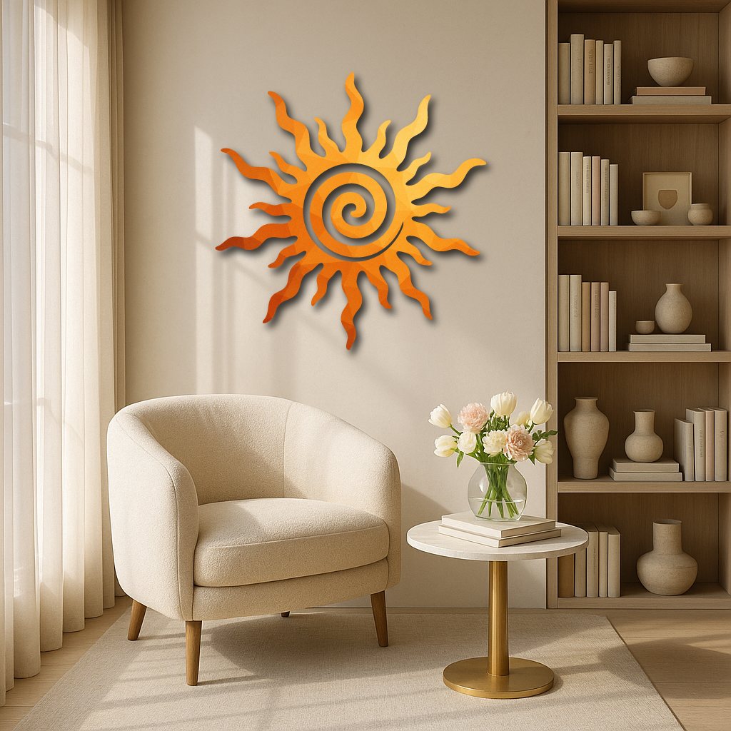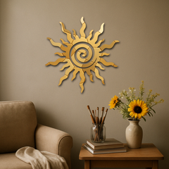 Infuse your space with energy, warmth, and symbolism through this beautiful spiral sun metal wall art. Inspired by tribal and bohemian aesthetics, this handcrafted piece is perfect for both indoor and outdoor settings.