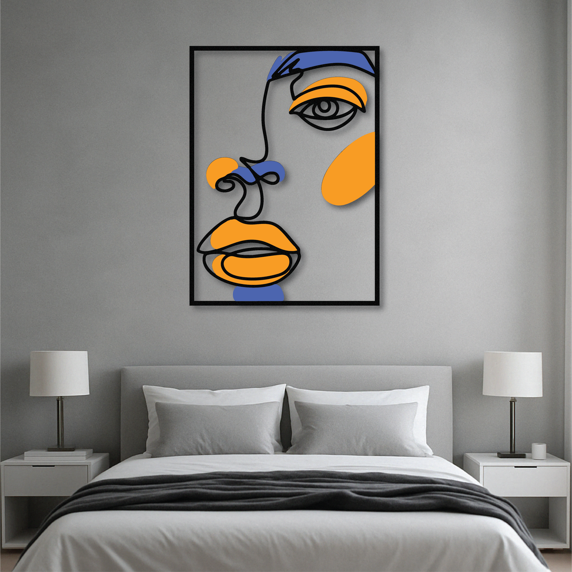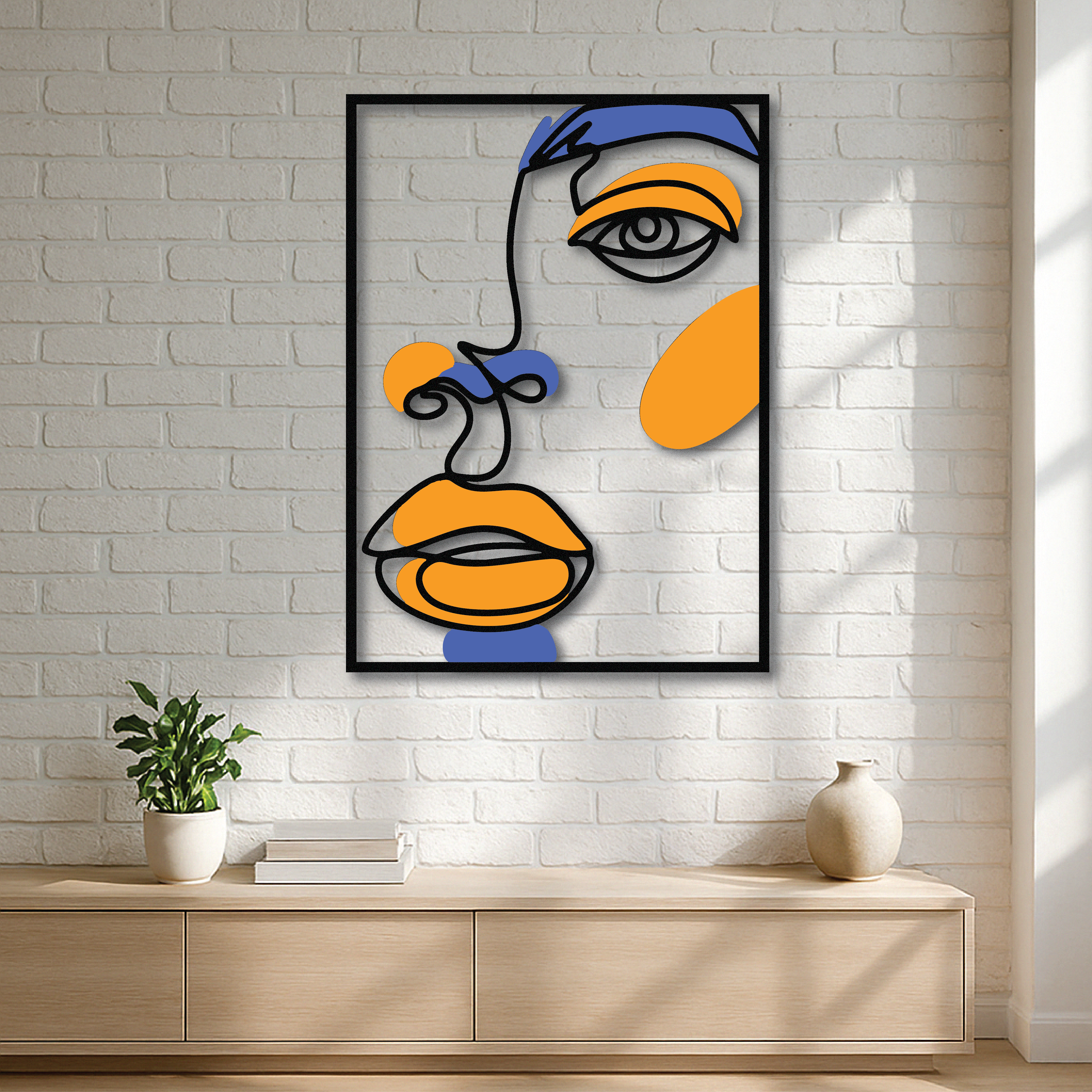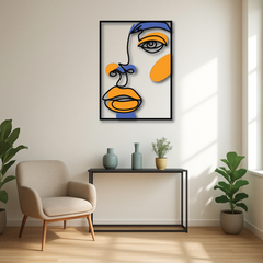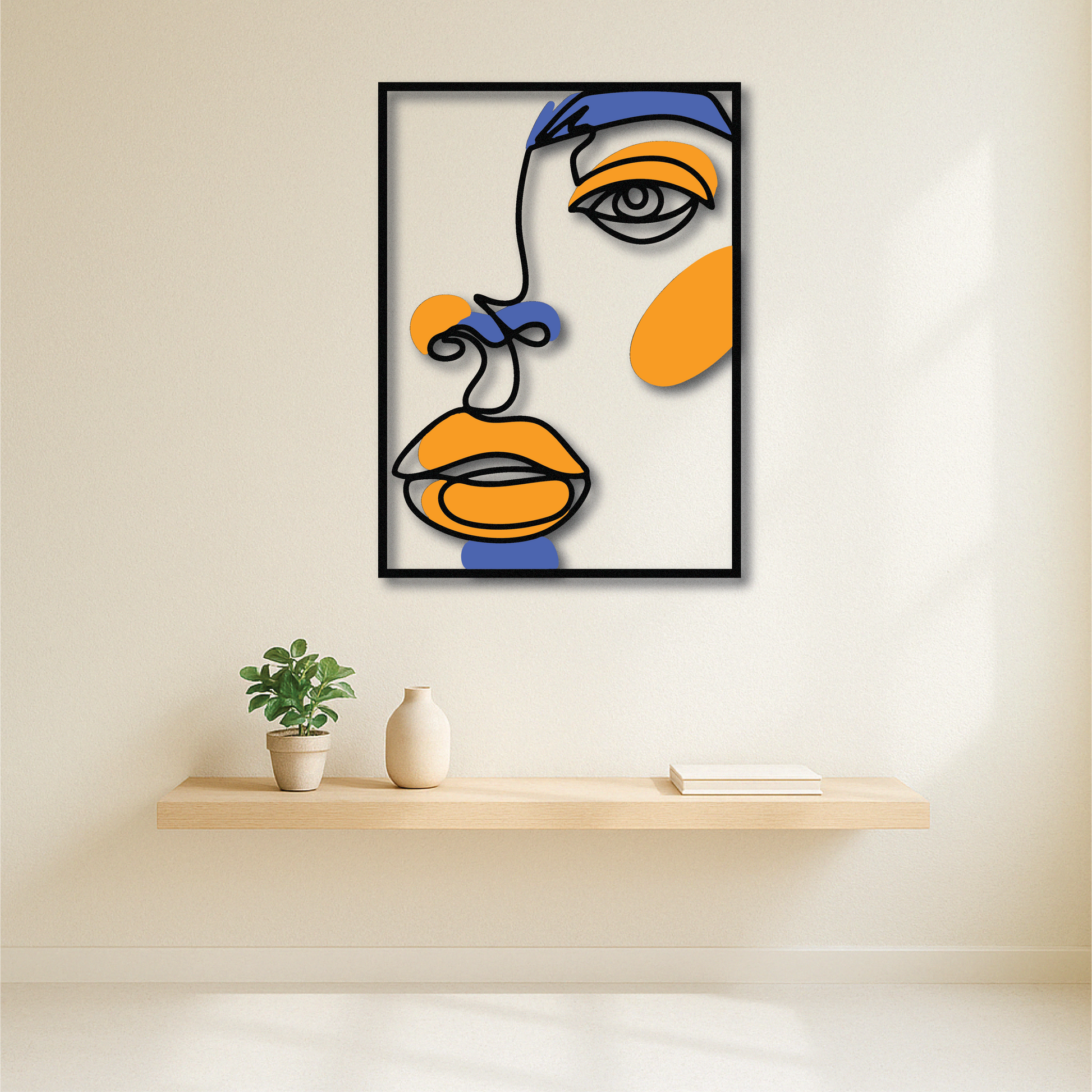 Elevate your space with this modern abstract face wall art, crafted entirely from durable metal and UV-printed in vivid, lasting colors. Featuring a bold line art style with pops of orange and blue, this piece adds a clean, contemporary vibe to any room.
