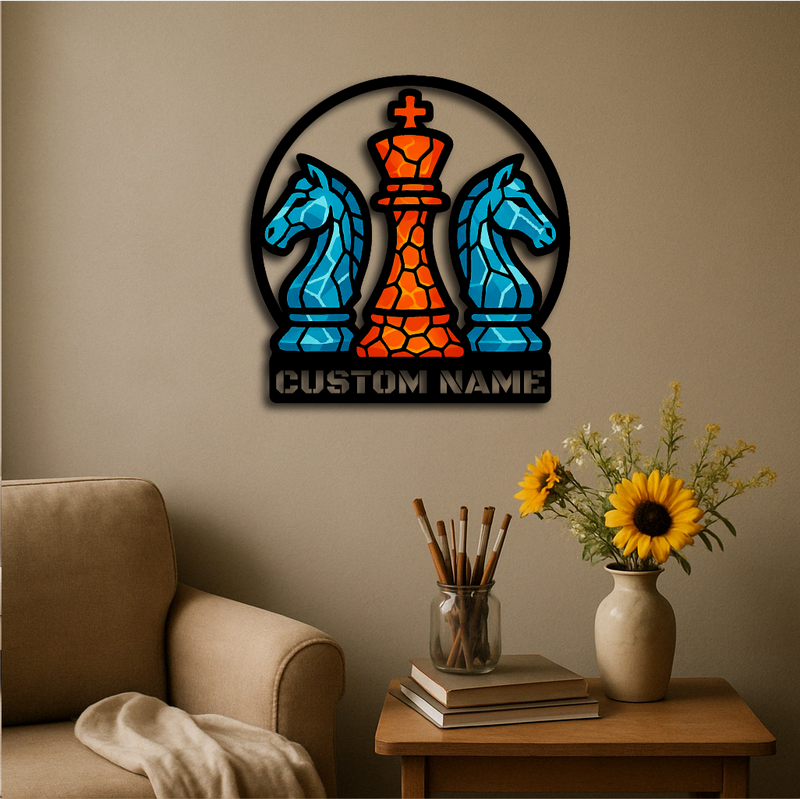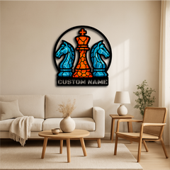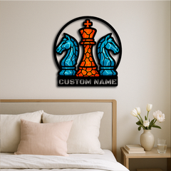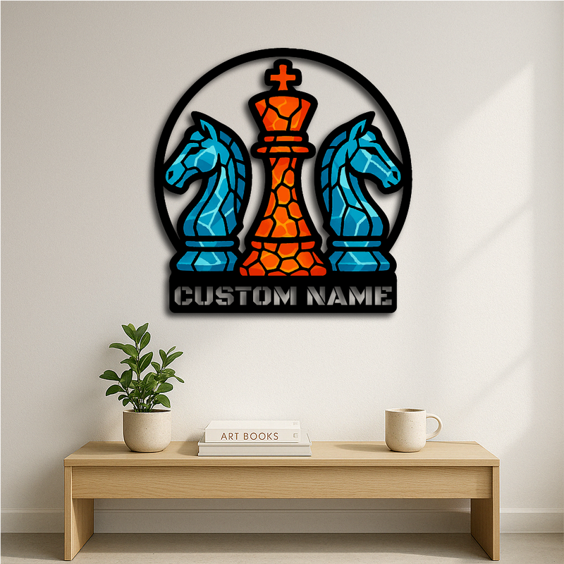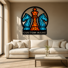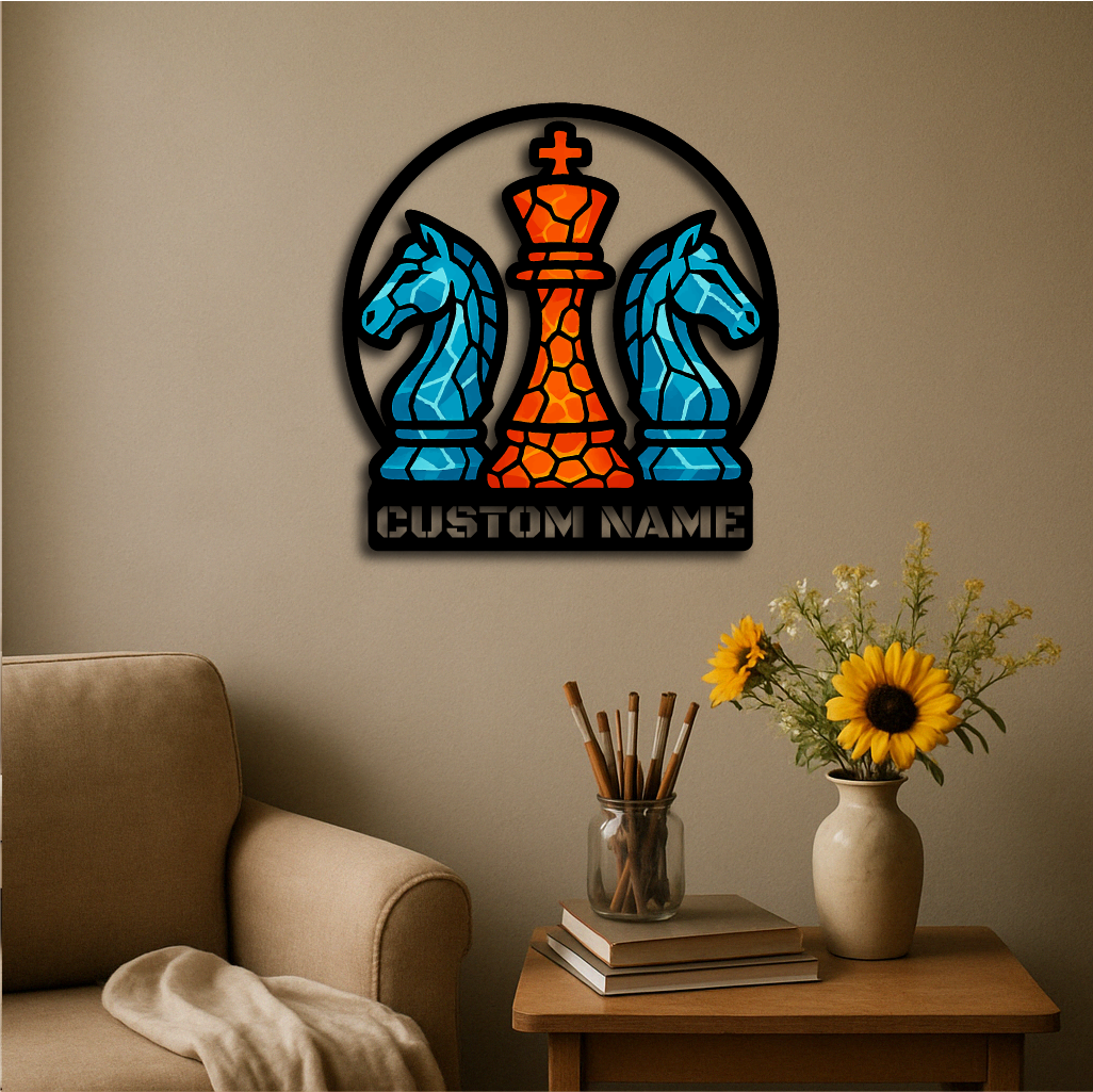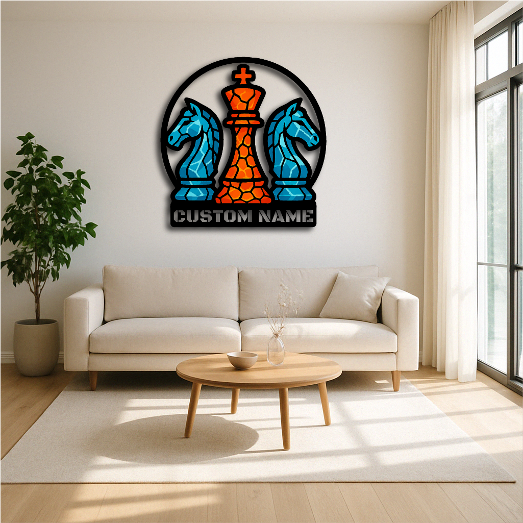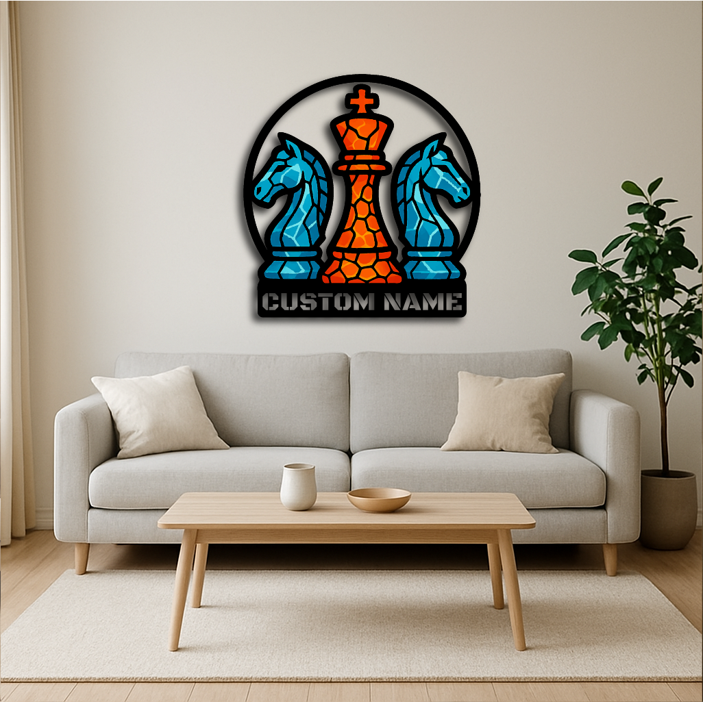 Custom Chess Wall Art Sign – Personalized Metal Chess Decor with King & Knight Design