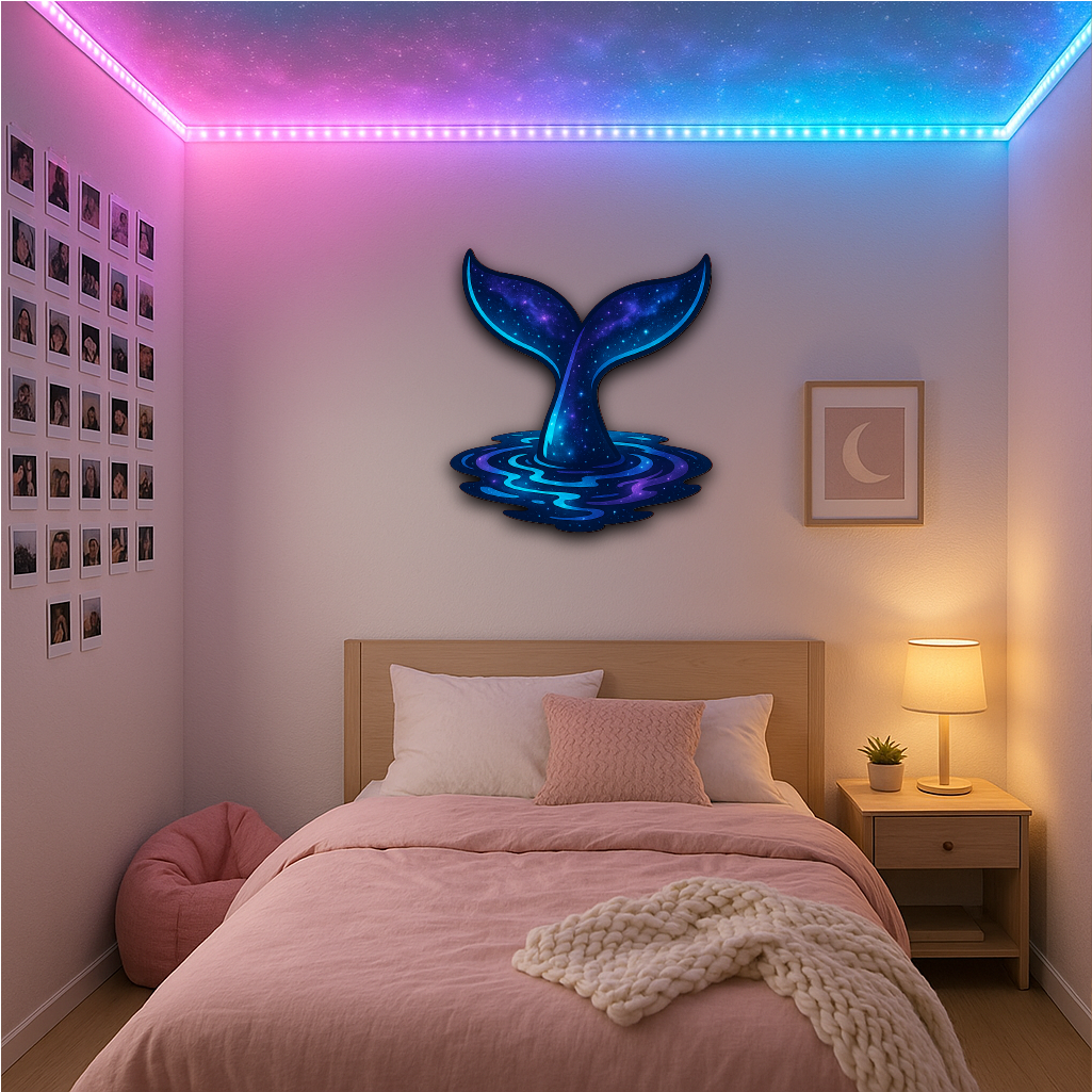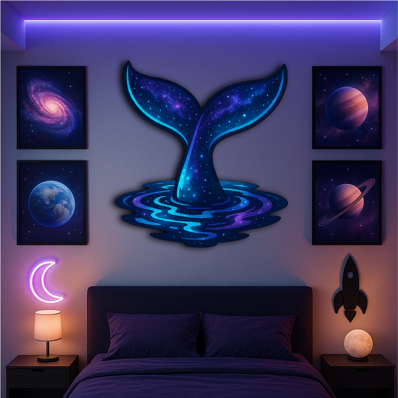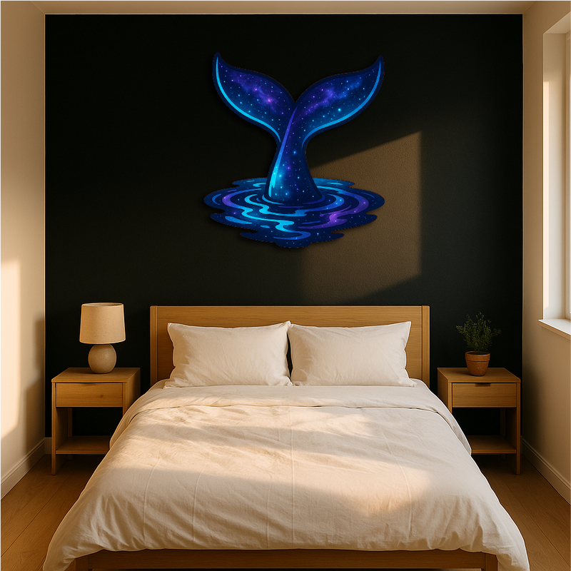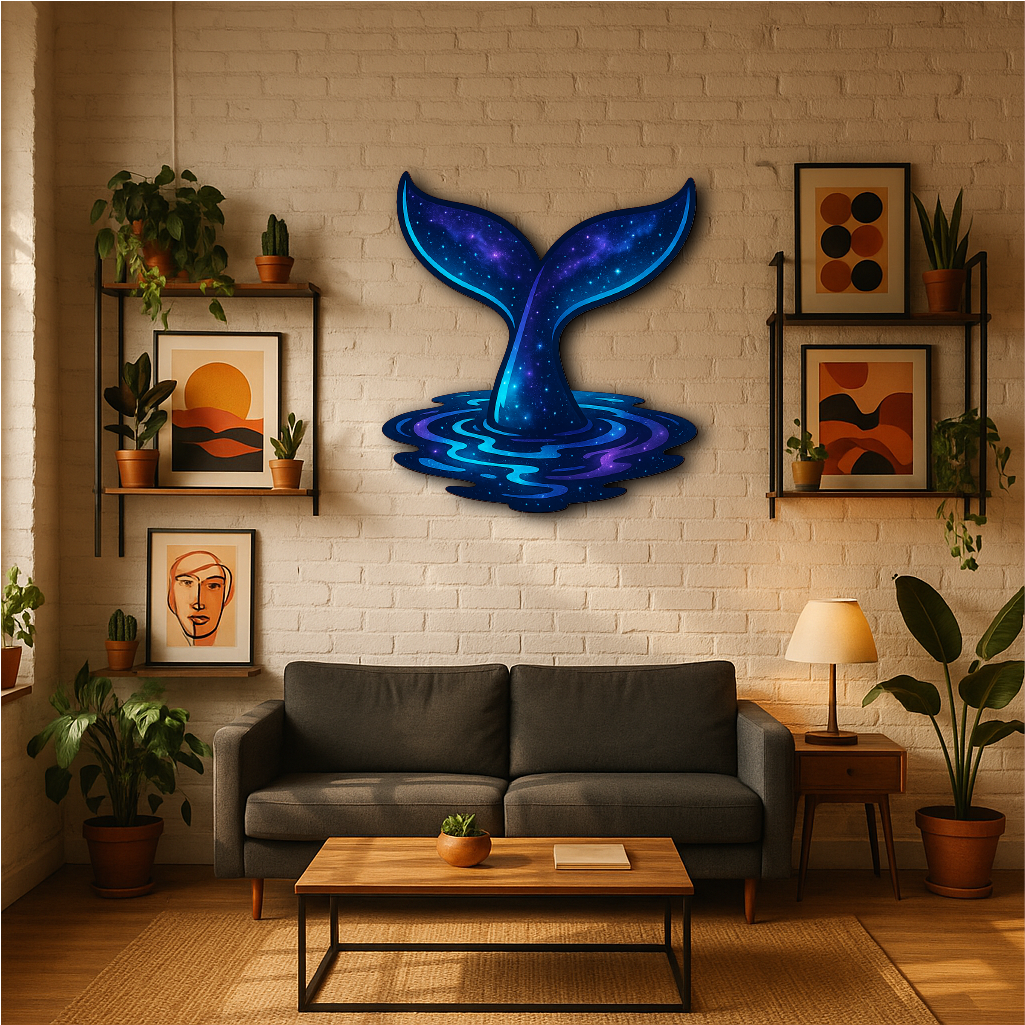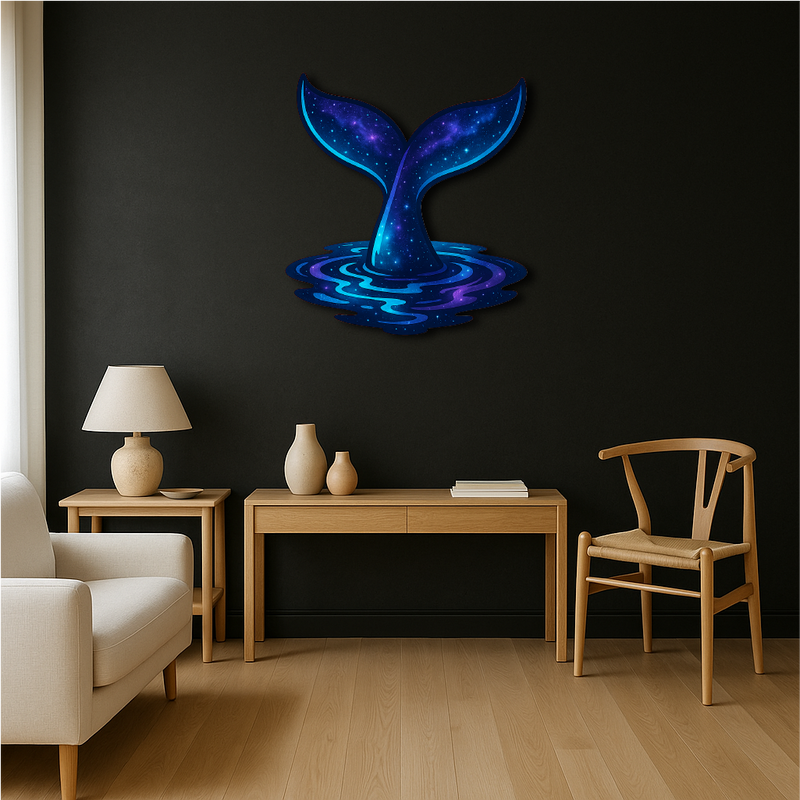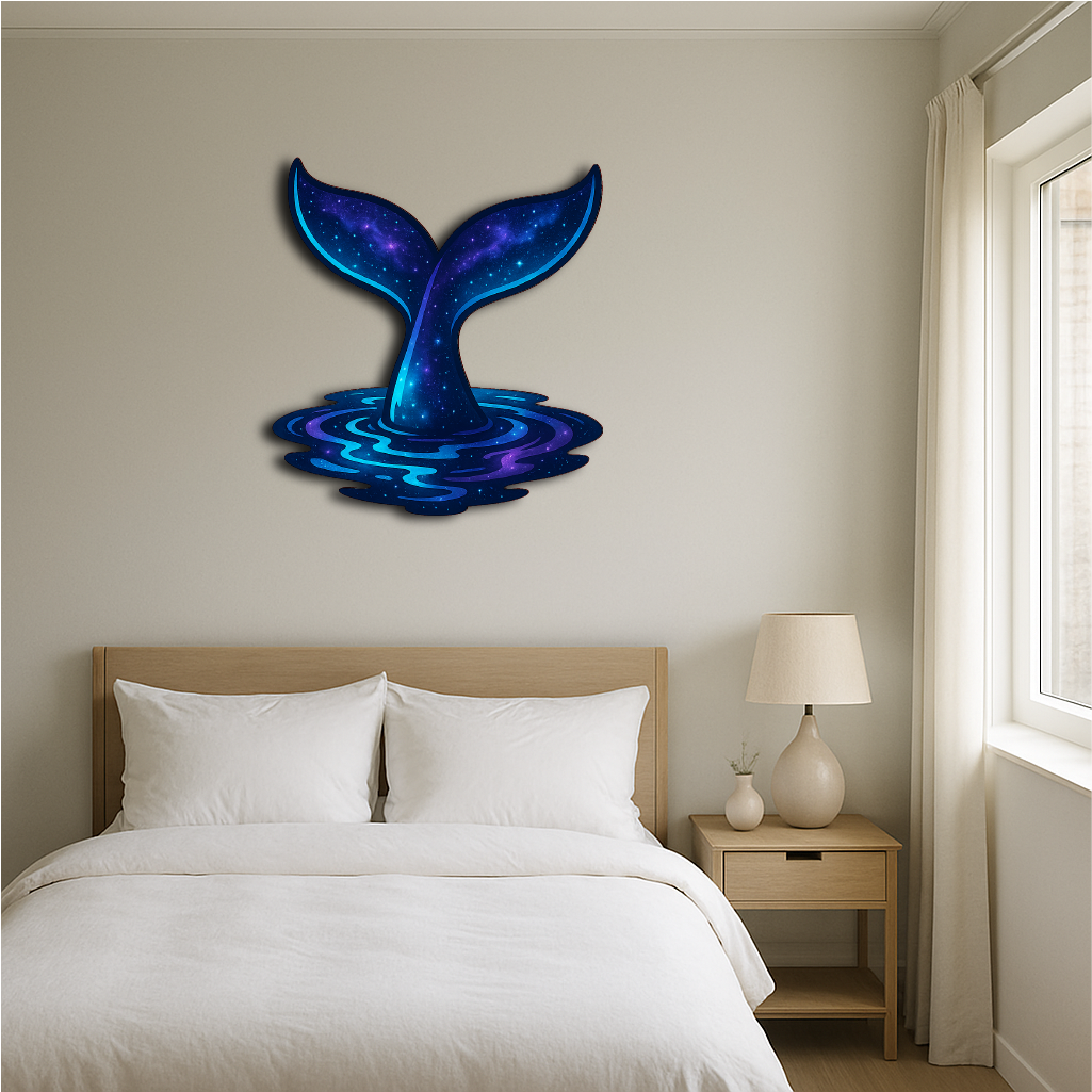 Make a splash with this enchanting Galactic Whale Tail Multicolor Metal Wall Art, showcasing a whale’s tail emerging from a pool of rippling stardust. With deep blues, purples, and cosmic sparkle, this design beautifully blends the mystery of the ocean with the wonder of the universe — perfect for dreamers, stargazers, and sea lovers alike.