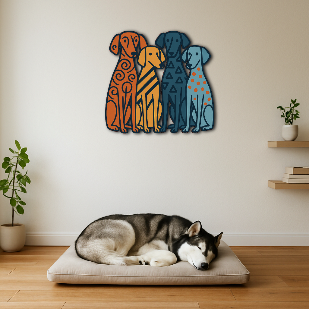 Printed in vibrant multicolor on premium metal, this piece combines durable quality with high-definition detailing. Whether you're decorating a living room, hallway, pet corner, or creative studio, this artwork brings warmth, personality, and contemporary charm to your walls.